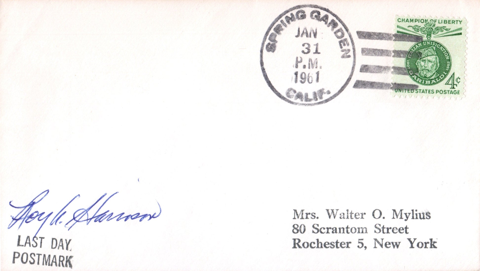 Spring Garden (1910-1961) 1961 4-bar on LD cover, PM autograph