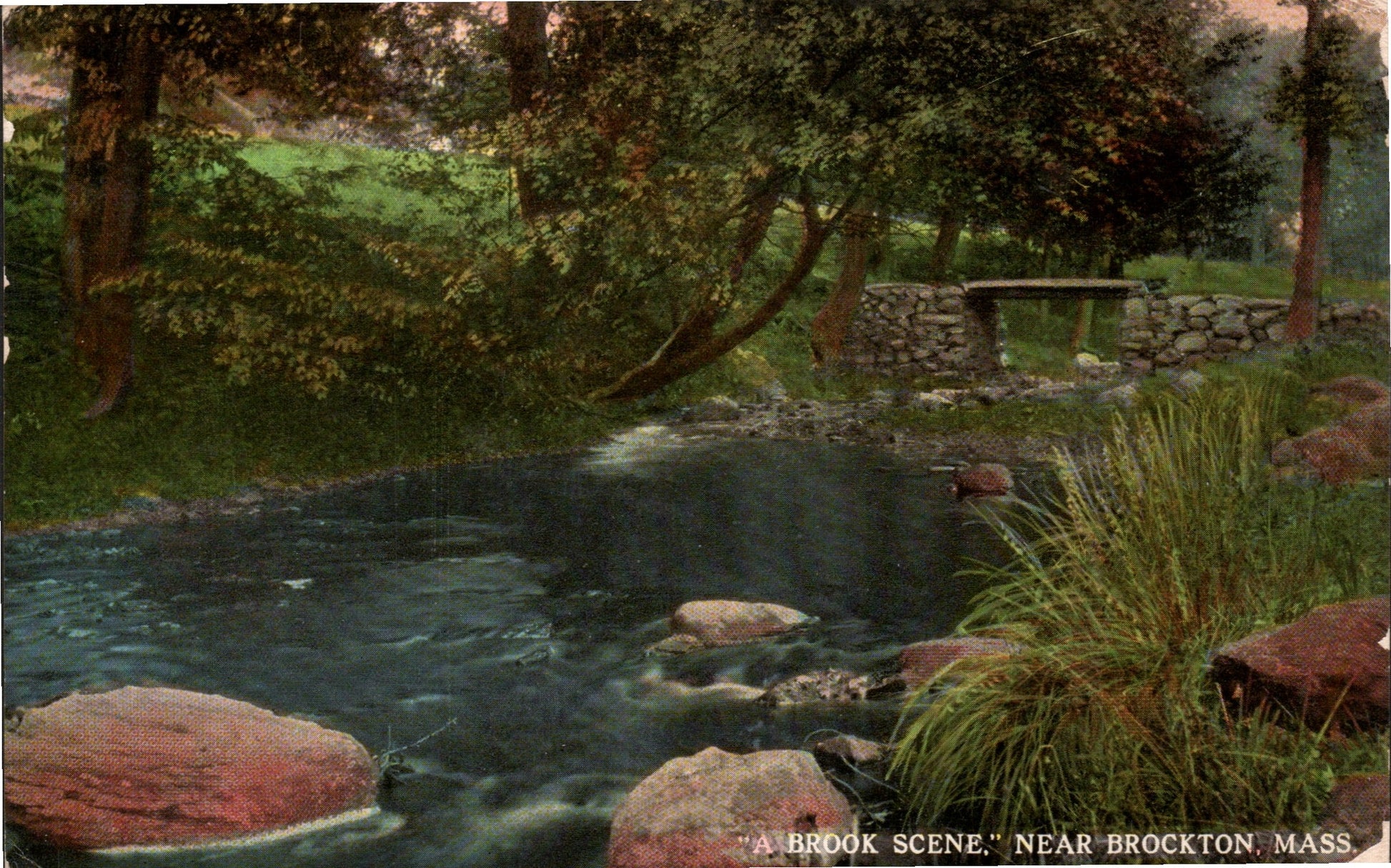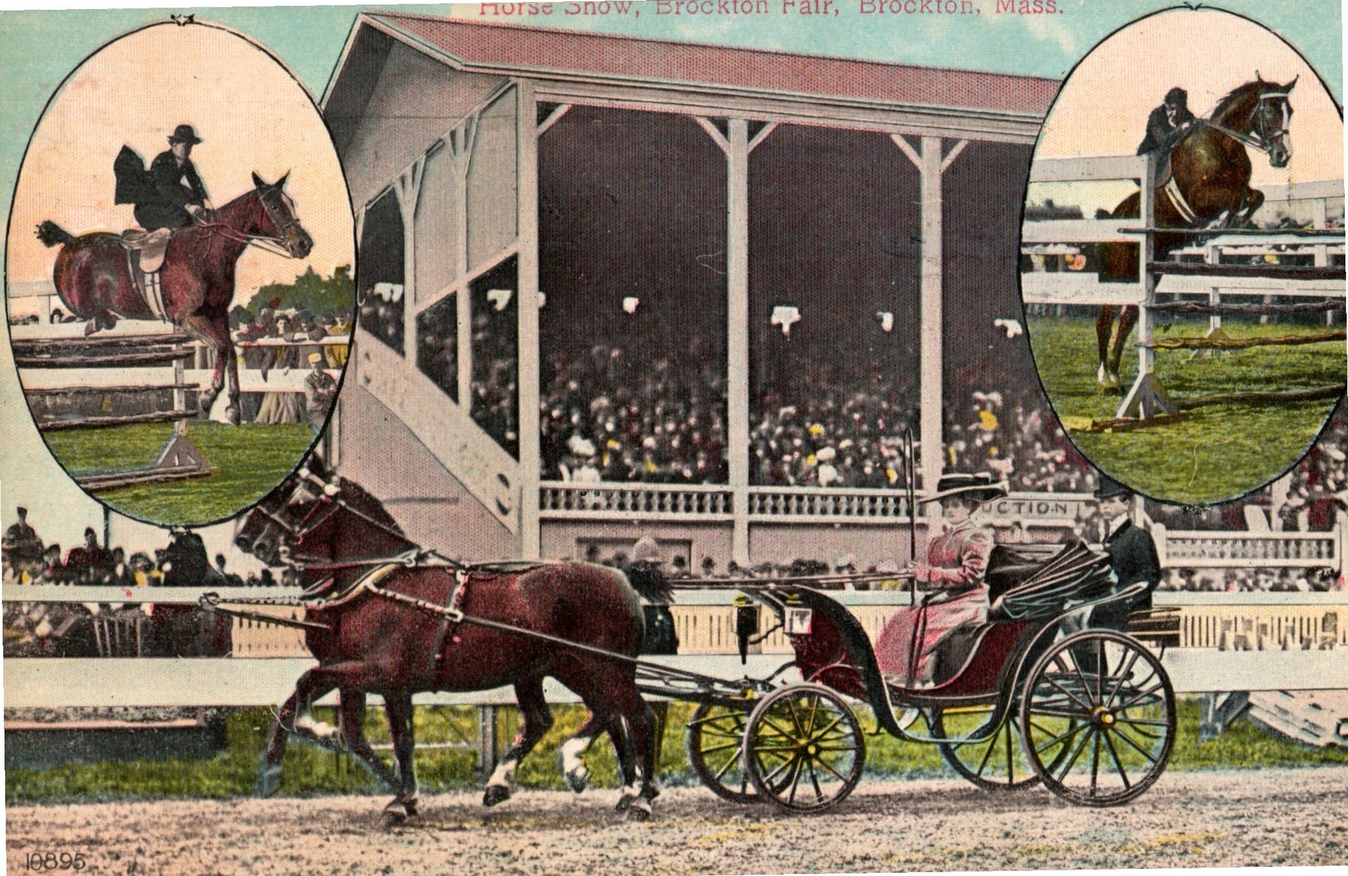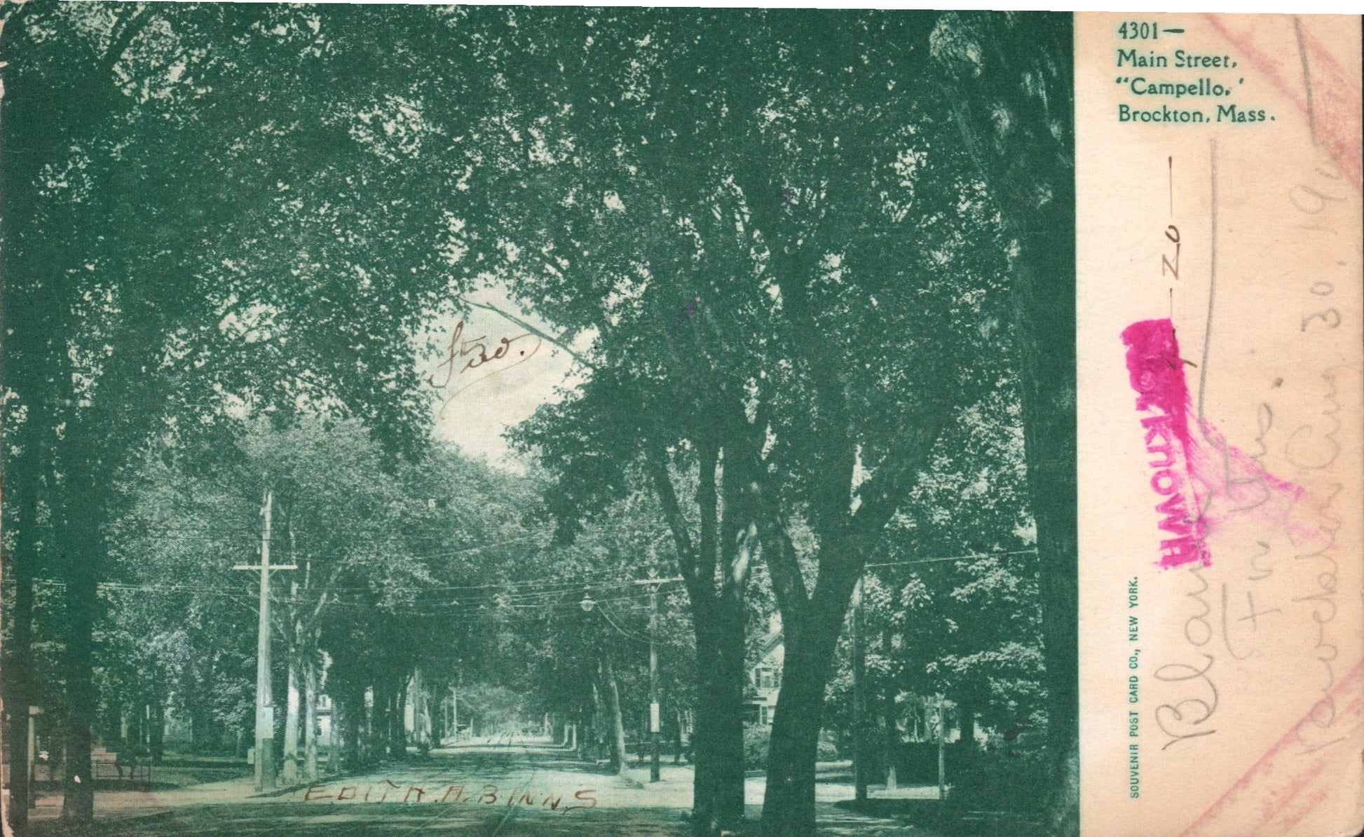 Post cards: “W.L. Douglas Residence” [1908]; “Main Street ‘Campello’” [1905]; “Horse Show, Brockton Fair” [1909]; “A Brook Scene” [1913]