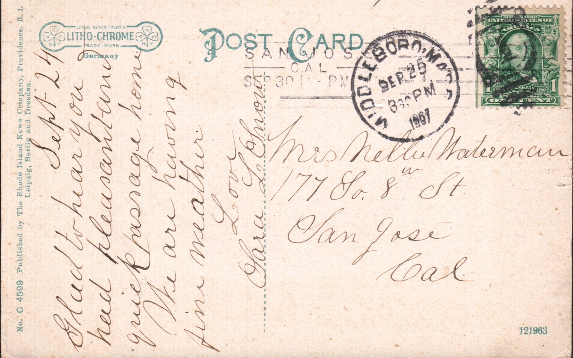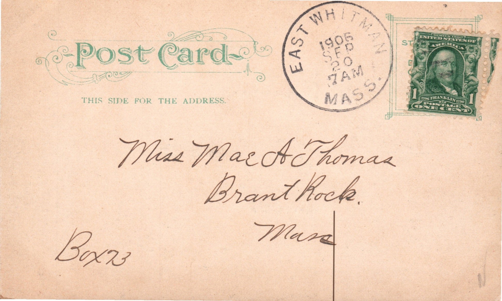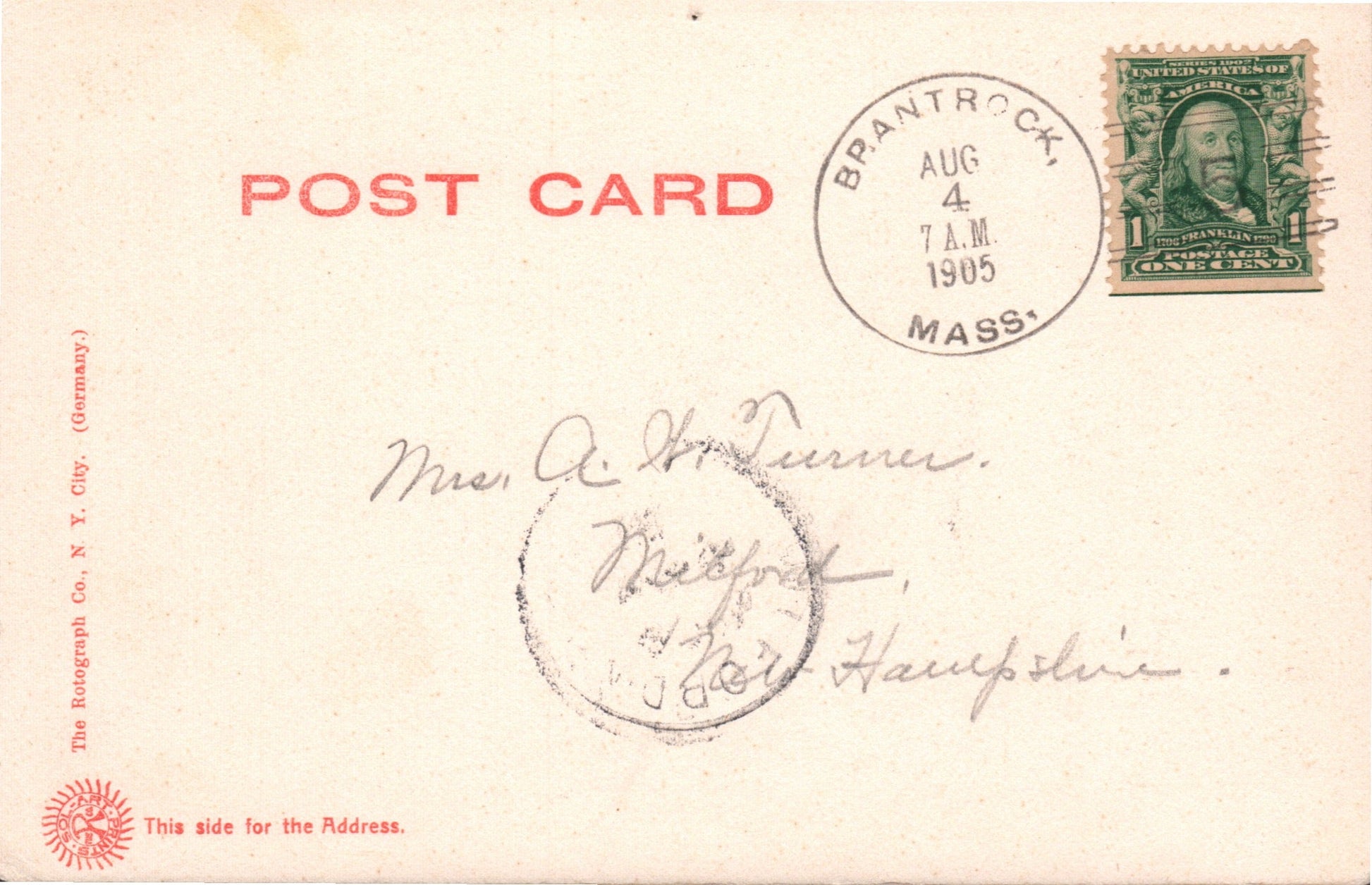 Brant Rock 1905 Doane 5 on post card; 1911 4-bar on post card [view of Winslow House, Marshfield]