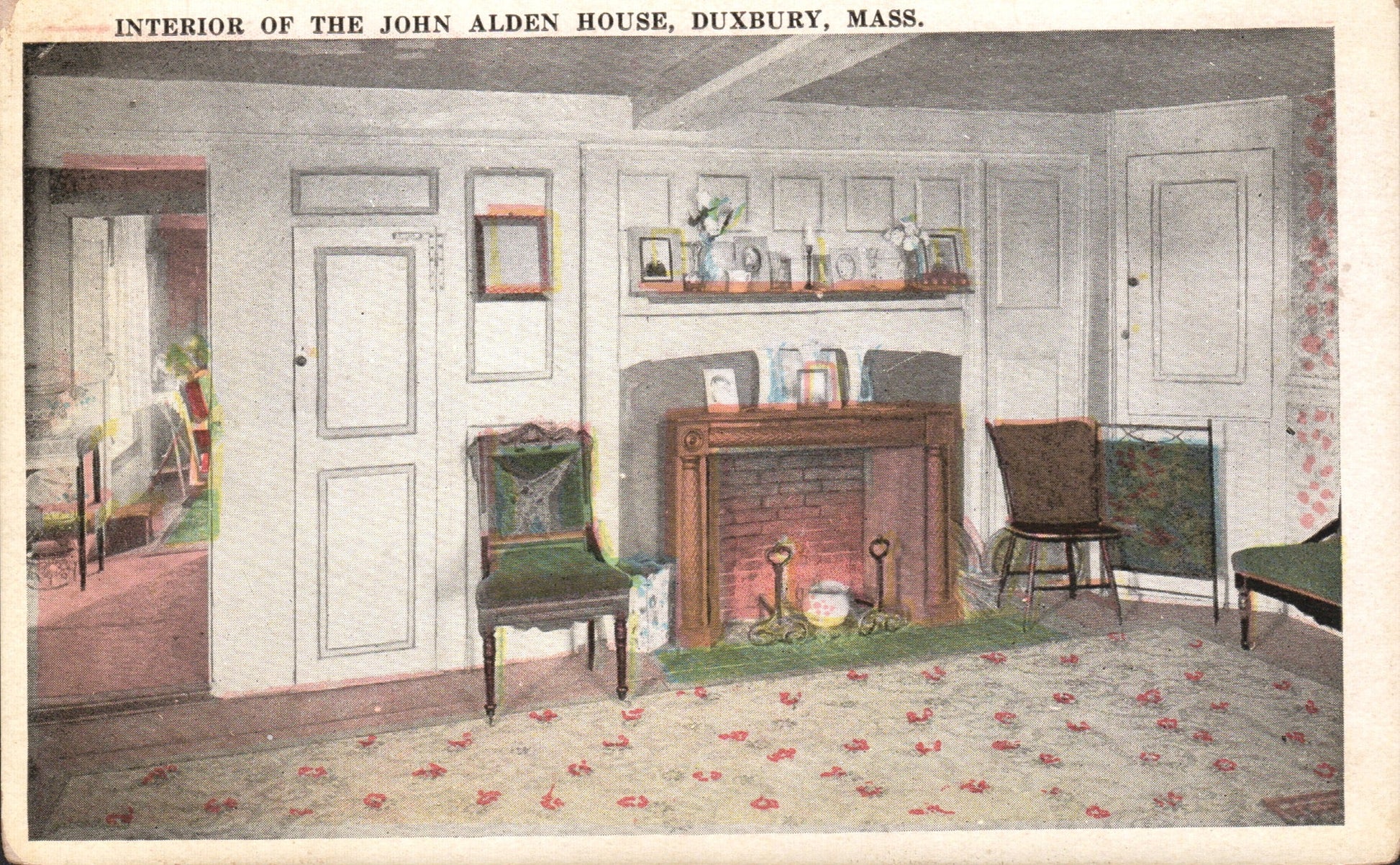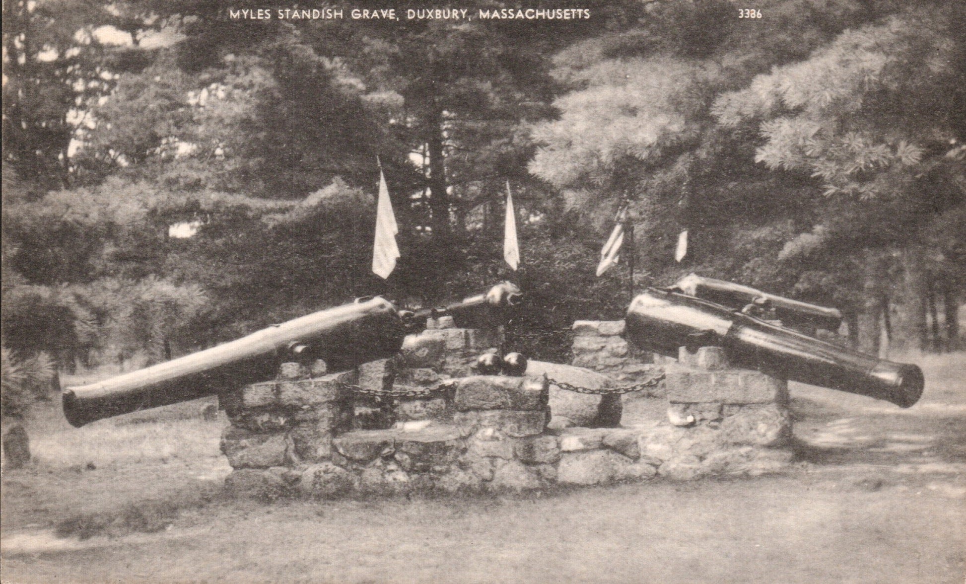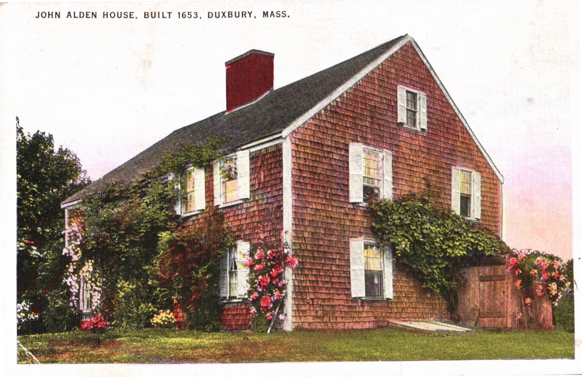 Duxbury Post cards: John Alden House [4 exterior views, 2 interior views]; Howland House [chrome]; Standish House [3 views, 2 are B&W, one linen]; Miles Standish Grave [B&W]