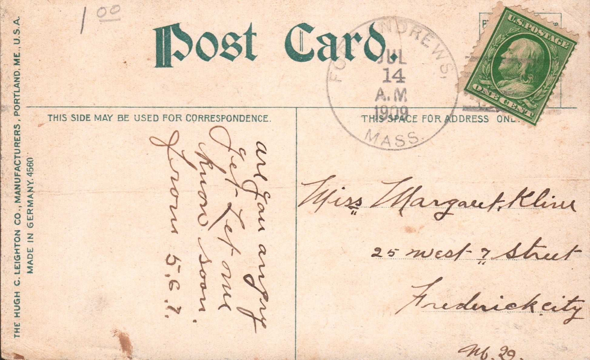 Fort Andrews (1907-1928) 1909 4-bar on comic post card