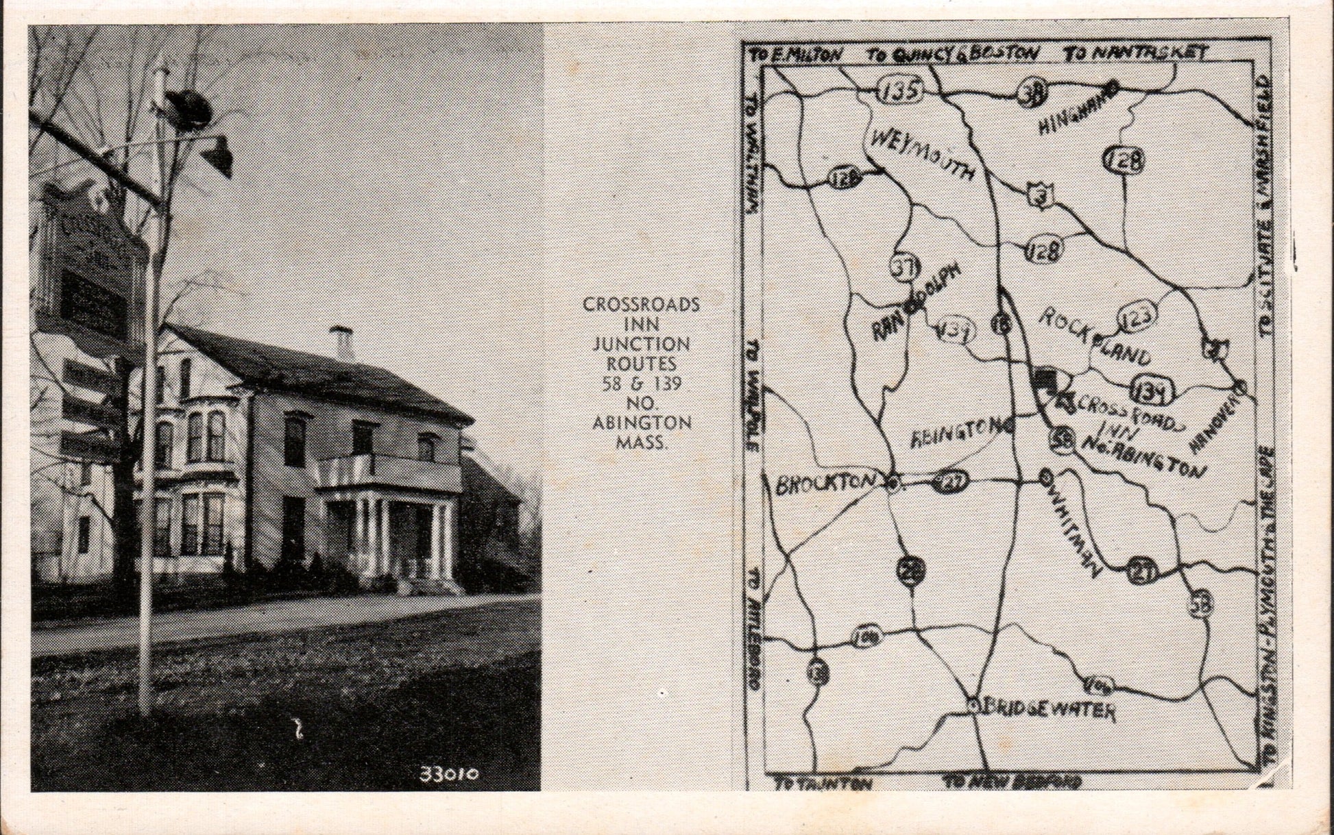 North Abingdon Post card: Crossroads Inn & Map (B&W)
