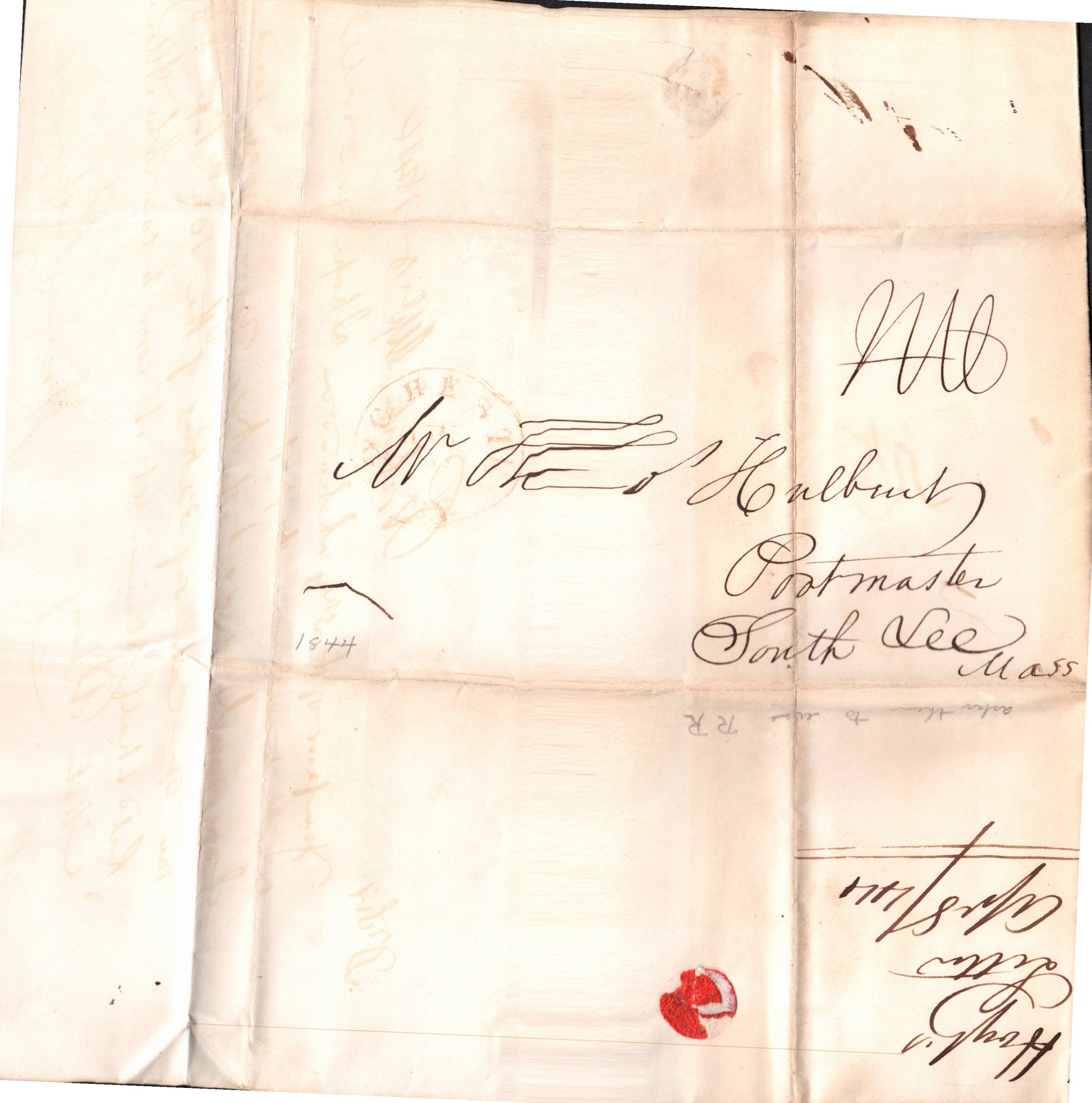 Rochester very light, red April 5, 1844 cds on stampless letter, content mentions railroad