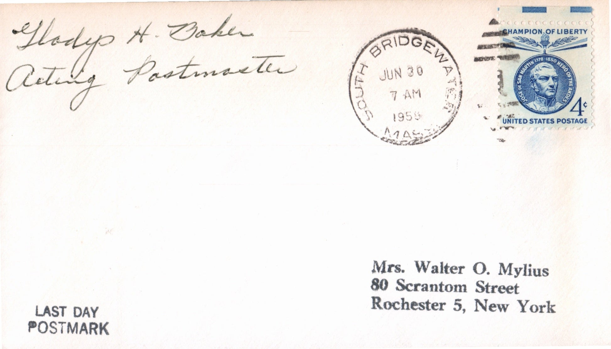 South Bridgewater (1851-1959) 1956 duplex on LD cover, PM autograph