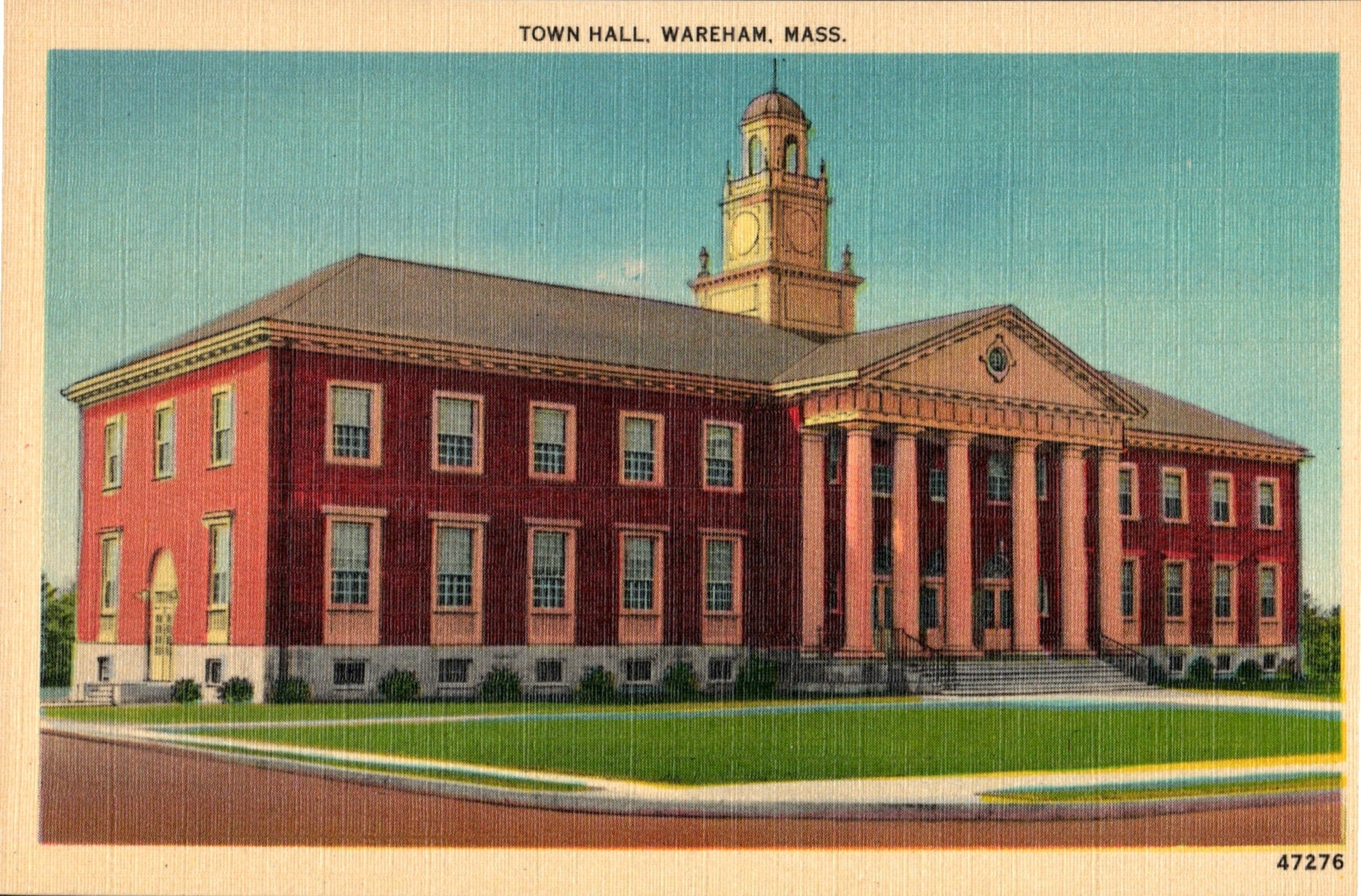 Wareham Post cards: Tobey Hospital [linen]; Town Hall [linen]
