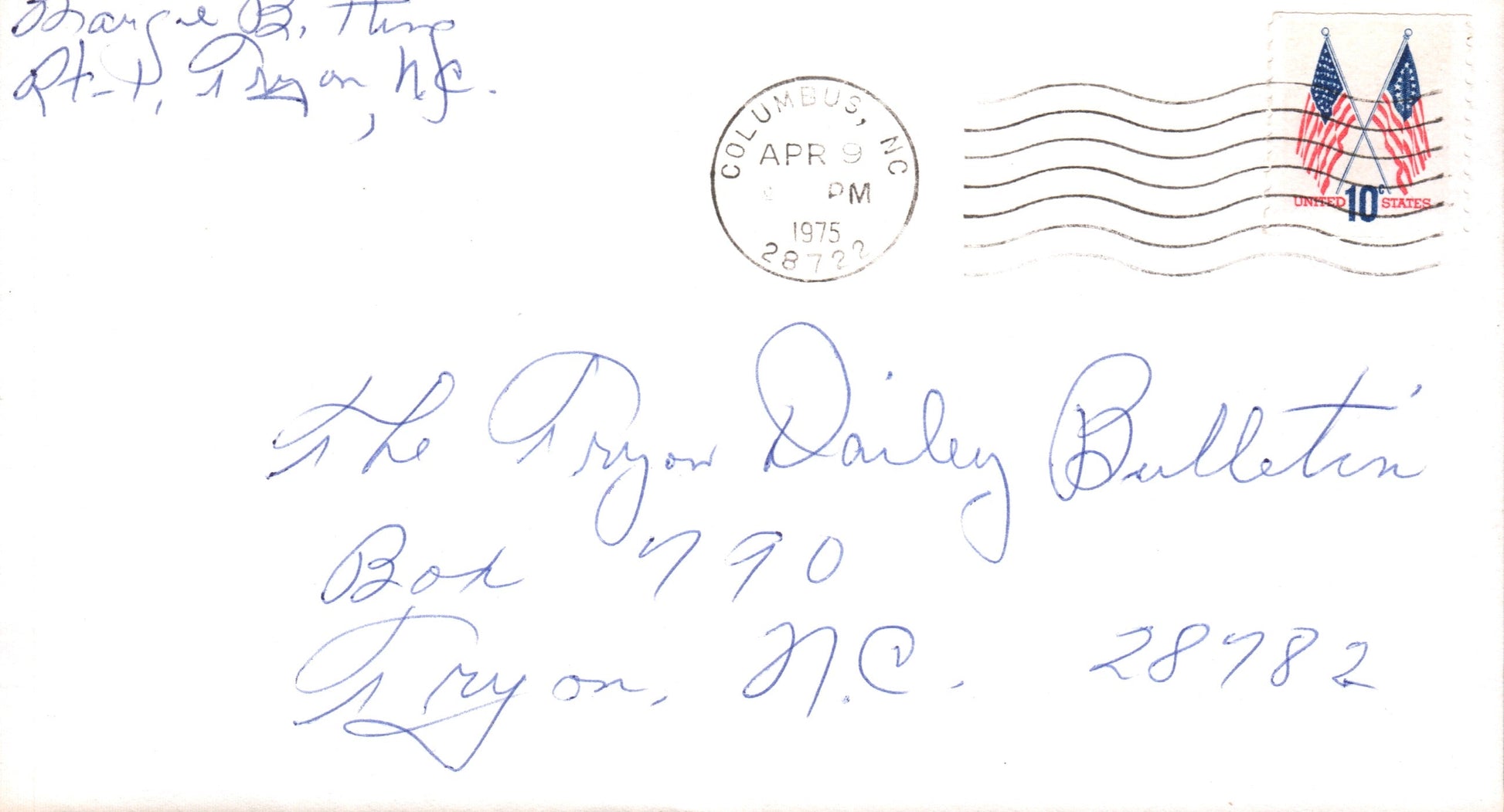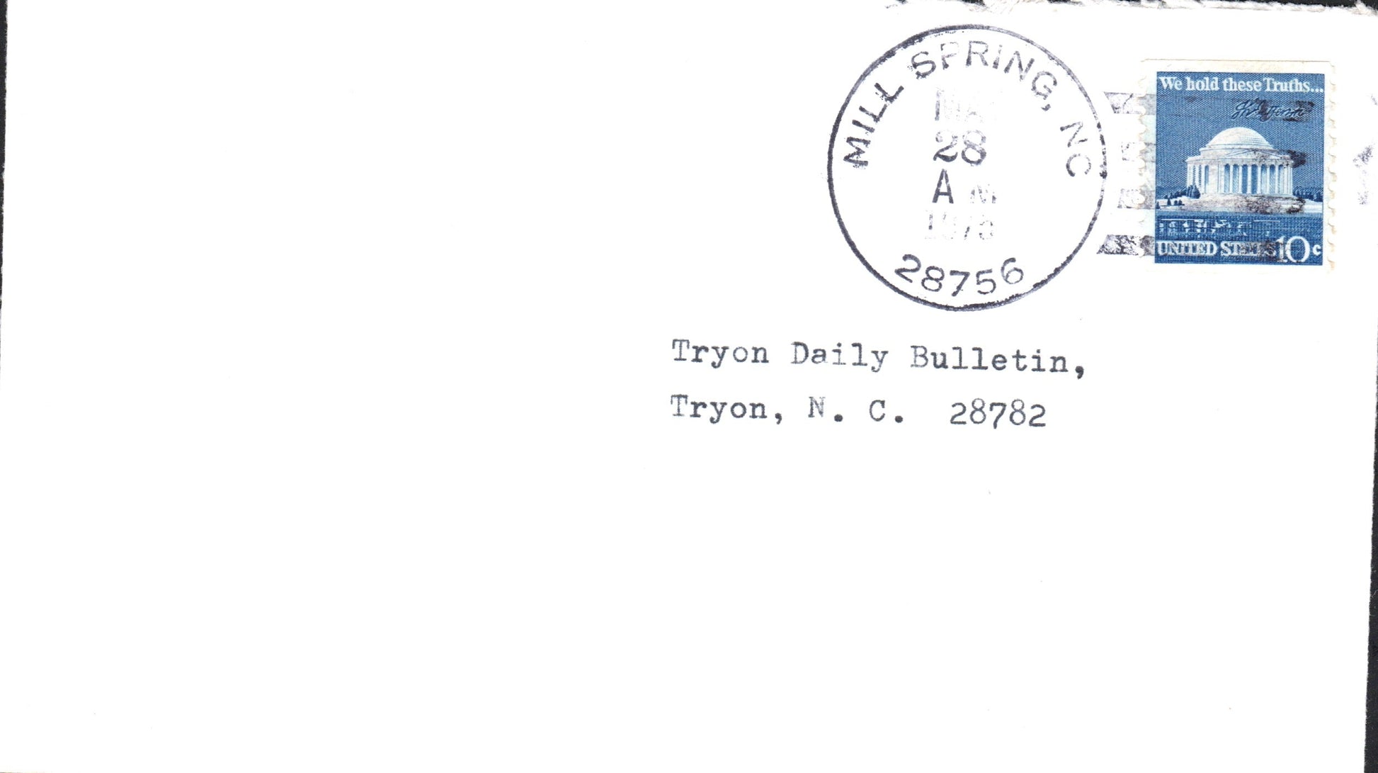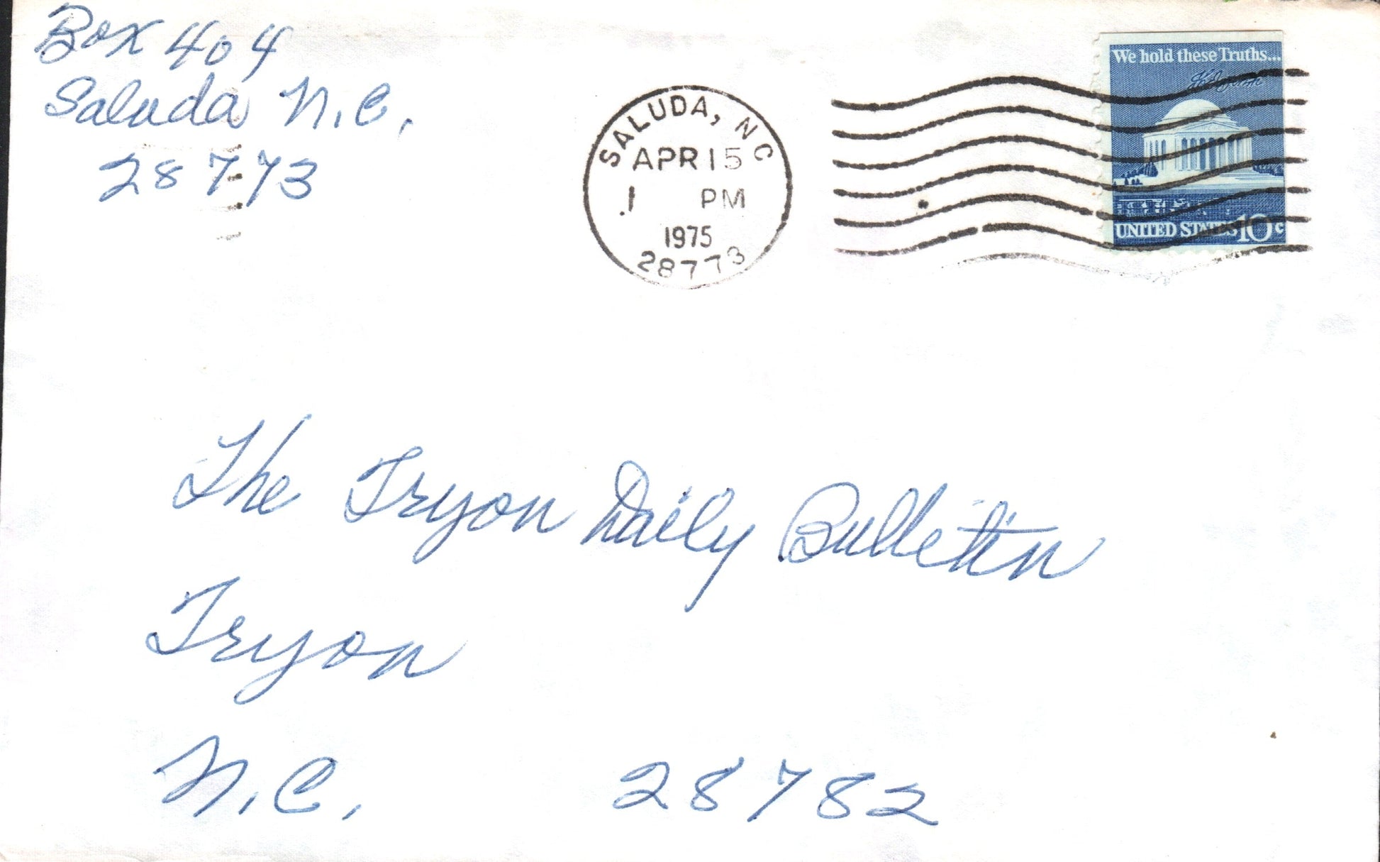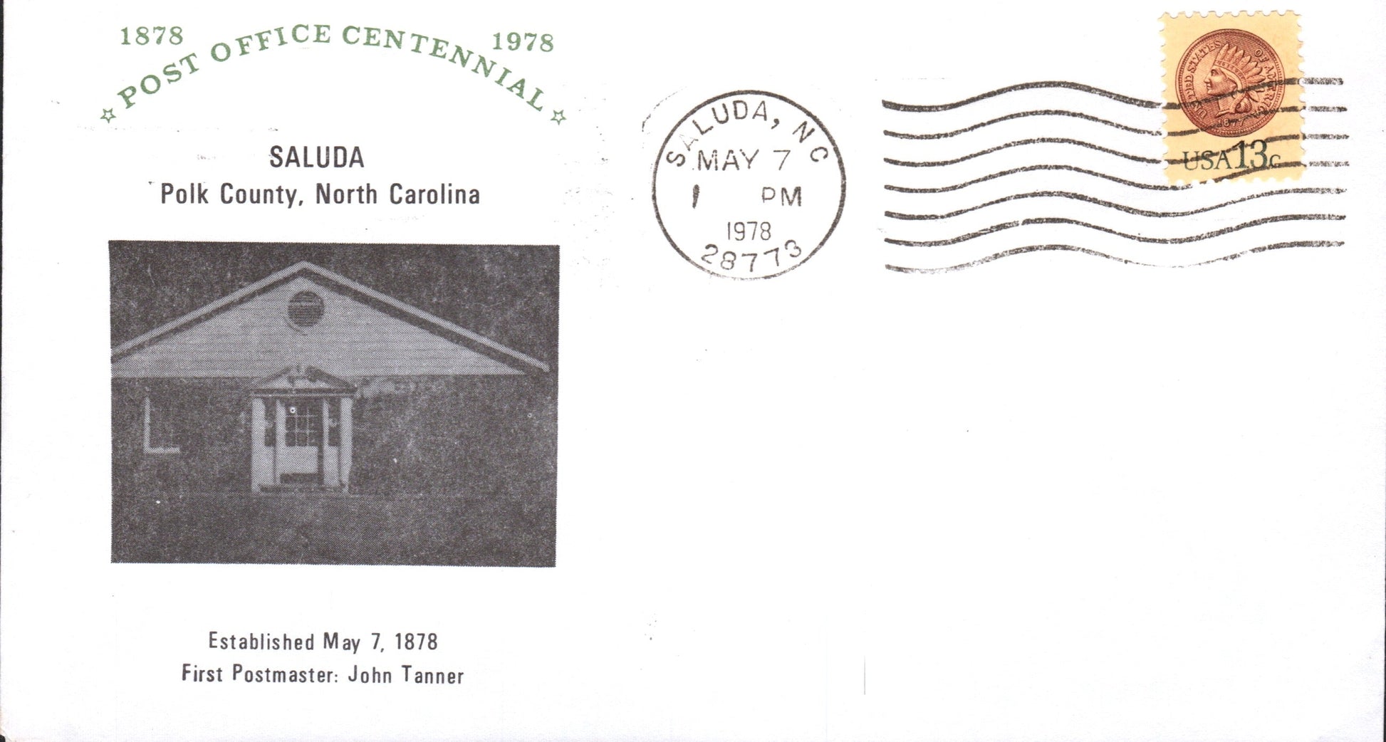Saluda 1975 machine cancel on cover; 1978 machine cancel on cover cacheted with photo of p.o. for 100th anniversary