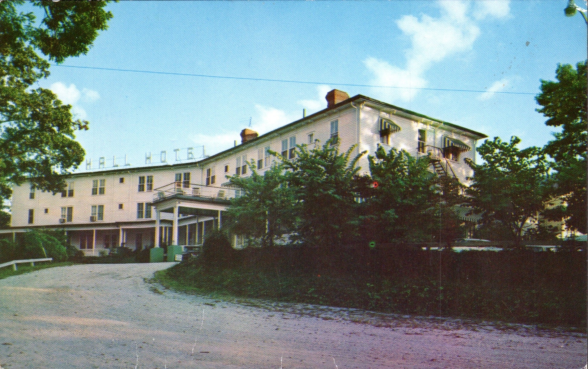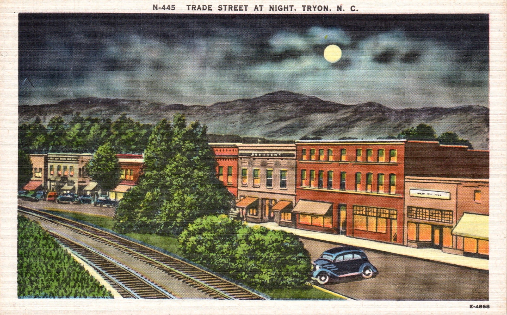 Post cards: “Trade Street at Night” [linen]; Oak Hall Hotel [chrome]; Valley Court Motel and Cottages [chrome]