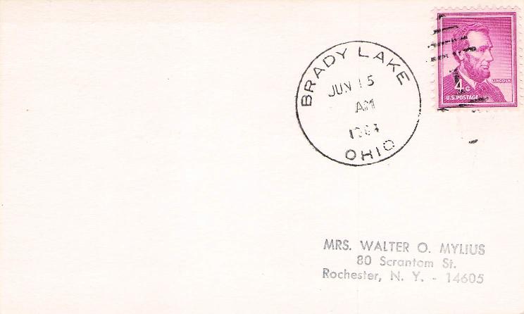 Brady Lake 1961 duplex on 3x5 card, PM autograph on back