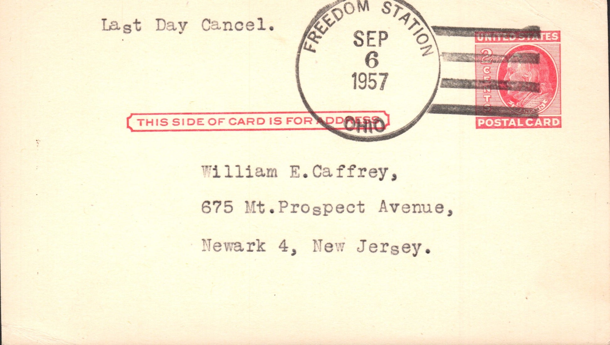 Freedom Station (1865-1957) 1957 4-bar on LD Postal Card