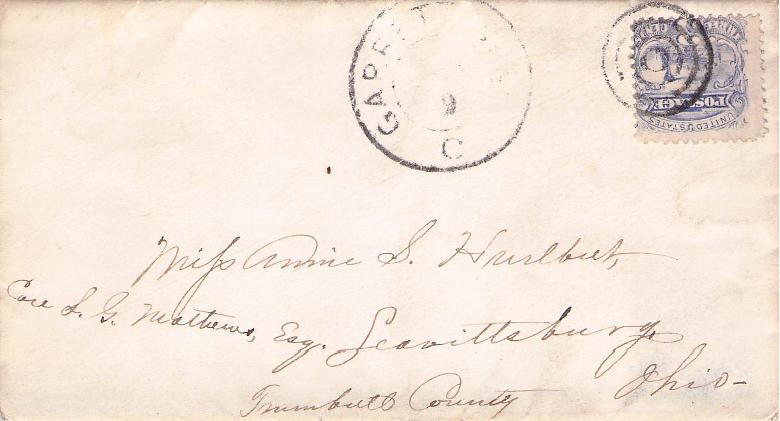 Windham 1870s? manuscript cancel, in town delivery; Postmaster cancel: 1891 cds “Windham O. H.T. Sheldon P.M.” on cover