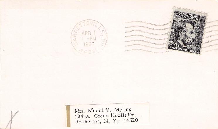 Garrettsvile poor 1869 cds with target killer, includes original contents [letter); light 1967 machine cancel on 3x5 card