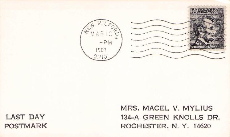 New Milford (1857-1967) 1967 machine cancel on LD 3x5 card