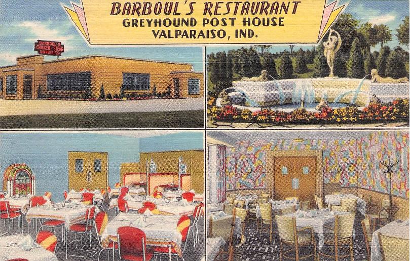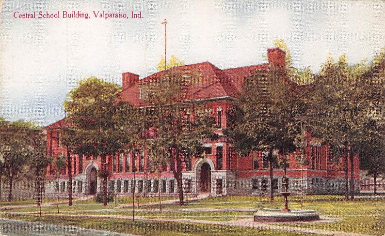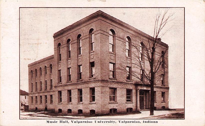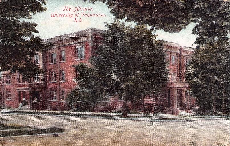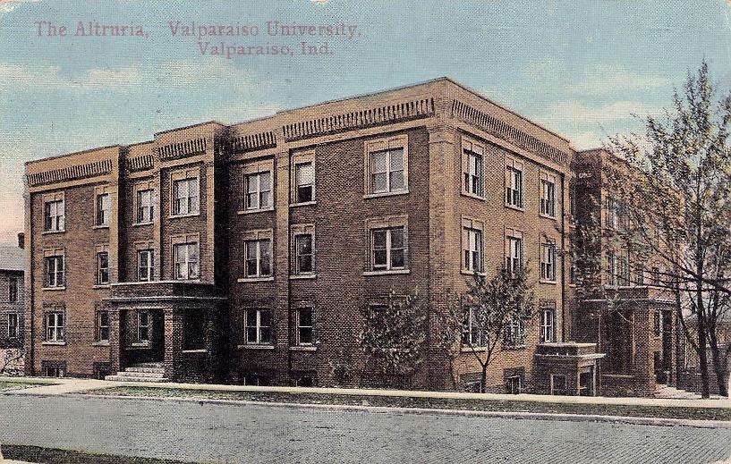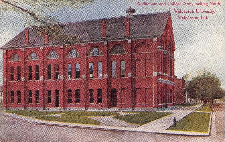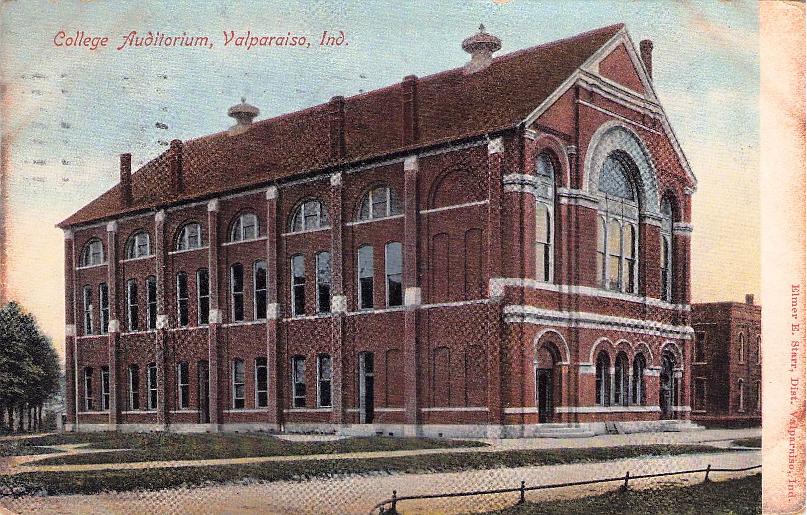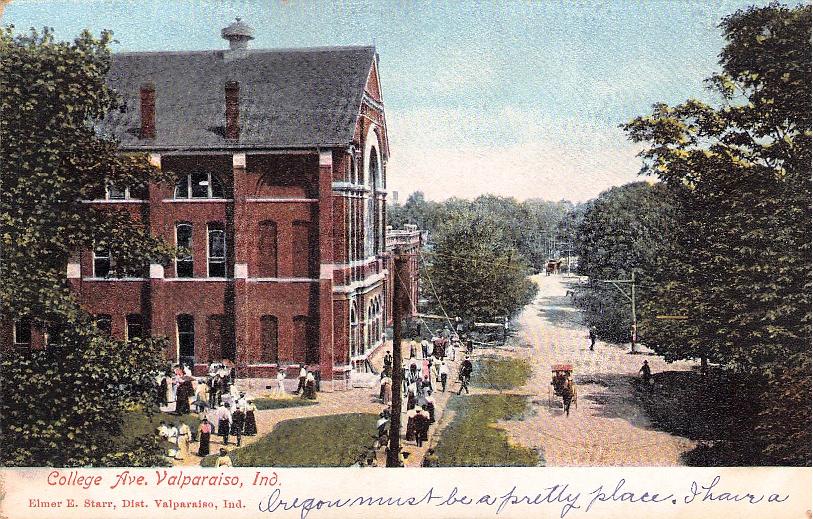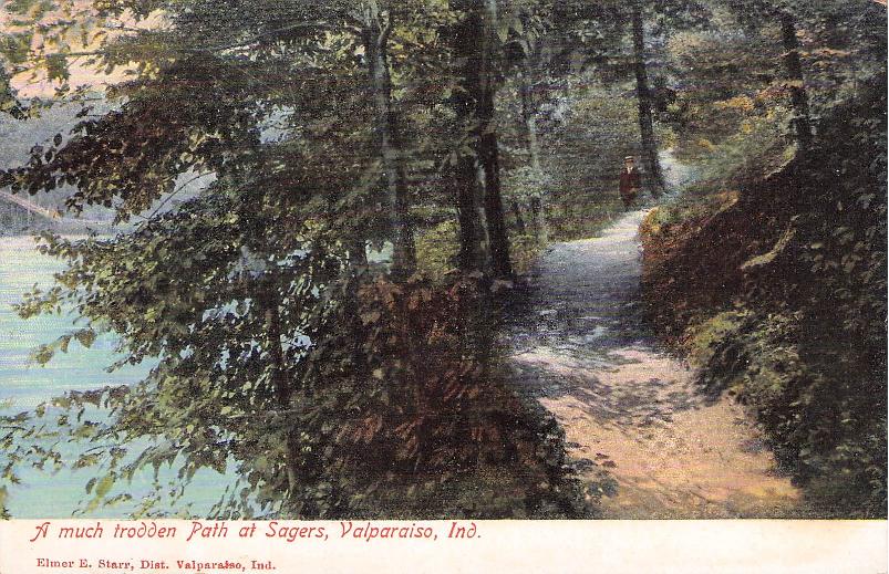 - Valparaiso Post cards: Hotel Lembke [linen, 1951]; Holiday Inn [chrome, 1971]; Barboul’s Restautant [3 views, one exterior, chrome; one with 4 diff. views, linen; one interior B&W real photo]; Strongbow Turkey Inn sign [chrome]; Strongbow Turkey Inn [chrome]; Court House [1909]; “College Ave., Auditorium [c.1910]; “The Mill by the Wayside” [2 views c.1910]; “A Much Trodden Path at Sagers” [c.1910]; “Lover’s Repose, Bridge adjoining University” [with train, c.1910]; Auditorium [2 views, 1907, c.1910; “Old College Building” [2 views, 1907, c.1910]; College Auditorium [c.1910]; “The Altruria, Valparaiso University” [2 views, 1907,1913]; Music Hall [sepia, 1910]; Central School Building [c.1910]; University Union [chrome]; Deaconess Chapter House [chrome]; Kreinheder Hall [chrome]; Guild Hall [chrome]; Christian Church [1910]; church grounds, caption in Czech ends “Frantisknov v St. Francis, Valparaiso, Ind.” [chrome]; View from Cliff at Sager’s Lake [1908]; “Sheridan Beach, Flint Lake [1914]