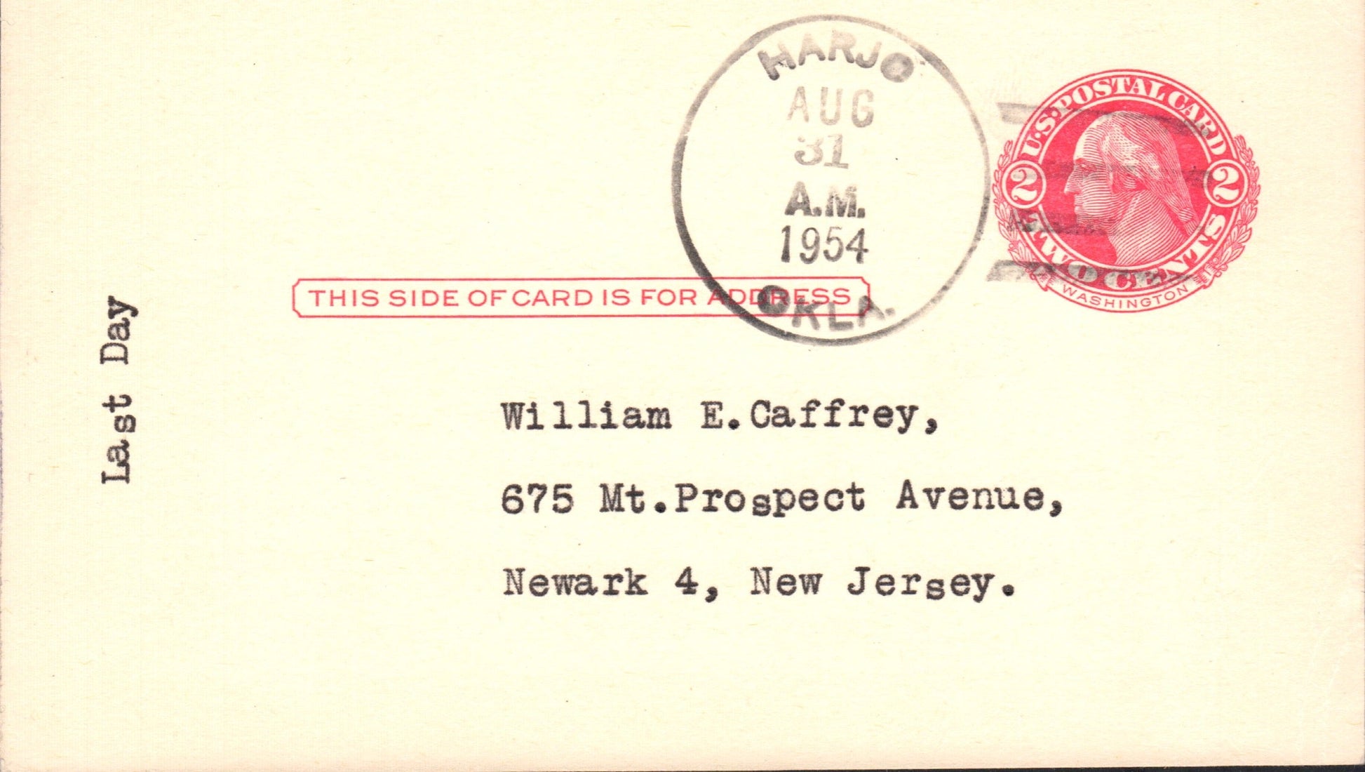 Harjo (1921-1954) 1954 4-bar on LD Postal Card