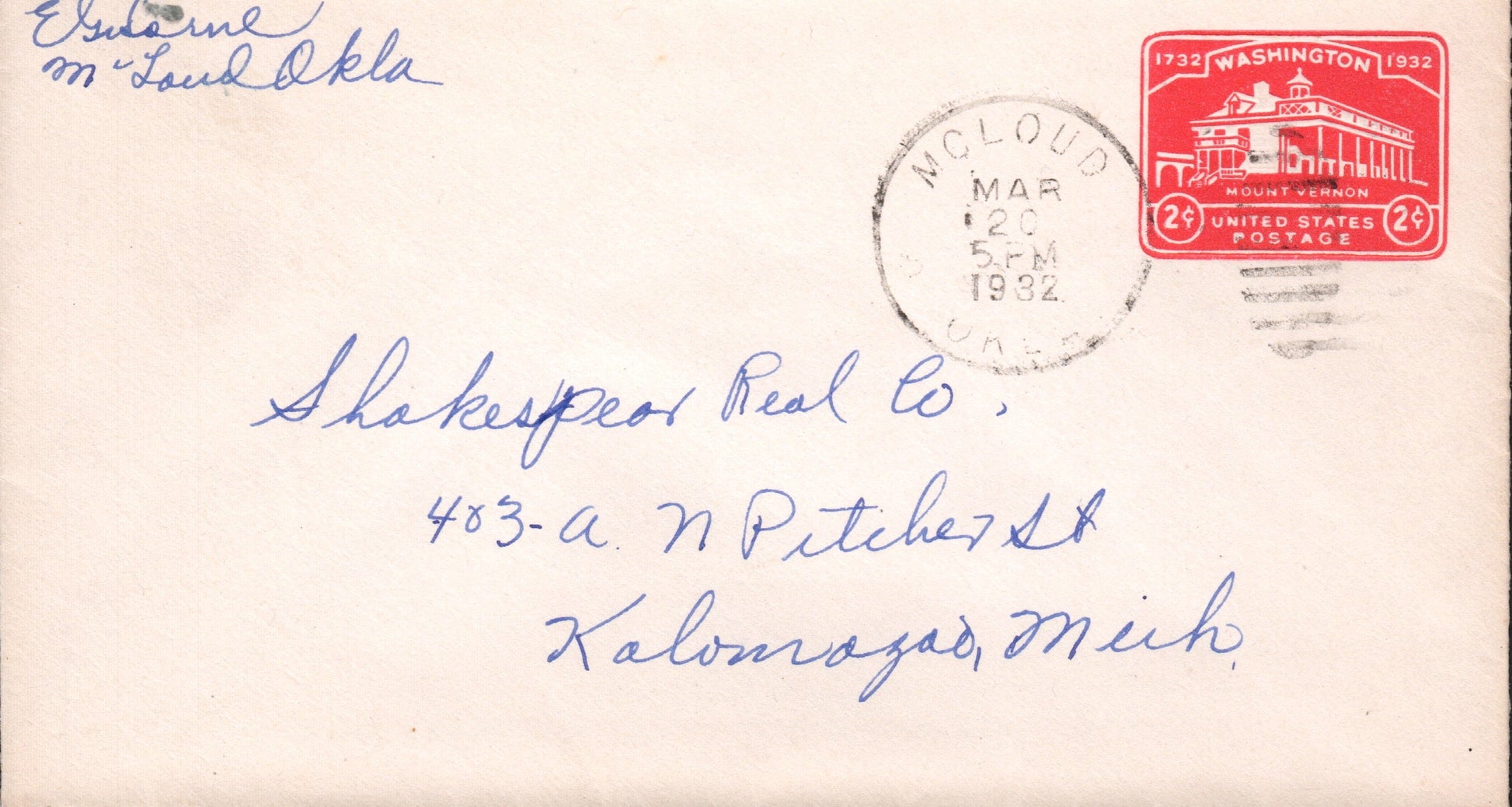 Marland 1940 4-bar on cover “Via Air Mail” handstamp, “Marland Hdwe, Co.” corner