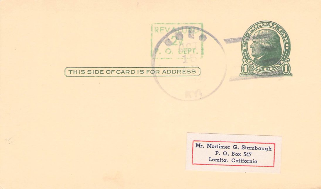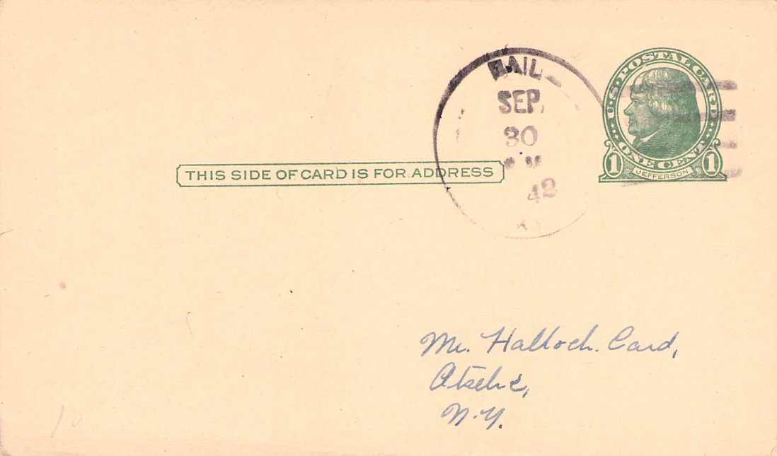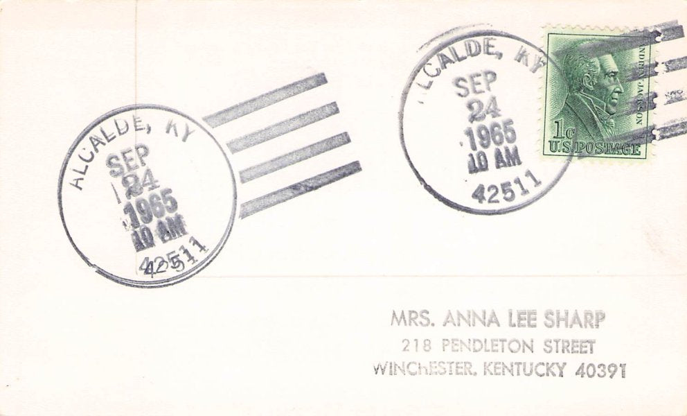 Naomi (1897-1962) 1962 4-bar on Postal Card