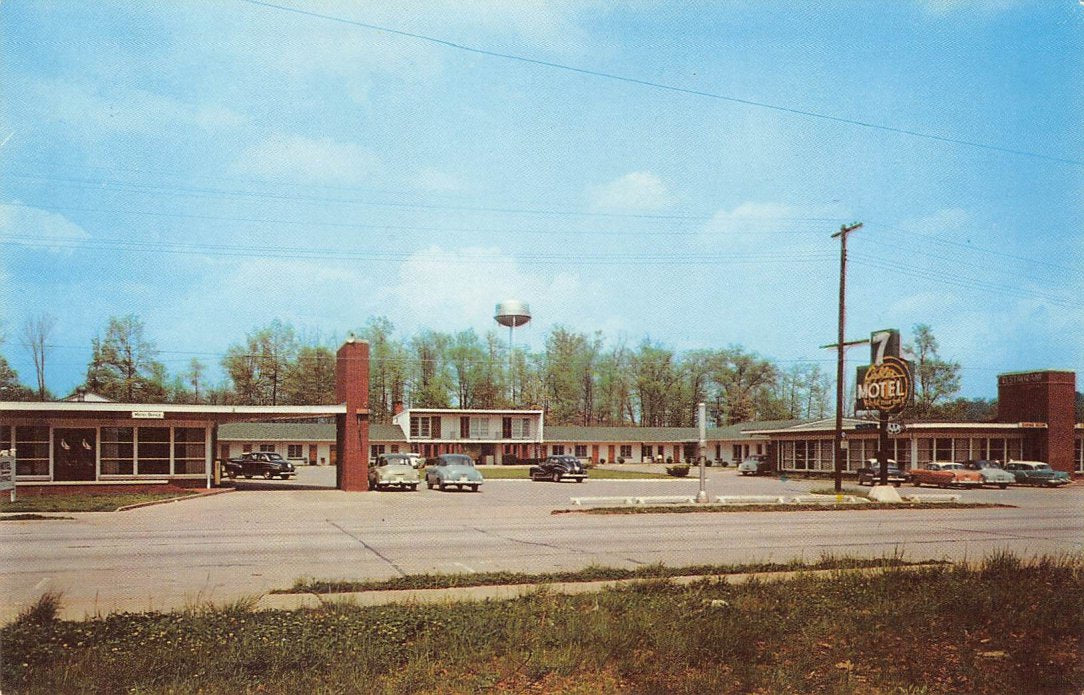 Post cards: 7 Gables Motel, 3 views [one linen, two chrome]; 7 Gables Restaurant [chrome]