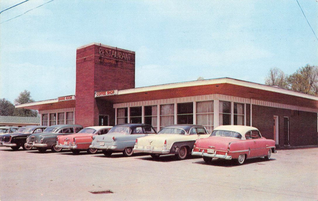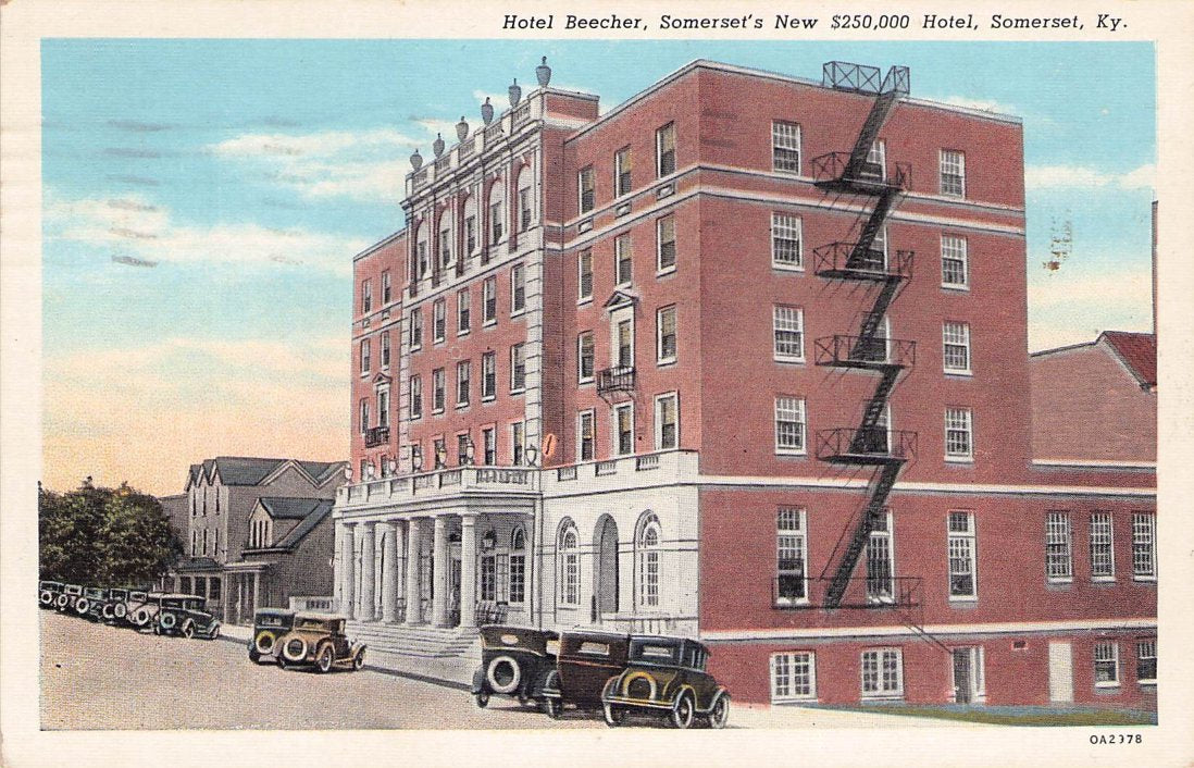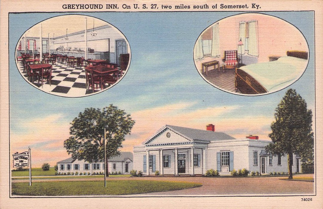 Somerset Post cards: Hotel Beecher [1939]; Greyhound Inn [linen]; Holiday Inn [1975]; Post office [B&W]