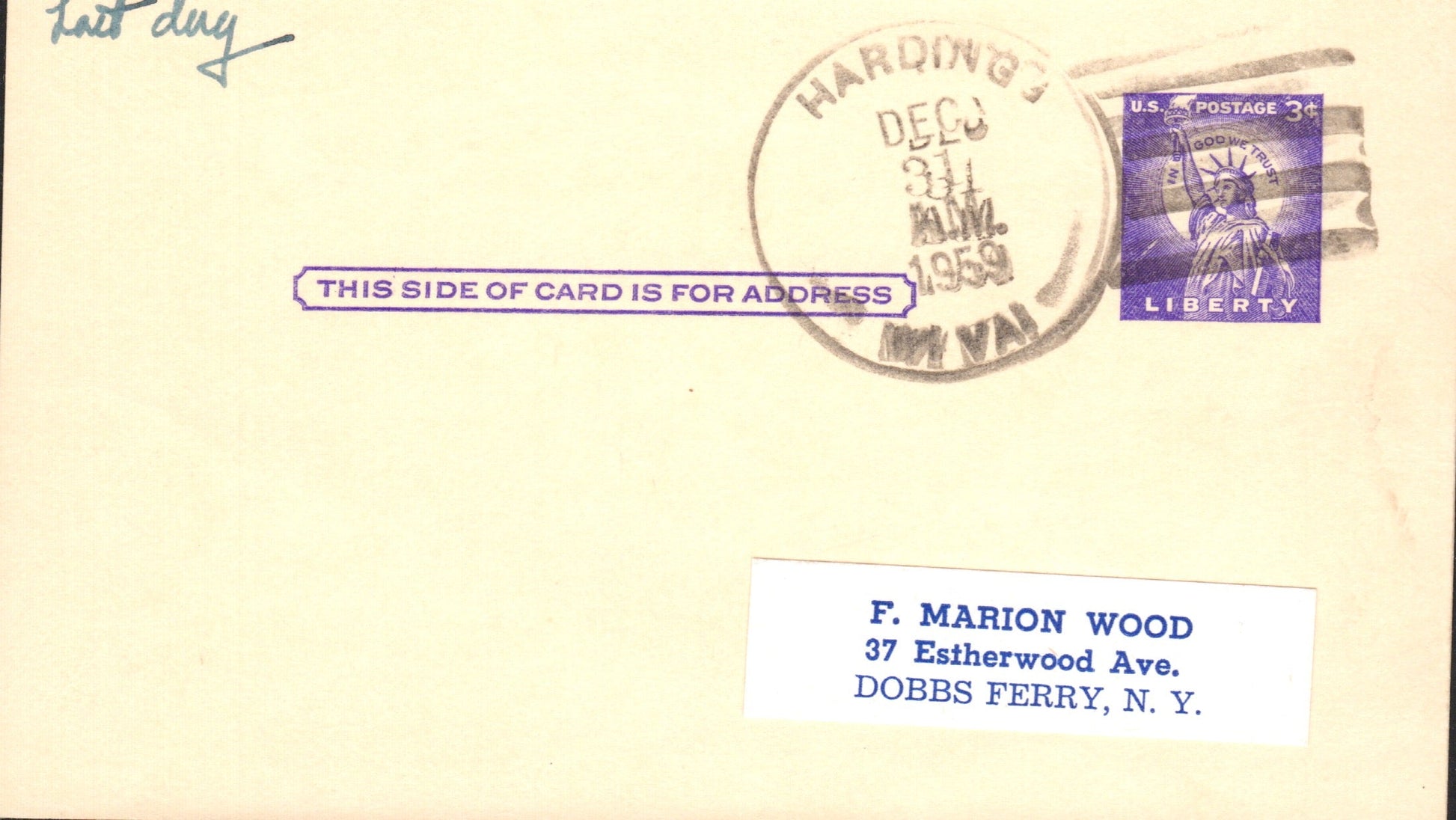 Harding (1892-1959) 1959 4-bar on Postal Card