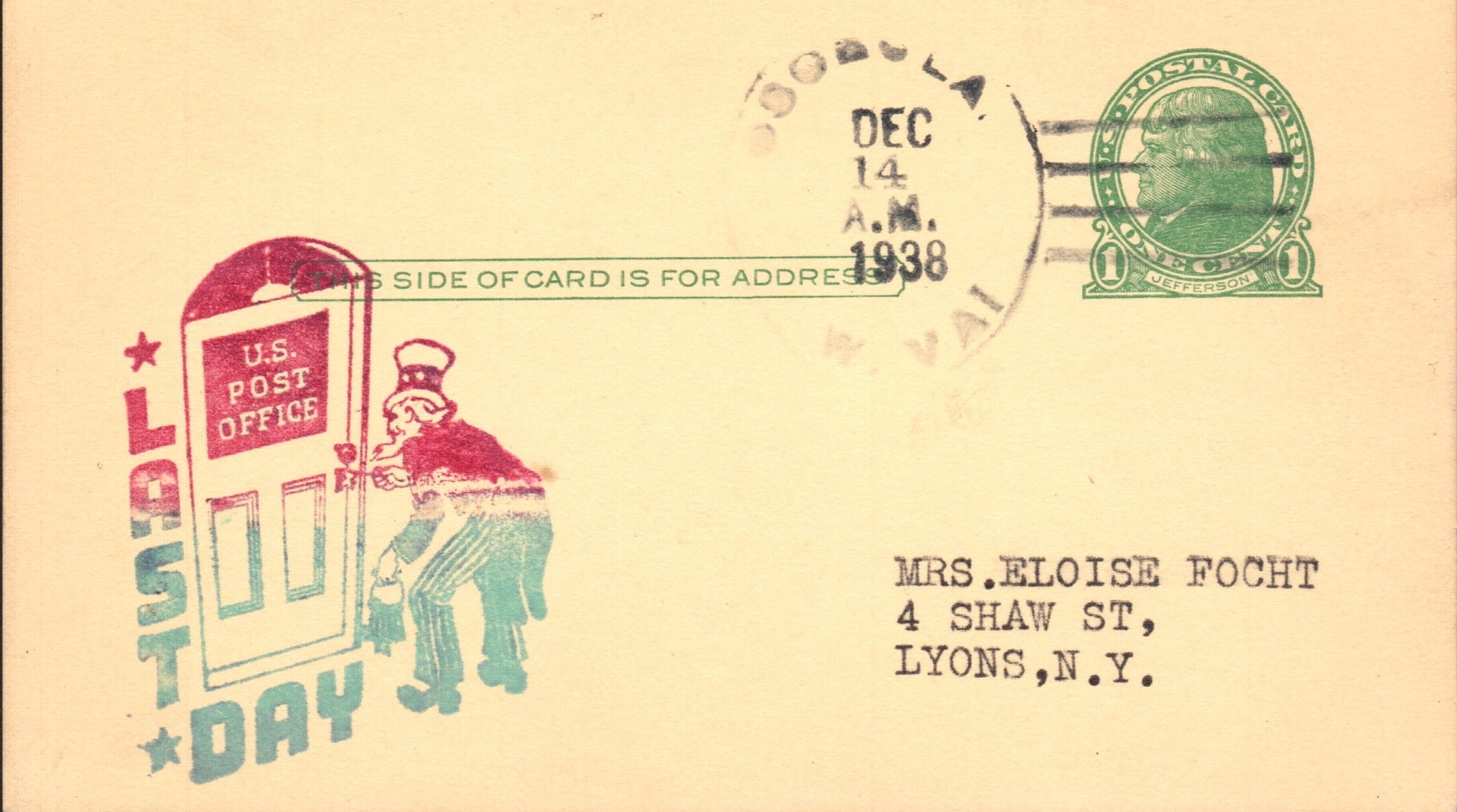Osceola (1886-1938) 1938 4-bar on LD Postal Card