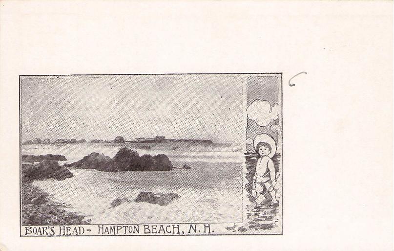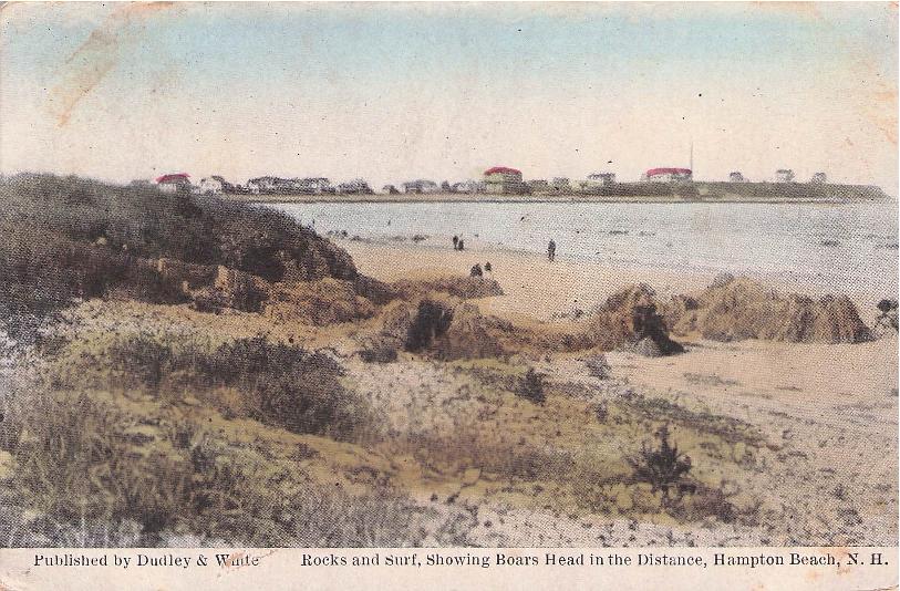 Hampton Beach RS (Hampton) Fine 1910 4-bar on post card, view shows Boar’s Head in distance