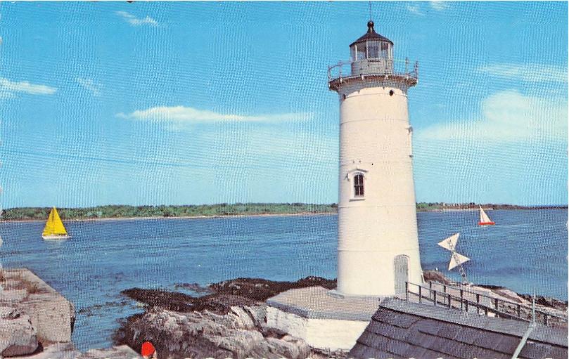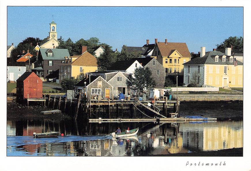 Post card: Howard Johnson Shop [chrome]; Tidal Canal and houses [Continental]; Banks [2 Continental view]; St. John’s Church [chrome]; Aldrich House [1918]; John Paul Jones House [2 views, one sepia, one chrome]; Wentworth-Coolidge Mansion [chrome]; Doorway of Pierce Mansion [c.1910]; Gov. Langdon Doorway [c.1910]; Warner House interior [chrome]; U.S. Naval Prison [c.1910]; Fort Point Lighthouse [chrome]