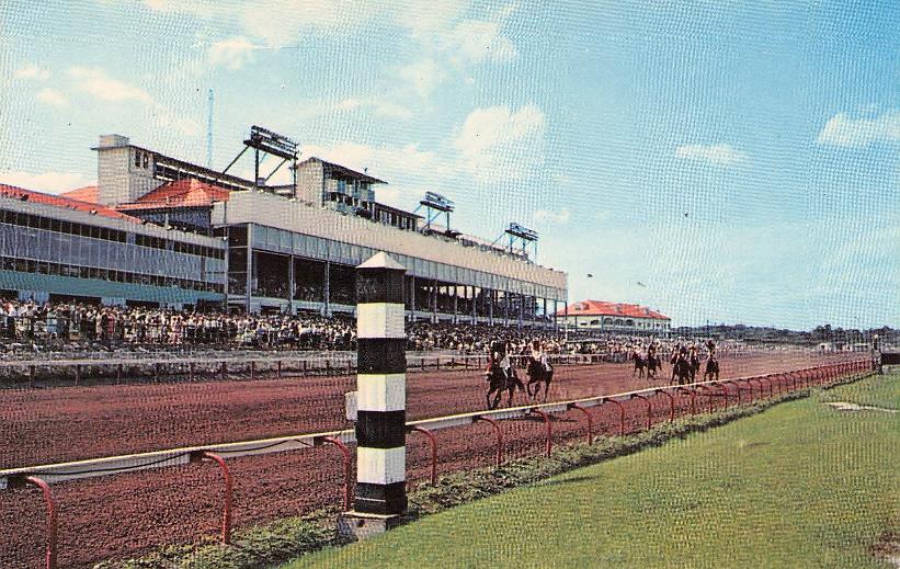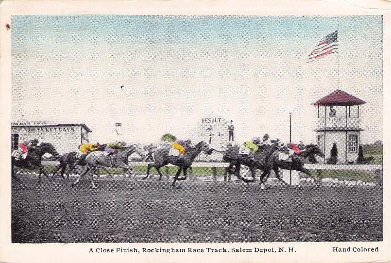 Salem Post card: Rockingham Race Track, two cards with race underway [one postmarked Windham Depot 1936, one chrome]