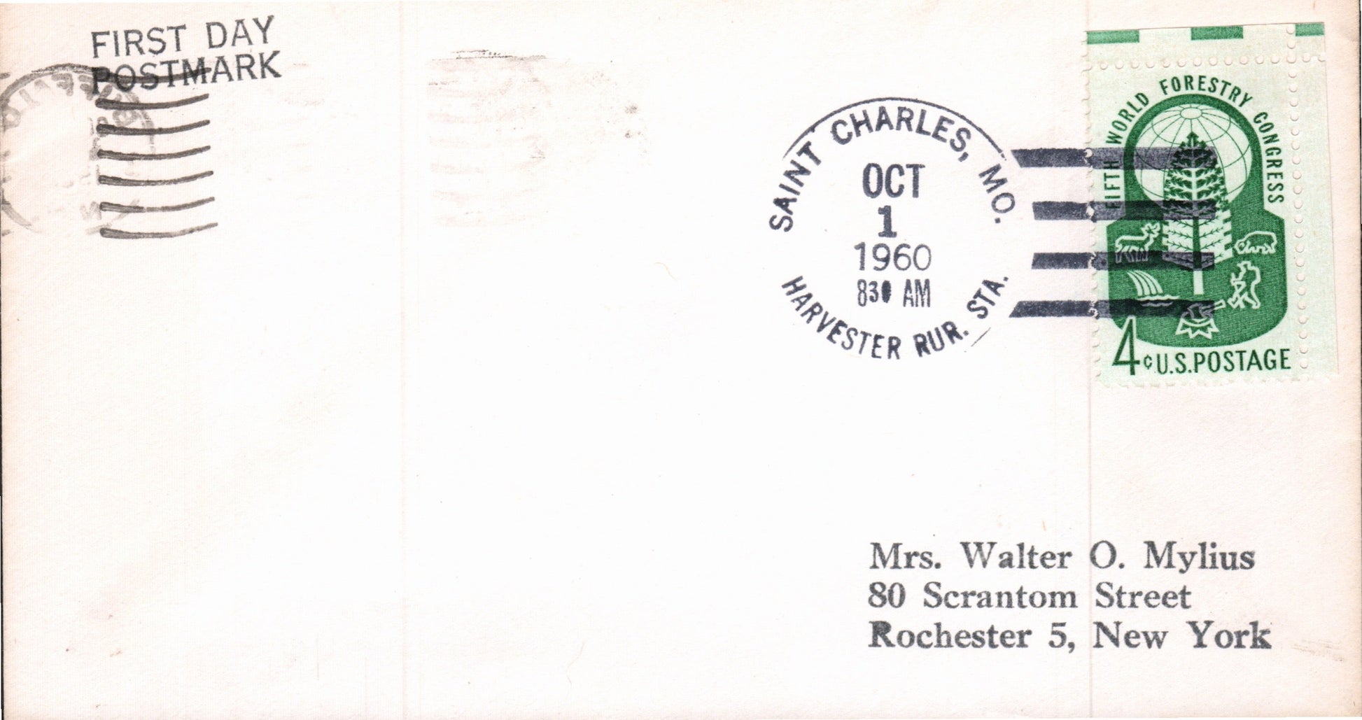 Harvester RS (St. Charles) 1960 4-bar on cover, FD of Rural Station