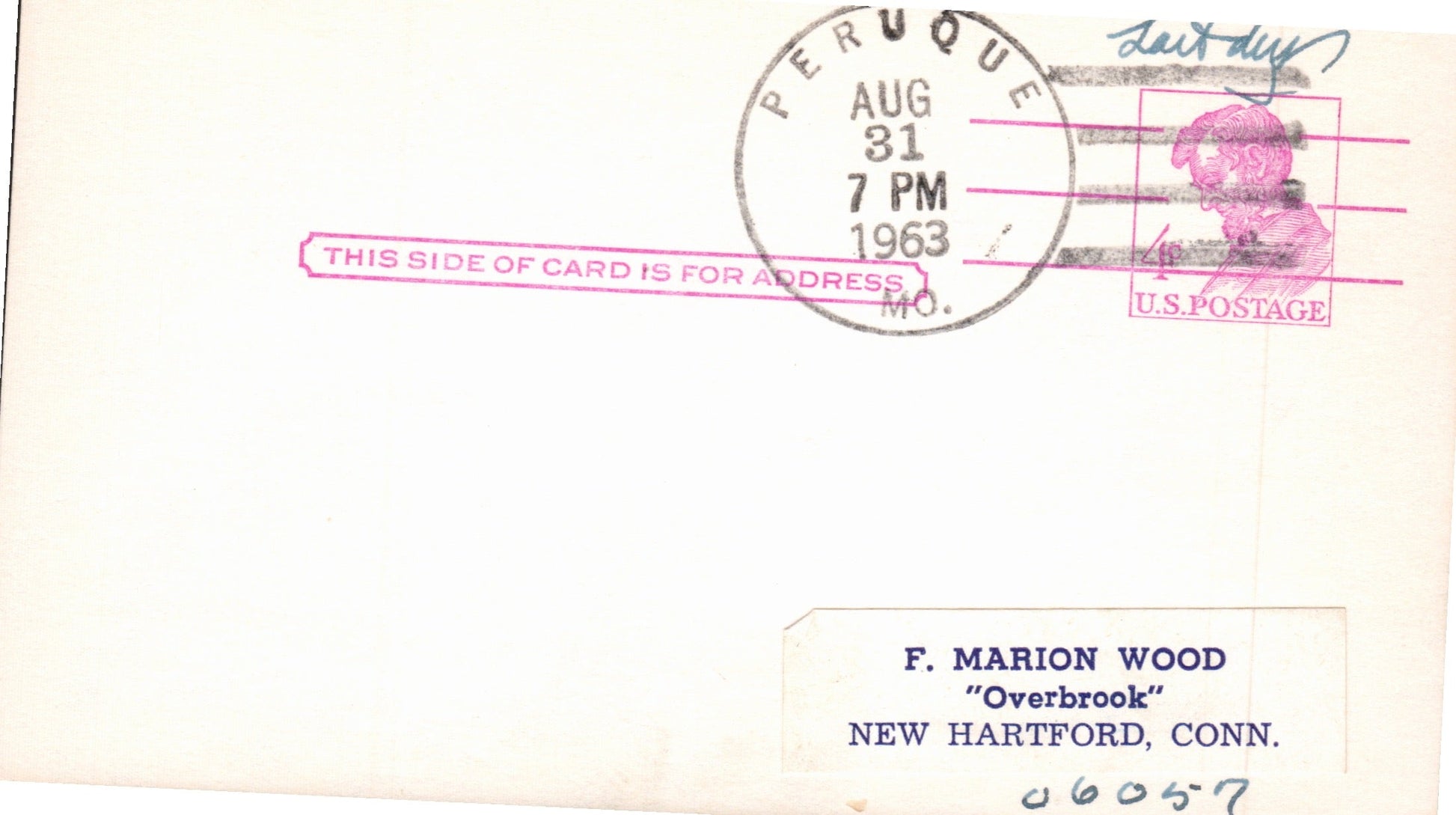 Peruque (1888-1963 or 1979) 1963 4-bar on LD Postal Card