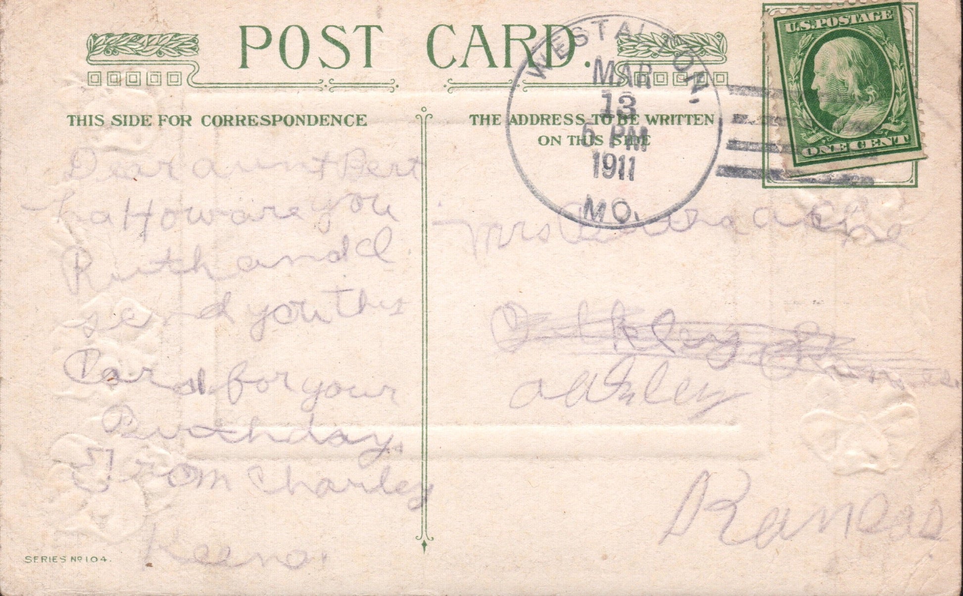 Weldon Spring (1875-1957) 1911 4-bar on post card