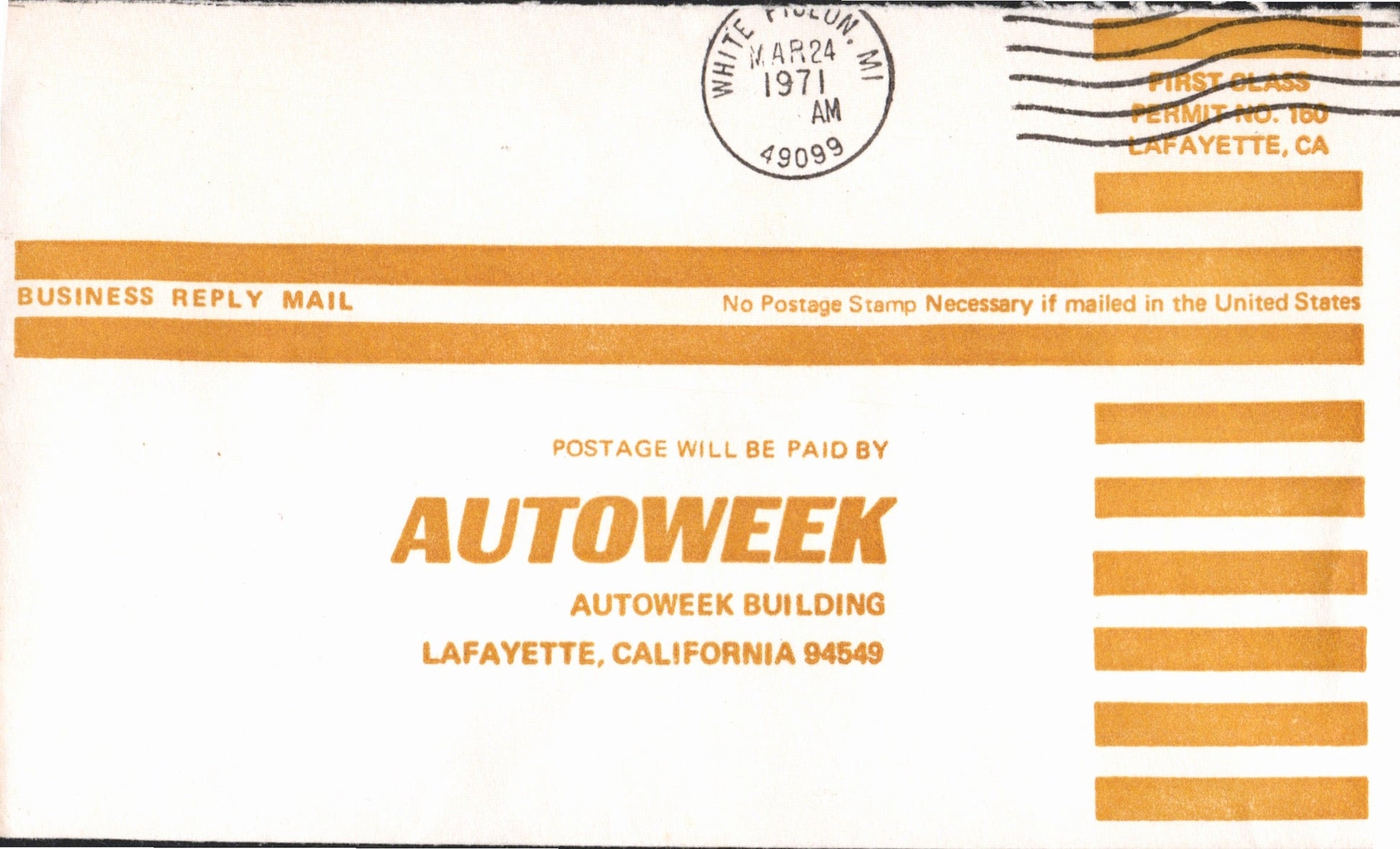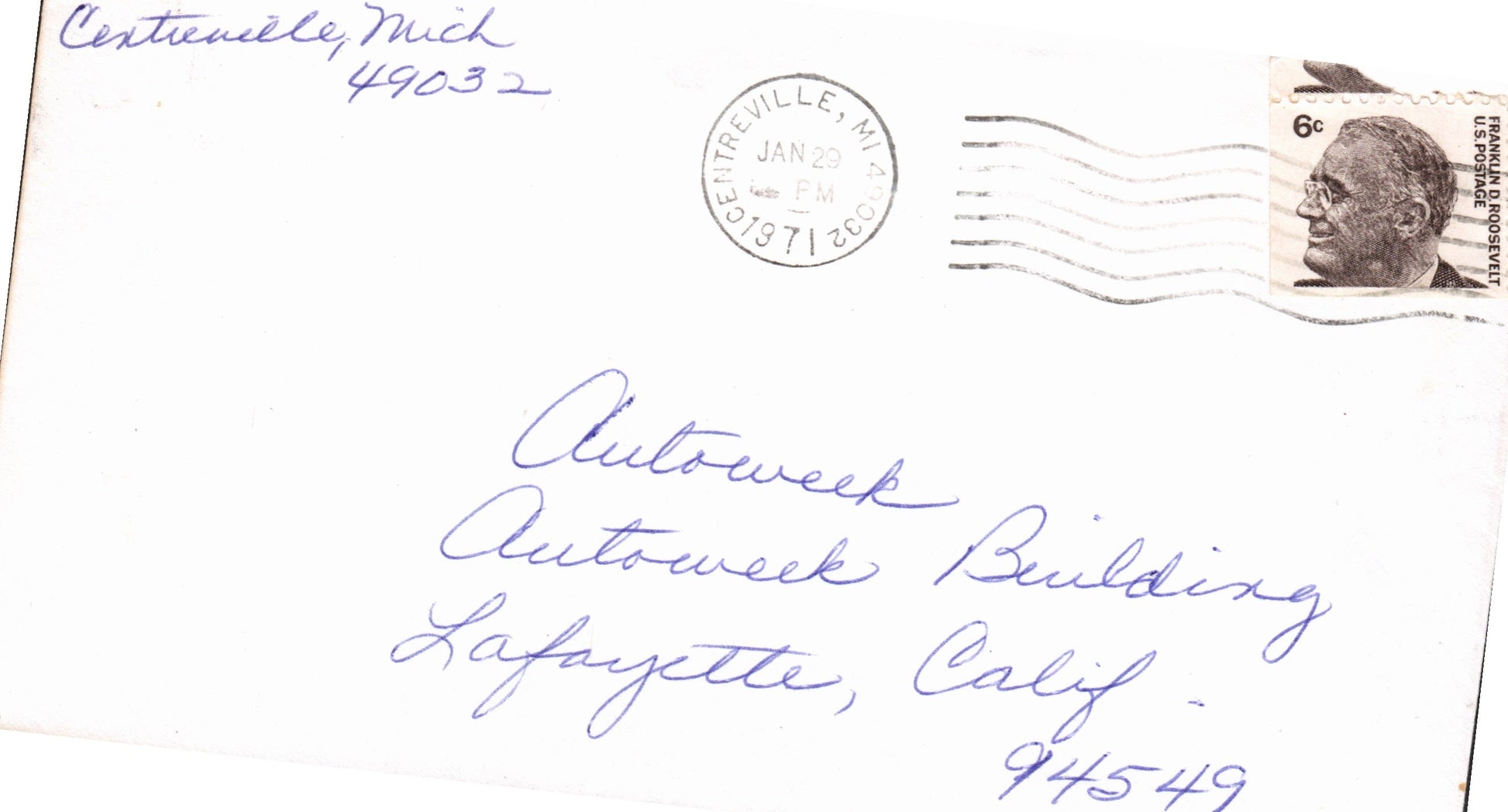 White Pigeon 1971 machine cancel slightly off top of cover.