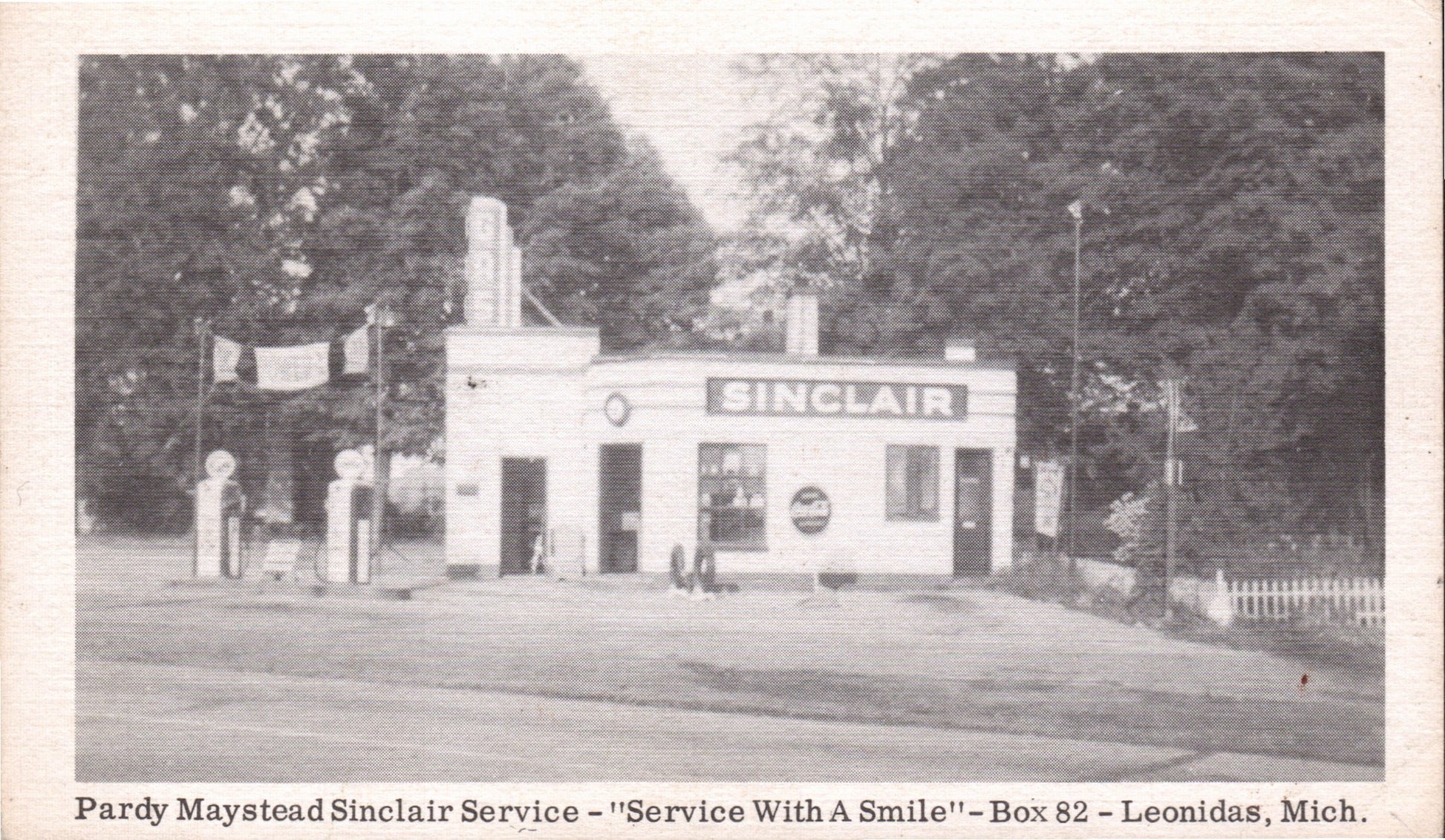 Post card: “Pardy Maystead Sinclair Service” [B&W, 1940s?]