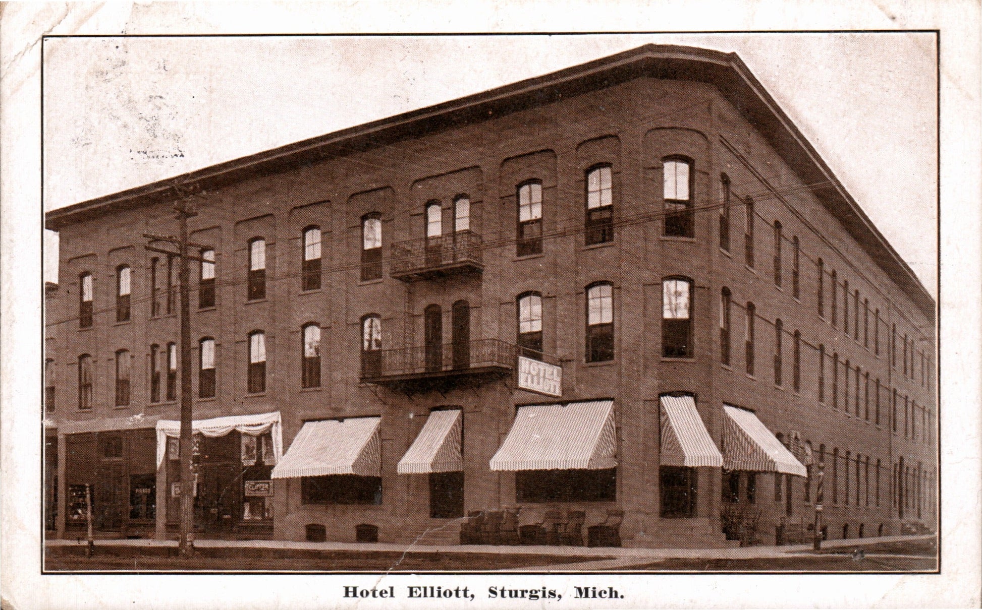 Sturgis Post card: “Hotel Elliott” [sepia, 1913]