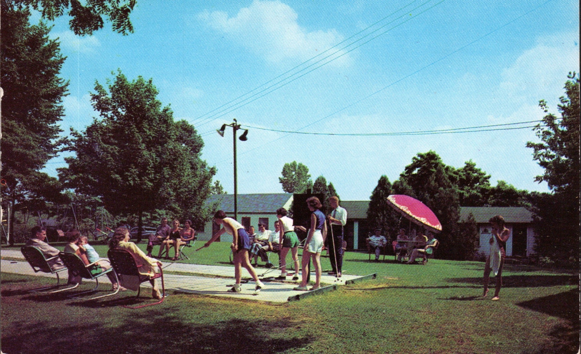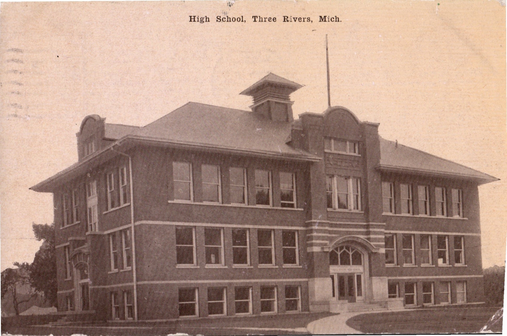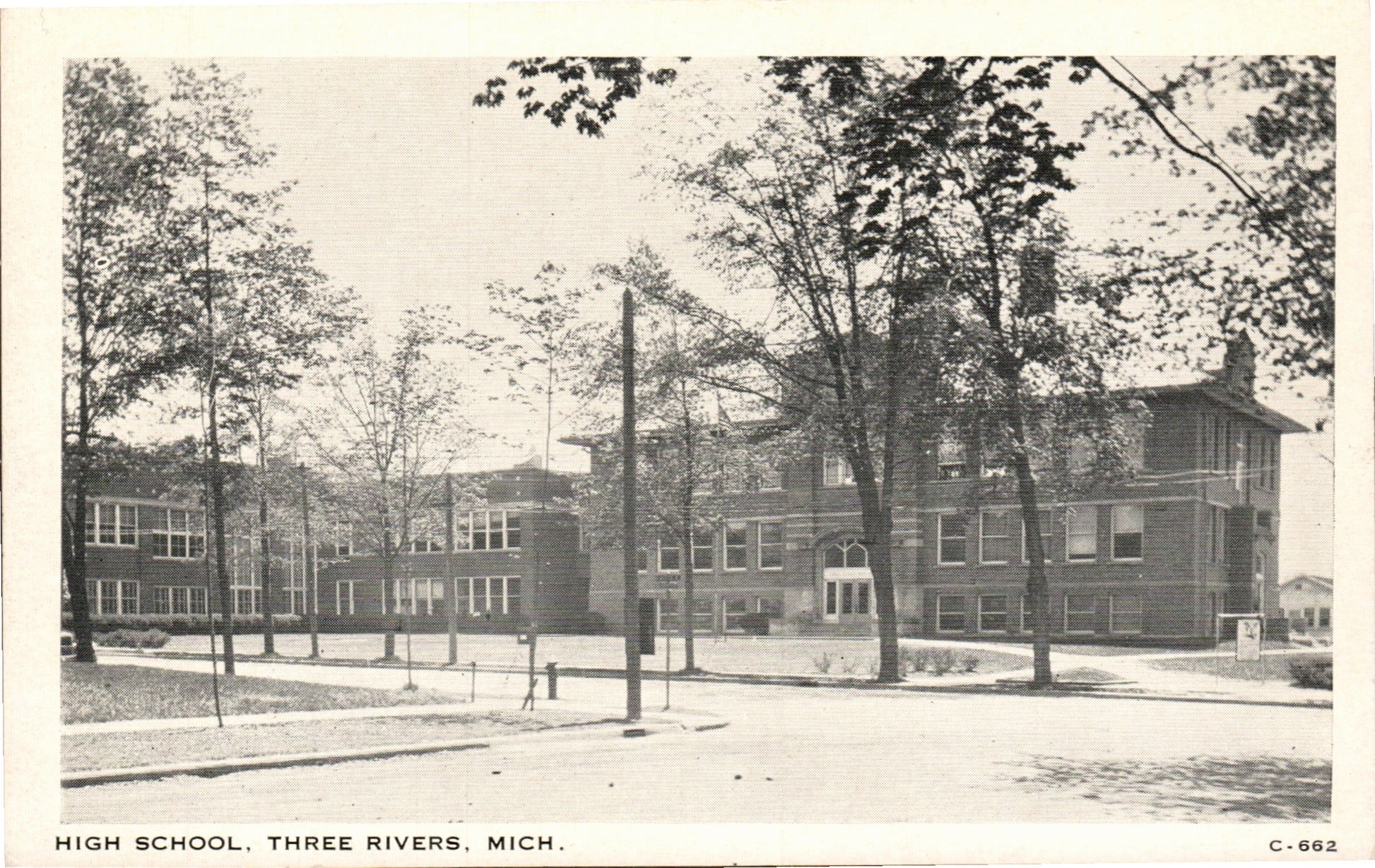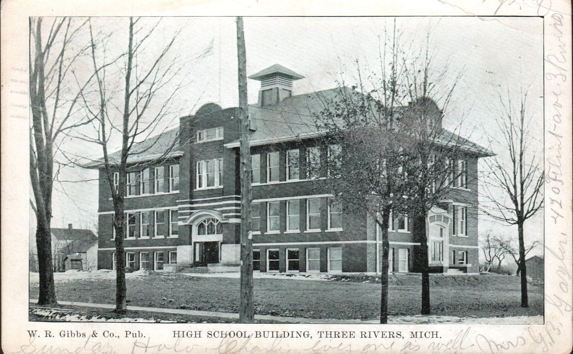 Post cards: Richlieu Lodge, shuffleboard [chrome]; “High School” [3 views, 1907 W.R. Gibbs pub, B&W; sepia, 1911; and c.1950, B&W]; “Scidmore Park” [chrome]