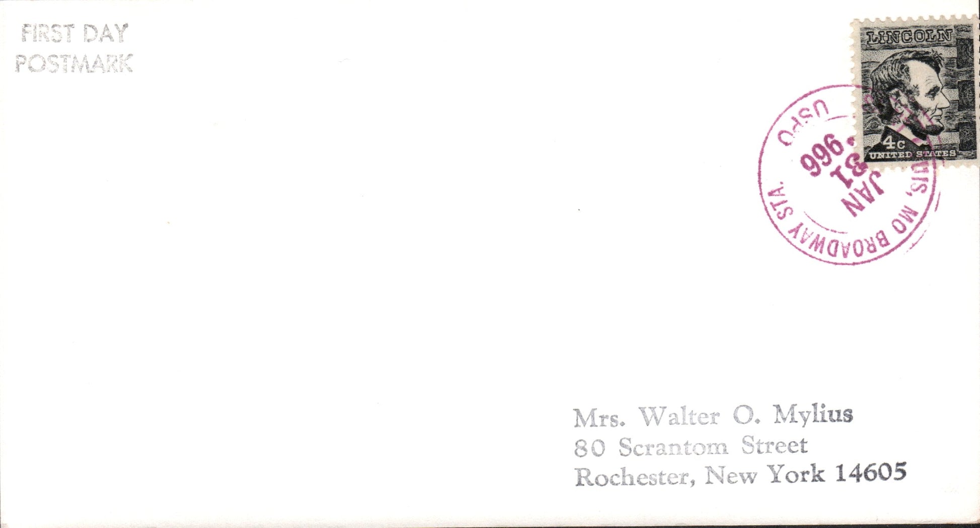 Broadway Sta. 1966 round dater on First Day cover-sized card