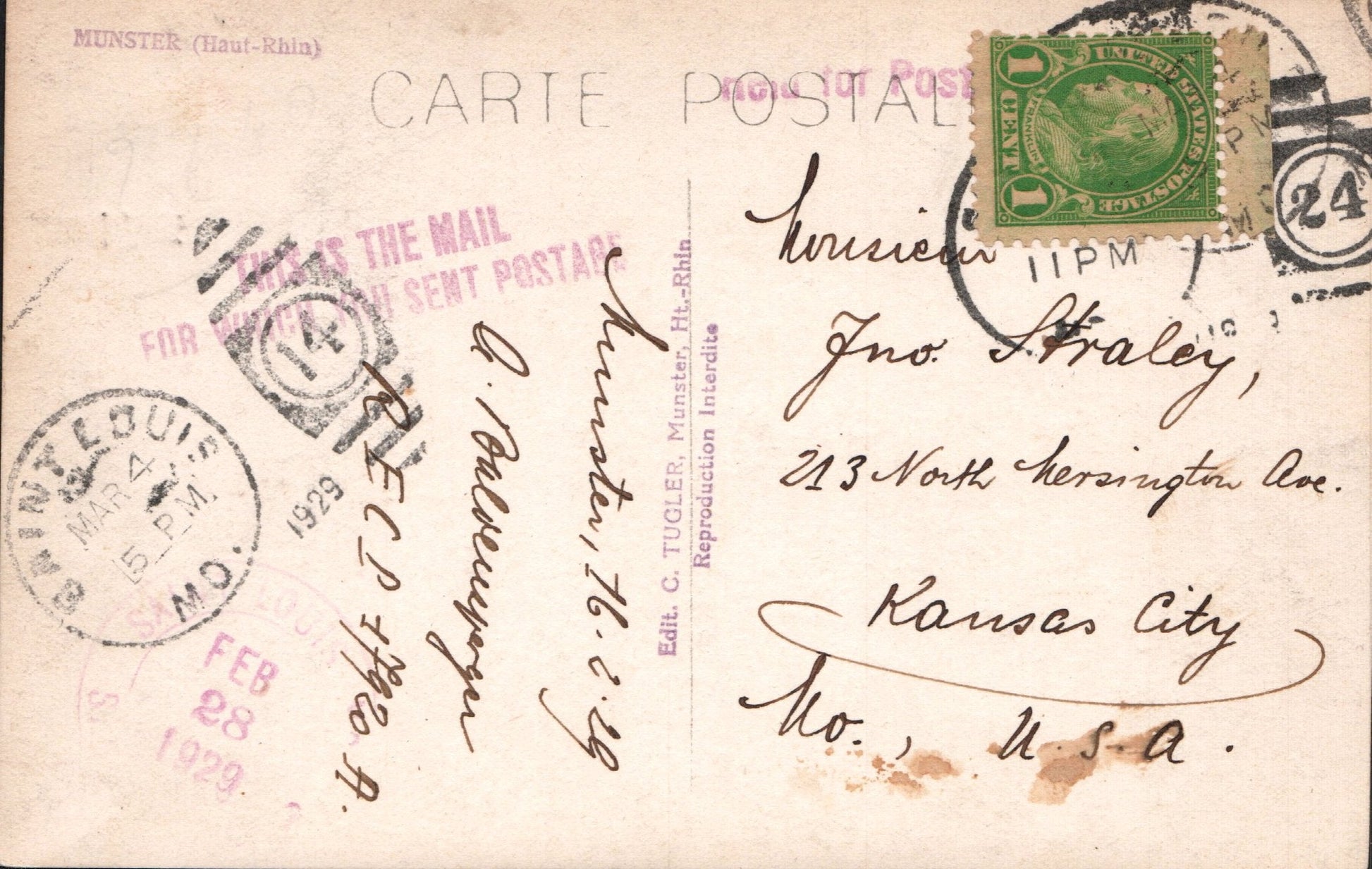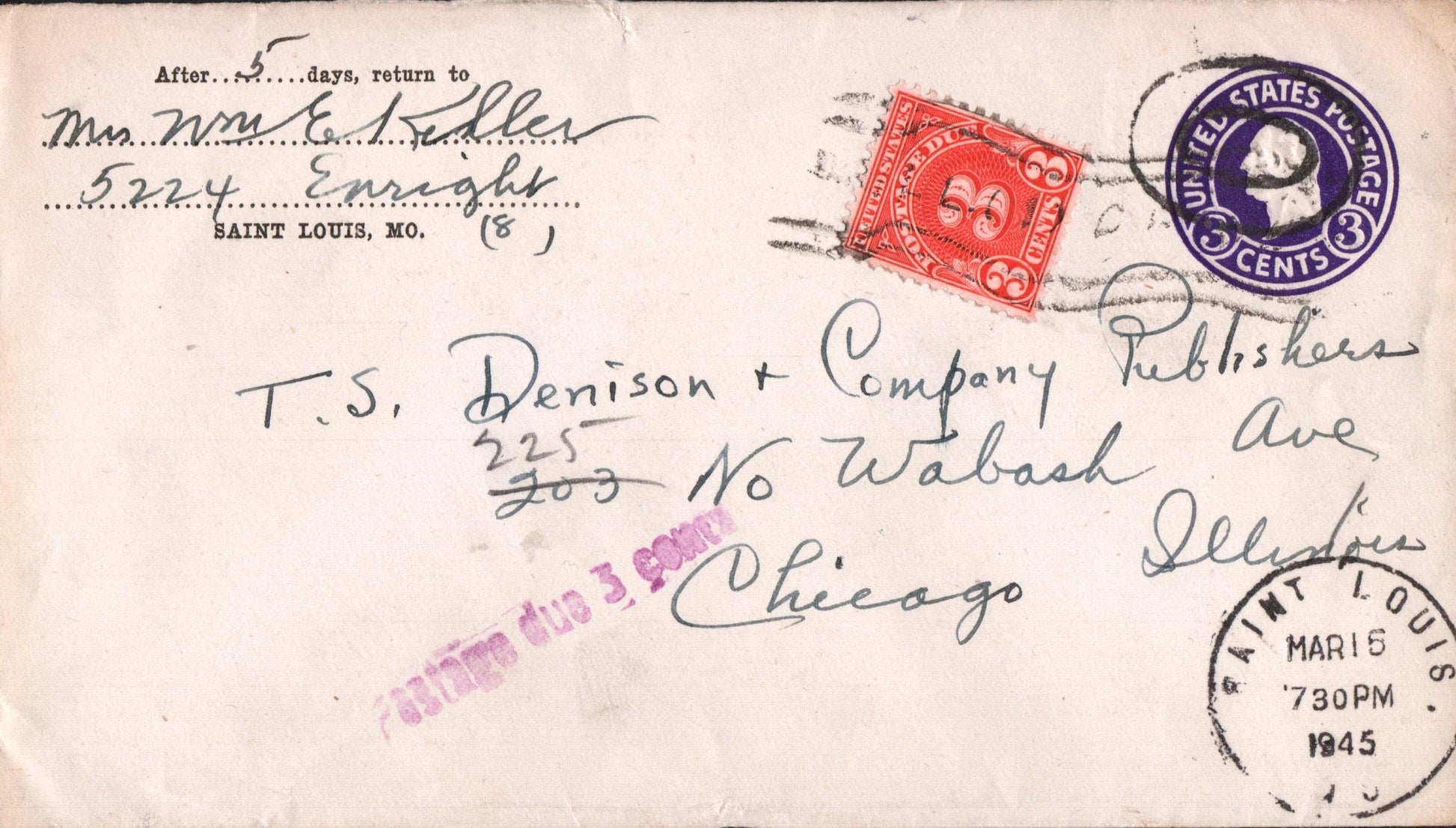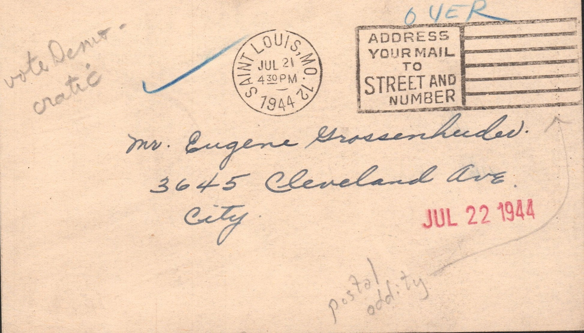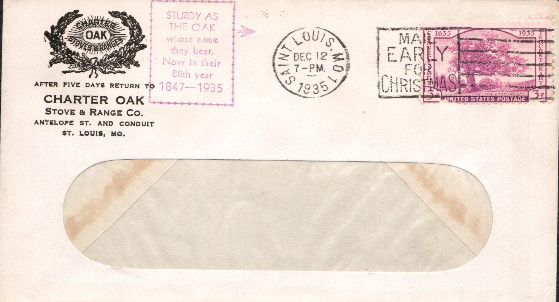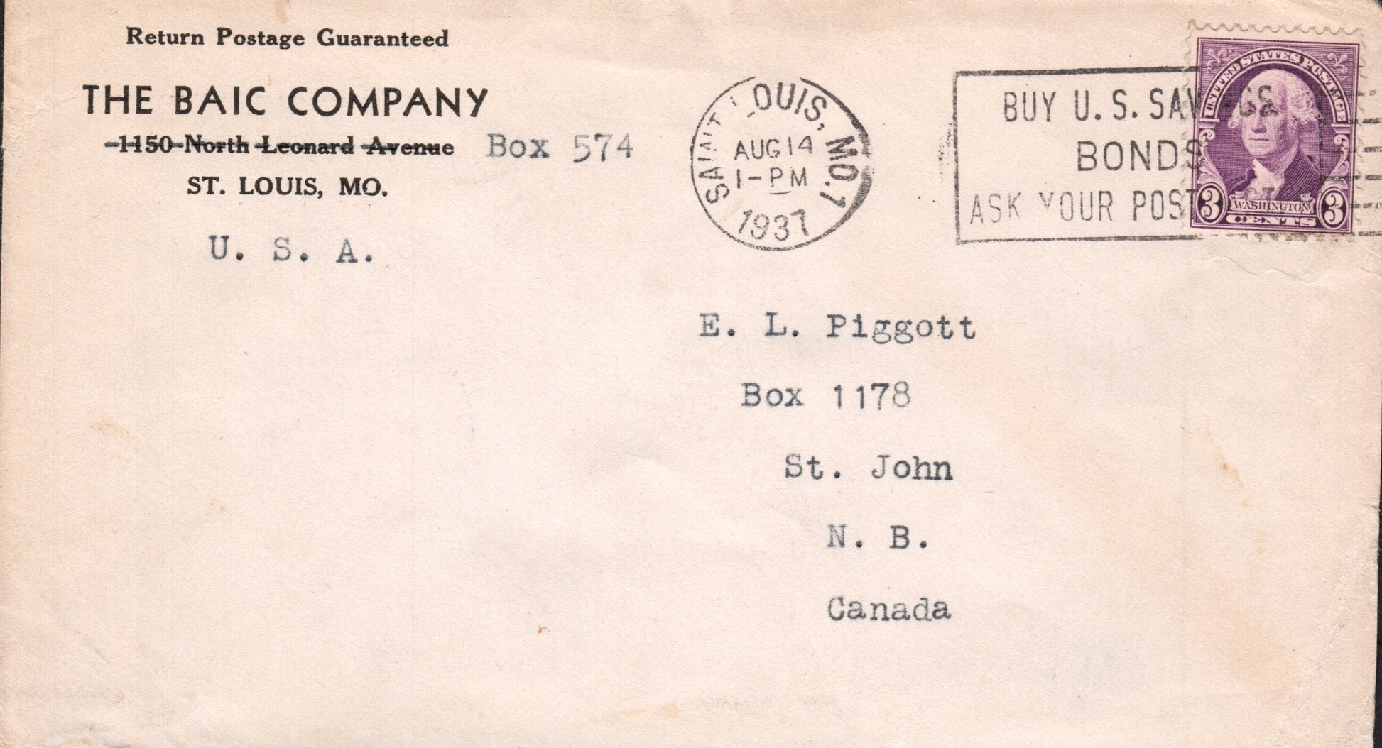 Central Sta. 1921 machine cancel on cover, ragged top into corner “St. Louis Club of Applied Psychology