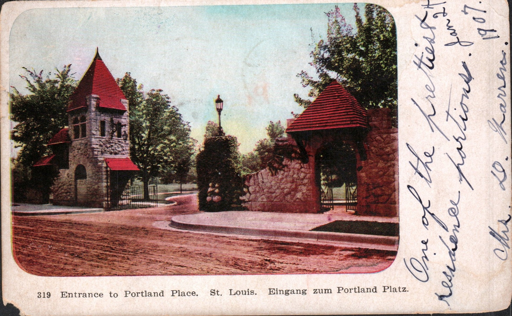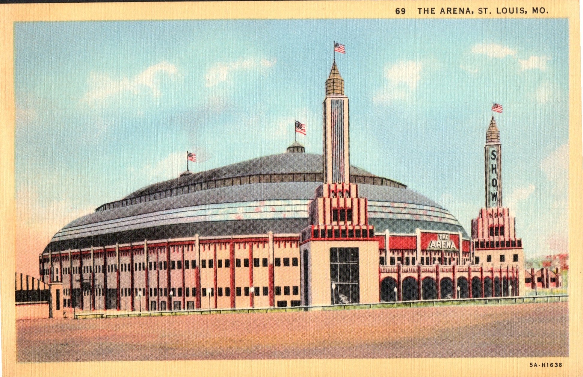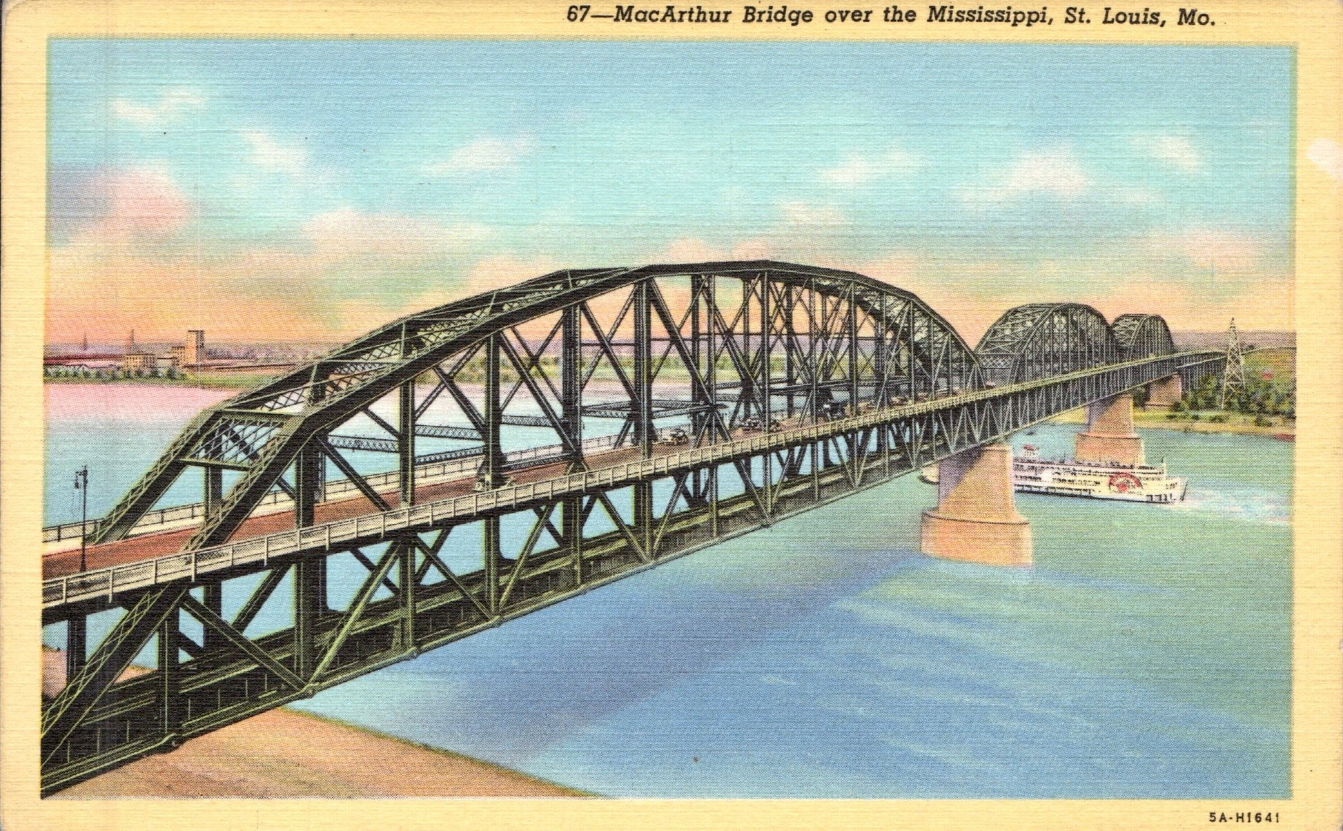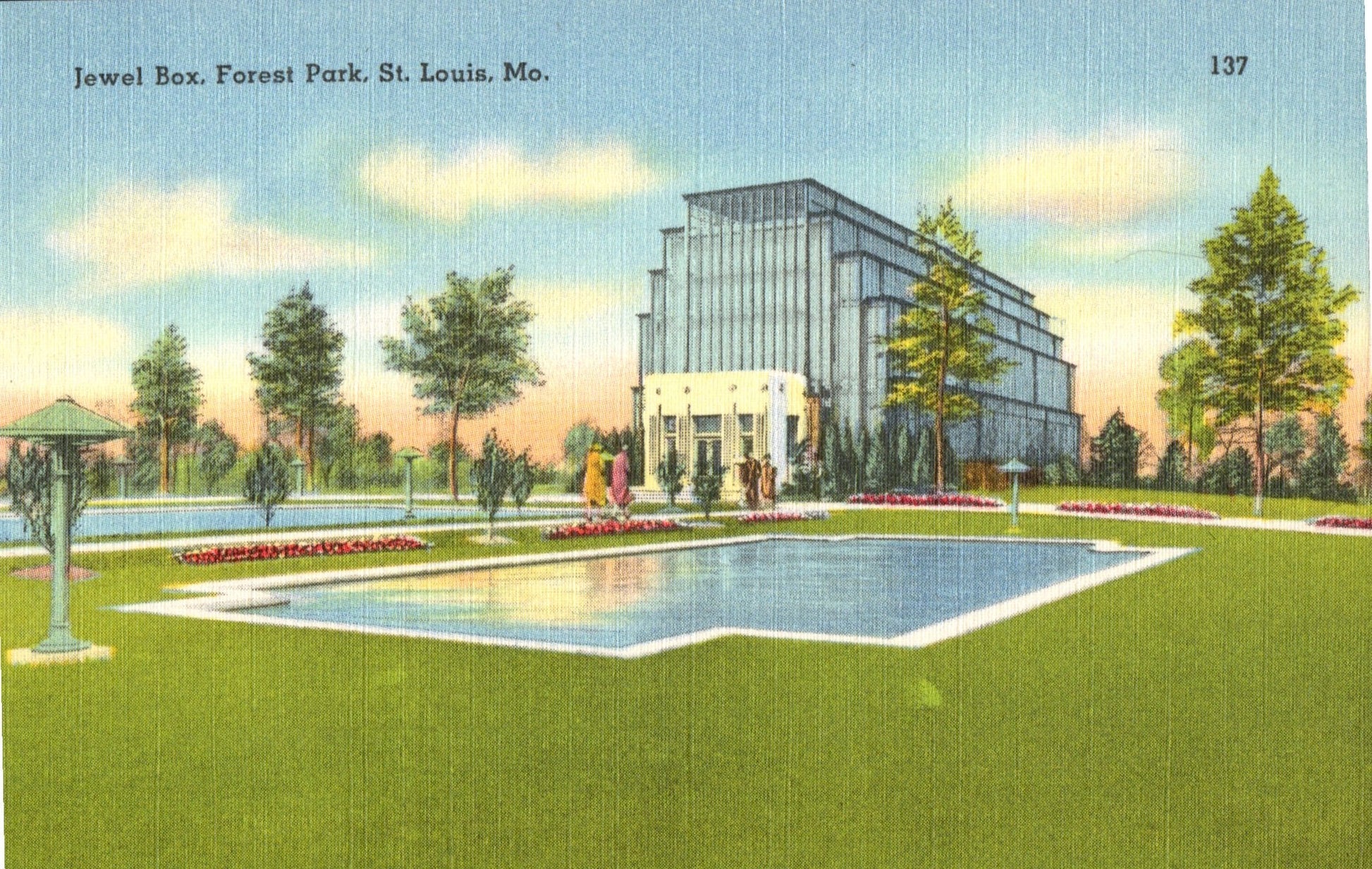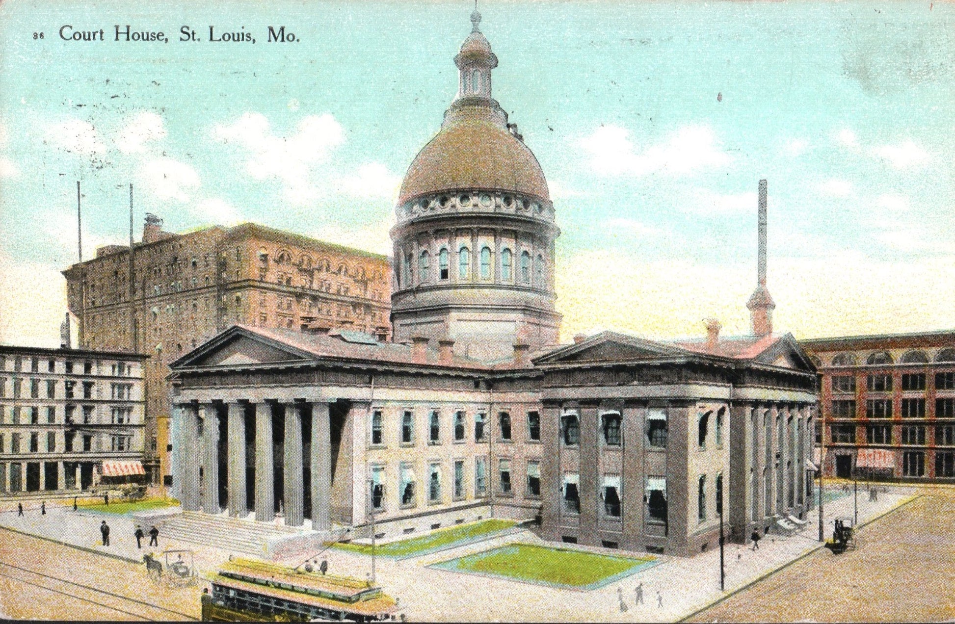 “Greetings from St. Louis” in large letters [linen]; Aerial view [ 2 views, one linen & one Continental]; “Looking N.E. from Old Water Tower”[c.1910]; Waterfront [c.1910]; Mississippi River ice jam [1907] Washington Ave. with many cars [1919]; Telephone Bldg. and Court House; Railway Exchange Building [linen]; Hotels: Chase-Park Plaza Hotel [2 chrome views]; Coronado Hotel [chrome]; Forest Park Hotel [1940s]; Hamilton Hotel Rooftop Garden [c.1910]; Hotel Jefferson [1909, horse-drawn]; New Hotel Jefferson [linen]; Mark Twain Hotel [linen]; Marquette Hotel [1919]; Hotel Melbourne [linen]; Hotel Statler [B&W on yellow]; Hotel/Motel Bel Air [2 chrome cards, one interior of dining room; Warwick Hotel [chrome]; King Bros. motel [chrome]; Hospitals: City Hospital [c.1910]; Barnes Hospital Group [linen]; Deaconess Hospital [2 views, one linen, one chrome]; Homer Phillips Hospital [real photo]; Shriners Hospital aerial view [chrome;] Union Station [7 views, c.1910 to modern]; Other: Anheuser-Busch plant, aerial view [chrome]; Airport terminal [chrome]; Post office [2 linen views]; Court House [3 views, one is 1918; City Hall [2 linen, one chrome]; Library [2 views, c.1910, linen]; YWCA, with two early automobiles; Moolah Temple [1930s] The Arena [2 views, two linen, one chrome]; Opera, interior view [linen]; Planetarium [Continental]; Kirkwood School [1916]; Marion Sims Medical College [1909, horse drawn, corner missing]; Lutheran Home for the Aged [chrome]; Washington Univ. [3 views, two 1930s, one linen]; St. Louis U. [linen]; 9 views of churches and religious buildings; The Arch [5 chrome views]; Jefferson Memorial [5 views]; bridges [4 views]; Passenger boats [2 views]; 54 parks and monuments.