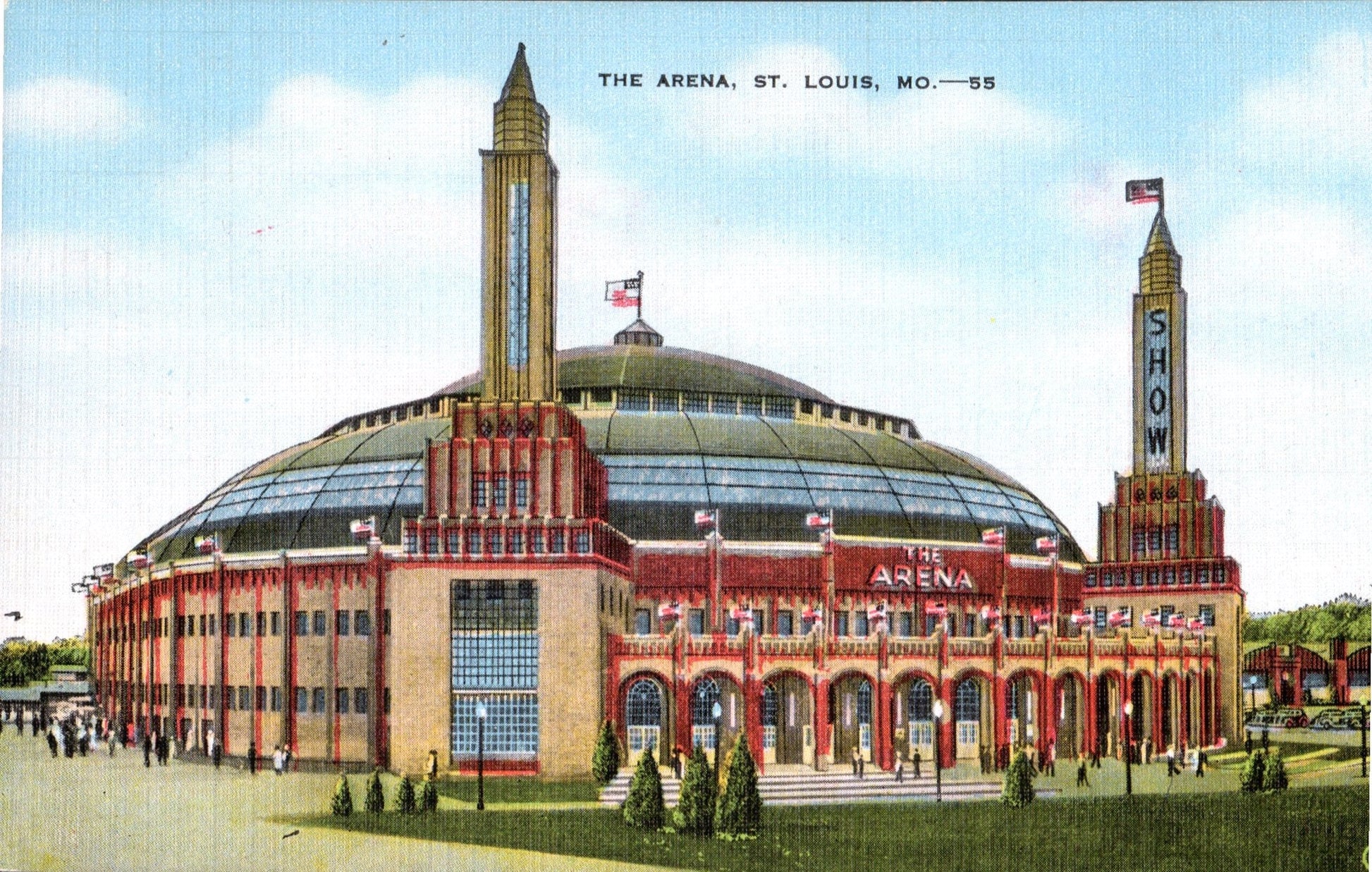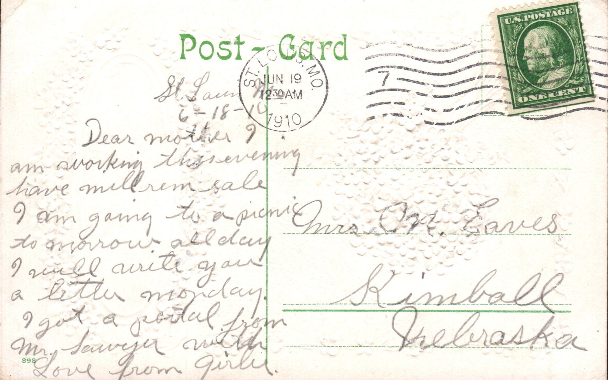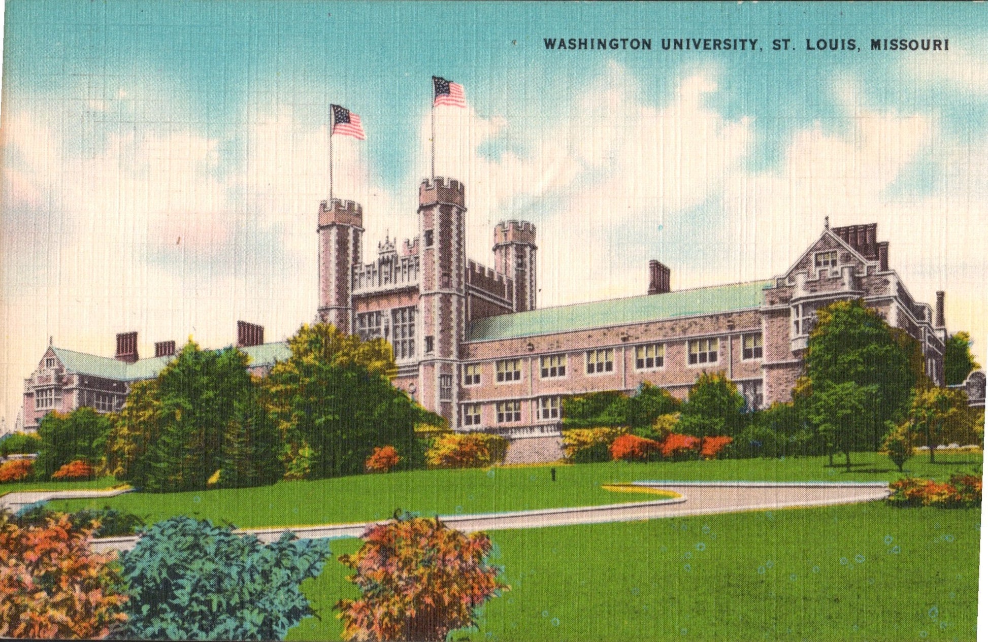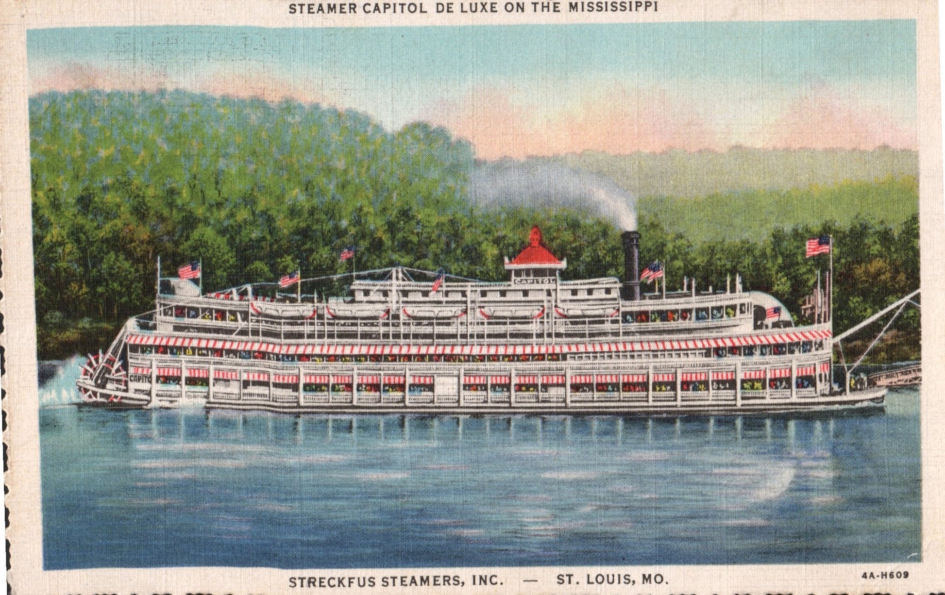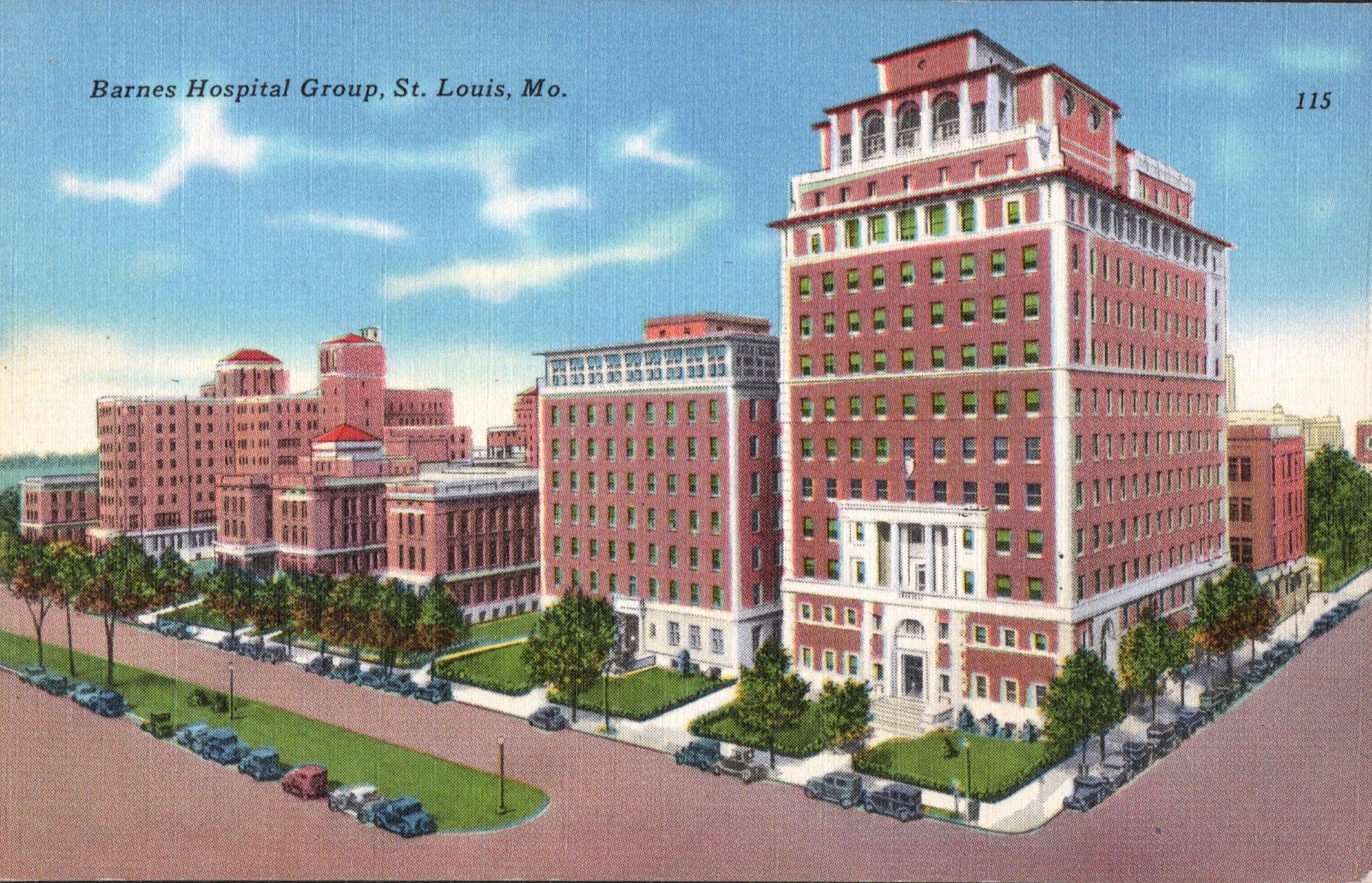 “Greetings from St. Louis” in large letters [linen]; Aerial view [ 2 views, one linen & one Continental]; “Looking N.E. from Old Water Tower”[c.1910]; Waterfront [c.1910]; Mississippi River ice jam [1907] Washington Ave. with many cars [1919]; Telephone Bldg. and Court House; Railway Exchange Building [linen]; Hotels: Chase-Park Plaza Hotel [2 chrome views]; Coronado Hotel [chrome]; Forest Park Hotel [1940s]; Hamilton Hotel Rooftop Garden [c.1910]; Hotel Jefferson [1909, horse-drawn]; New Hotel Jefferson [linen]; Mark Twain Hotel [linen]; Marquette Hotel [1919]; Hotel Melbourne [linen]; Hotel Statler [B&W on yellow]; Hotel/Motel Bel Air [2 chrome cards, one interior of dining room; Warwick Hotel [chrome]; King Bros. motel [chrome]; Hospitals: City Hospital [c.1910]; Barnes Hospital Group [linen]; Deaconess Hospital [2 views, one linen, one chrome]; Homer Phillips Hospital [real photo]; Shriners Hospital aerial view [chrome;] Union Station [7 views, c.1910 to modern]; Other: Anheuser-Busch plant, aerial view [chrome]; Airport terminal [chrome]; Post office [2 linen views]; Court House [3 views, one is 1918; City Hall [2 linen, one chrome]; Library [2 views, c.1910, linen]; YWCA, with two early automobiles; Moolah Temple [1930s] The Arena [2 views, two linen, one chrome]; Opera, interior view [linen]; Planetarium [Continental]; Kirkwood School [1916]; Marion Sims Medical College [1909, horse drawn, corner missing]; Lutheran Home for the Aged [chrome]; Washington Univ. [3 views, two 1930s, one linen]; St. Louis U. [linen]; 9 views of churches and religious buildings; The Arch [5 chrome views]; Jefferson Memorial [5 views]; bridges [4 views]; Passenger boats [2 views]; 54 parks and monuments.