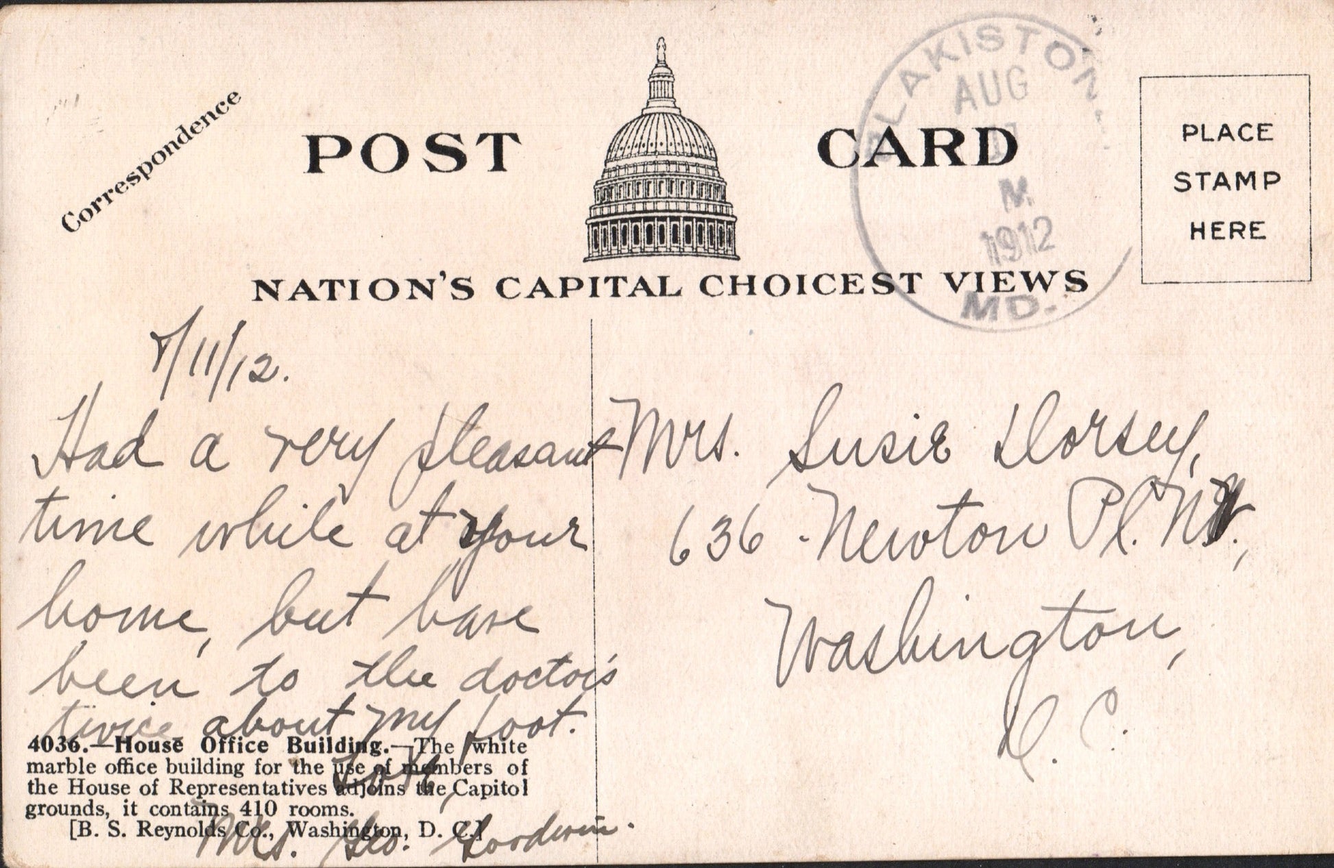 Baden (1893-1942) Doane? on post card, also Charlotte Hall Rec’d