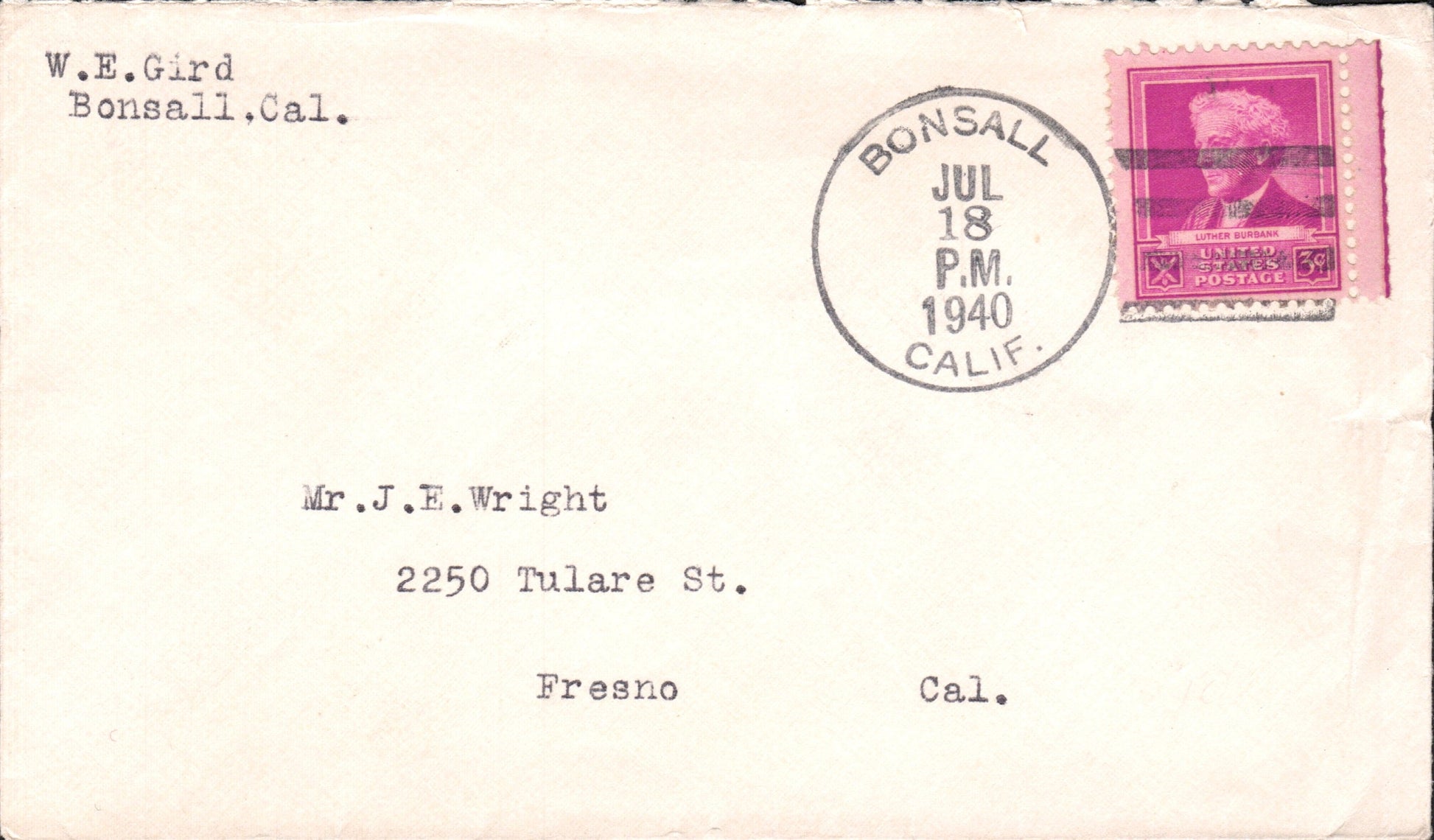 Bonsall 1940 4-bar on cover