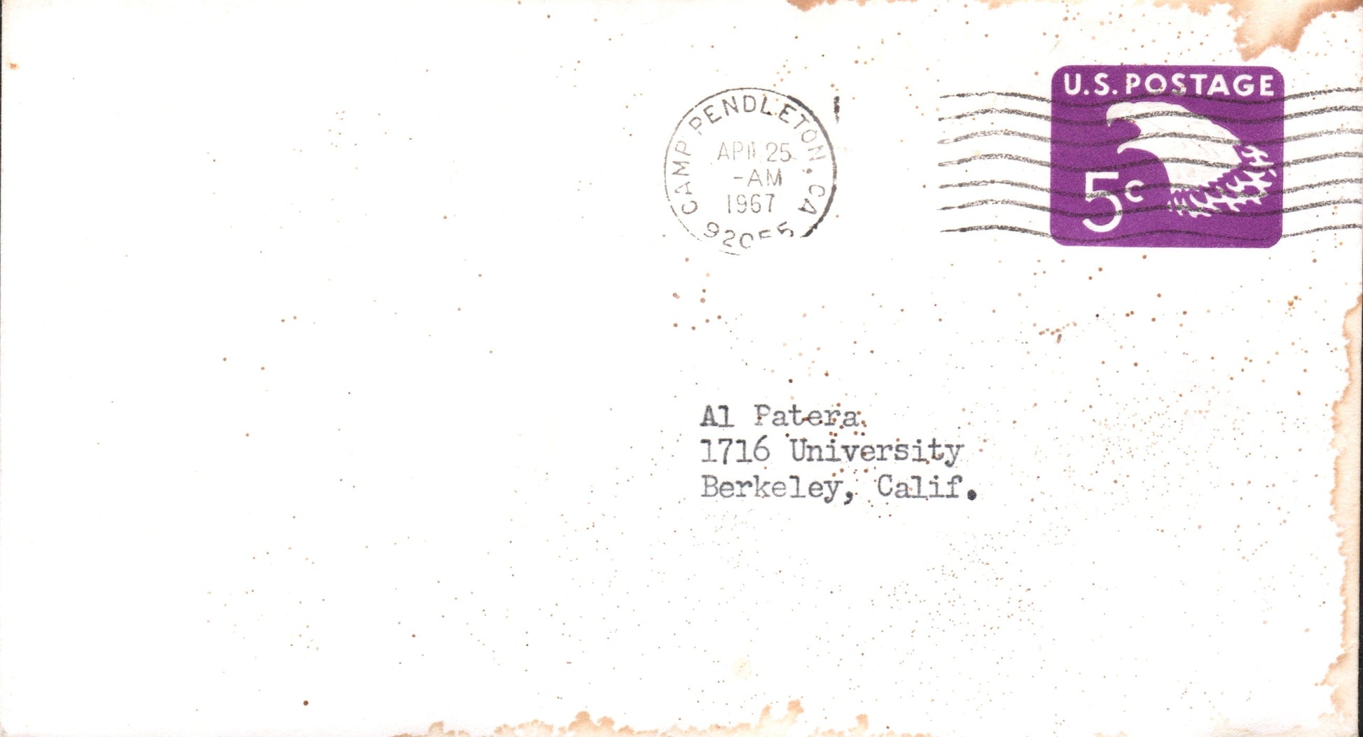 Camp Pendleton Bx (Oceanside) 1967 machine cancel on cover