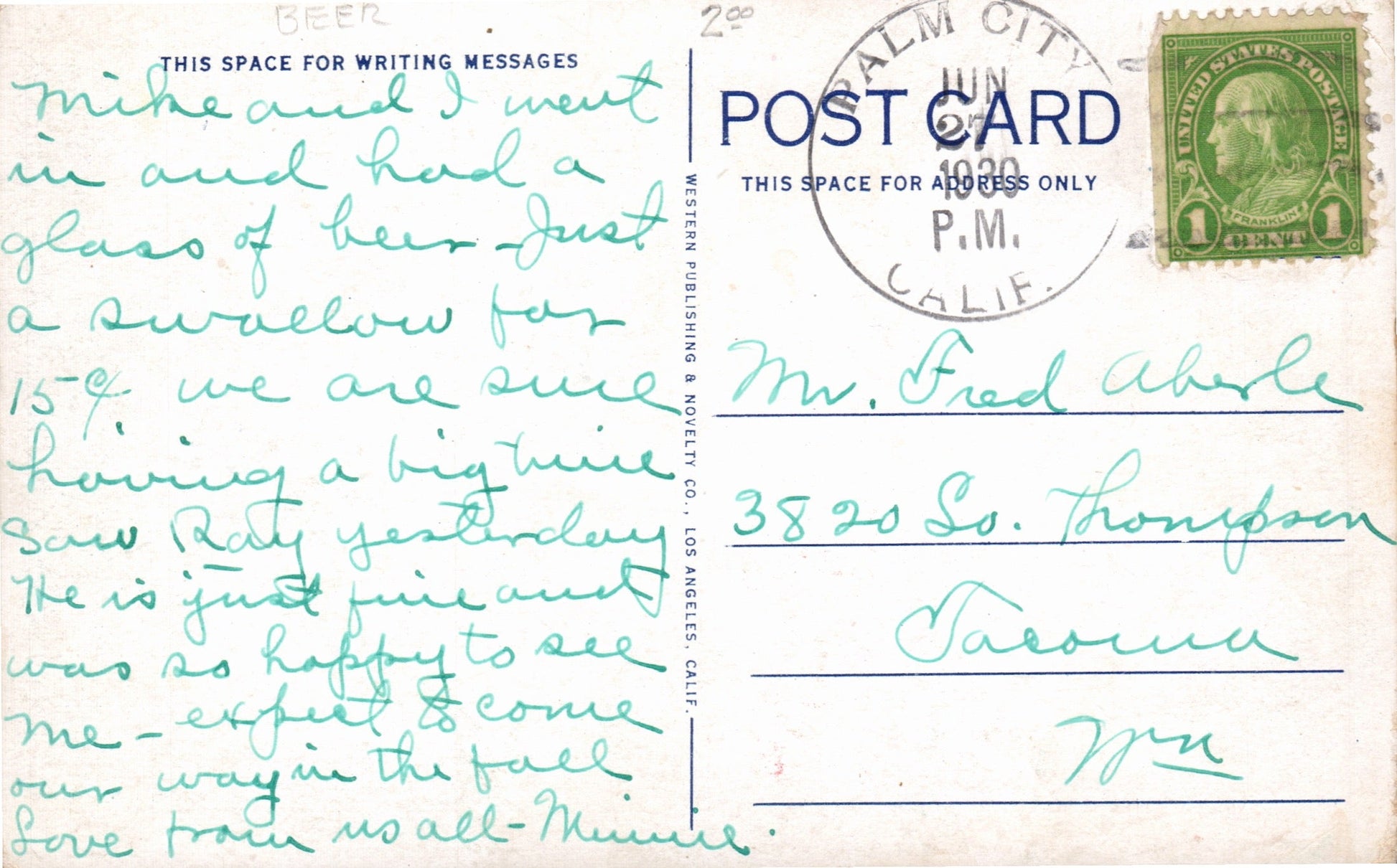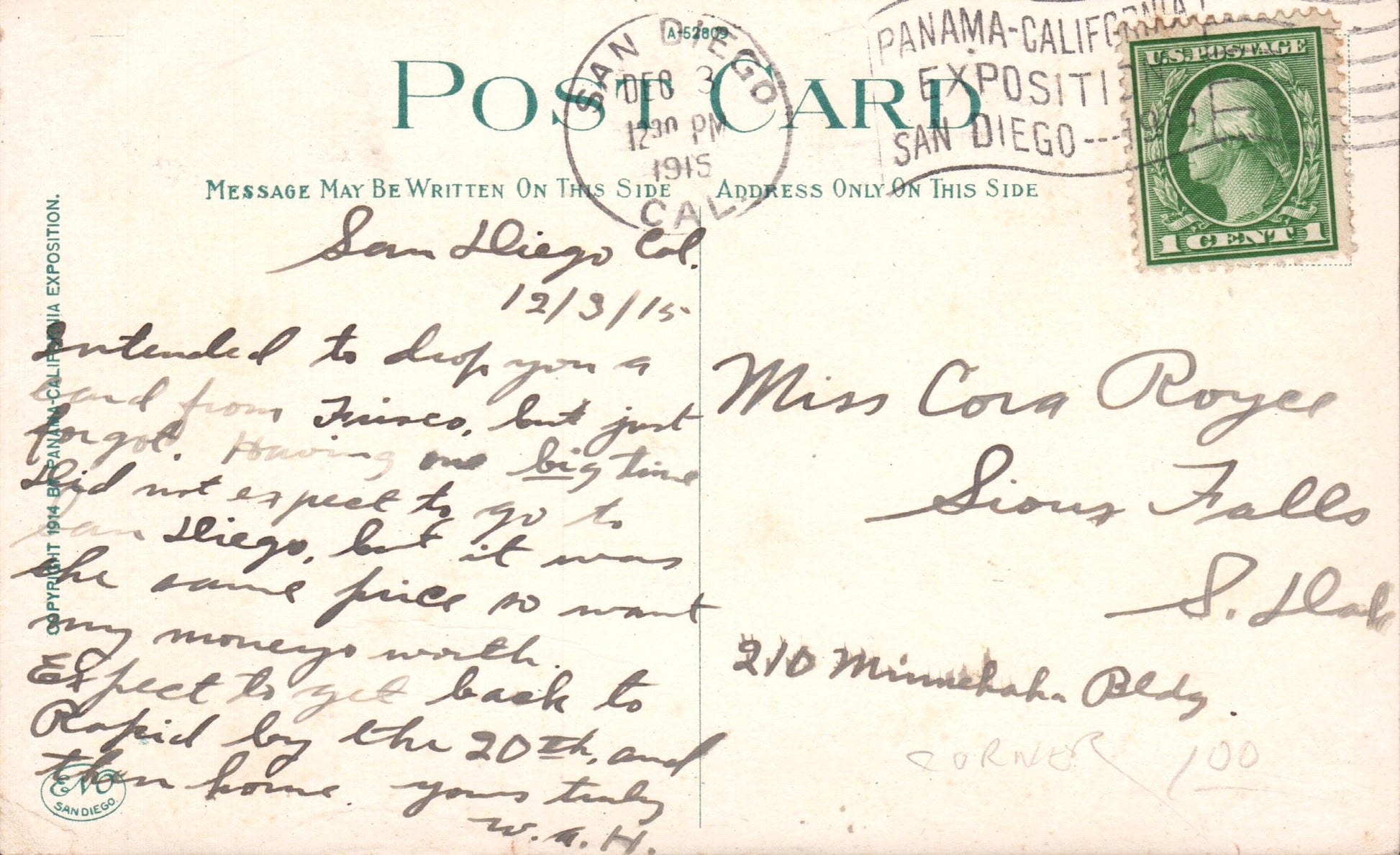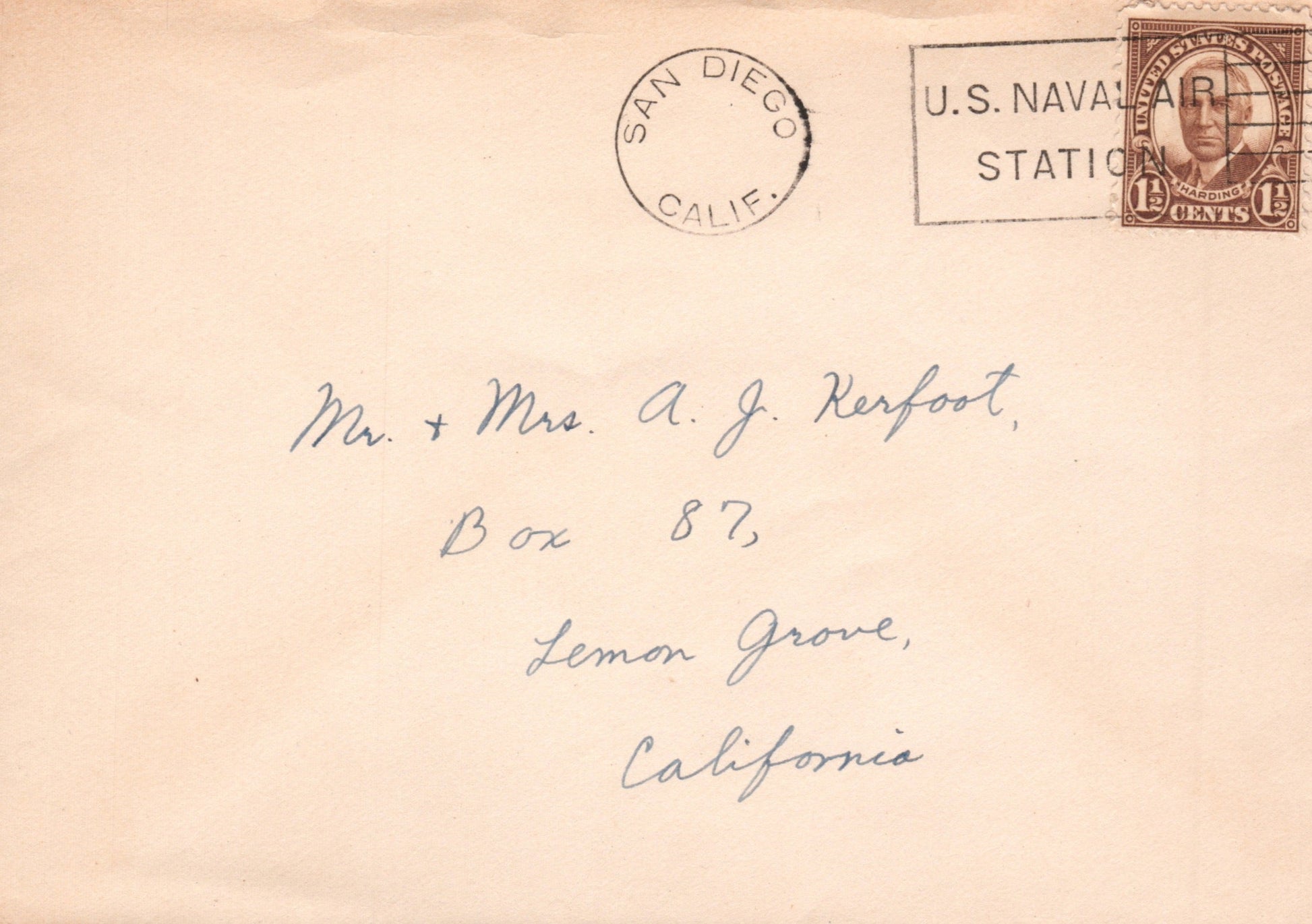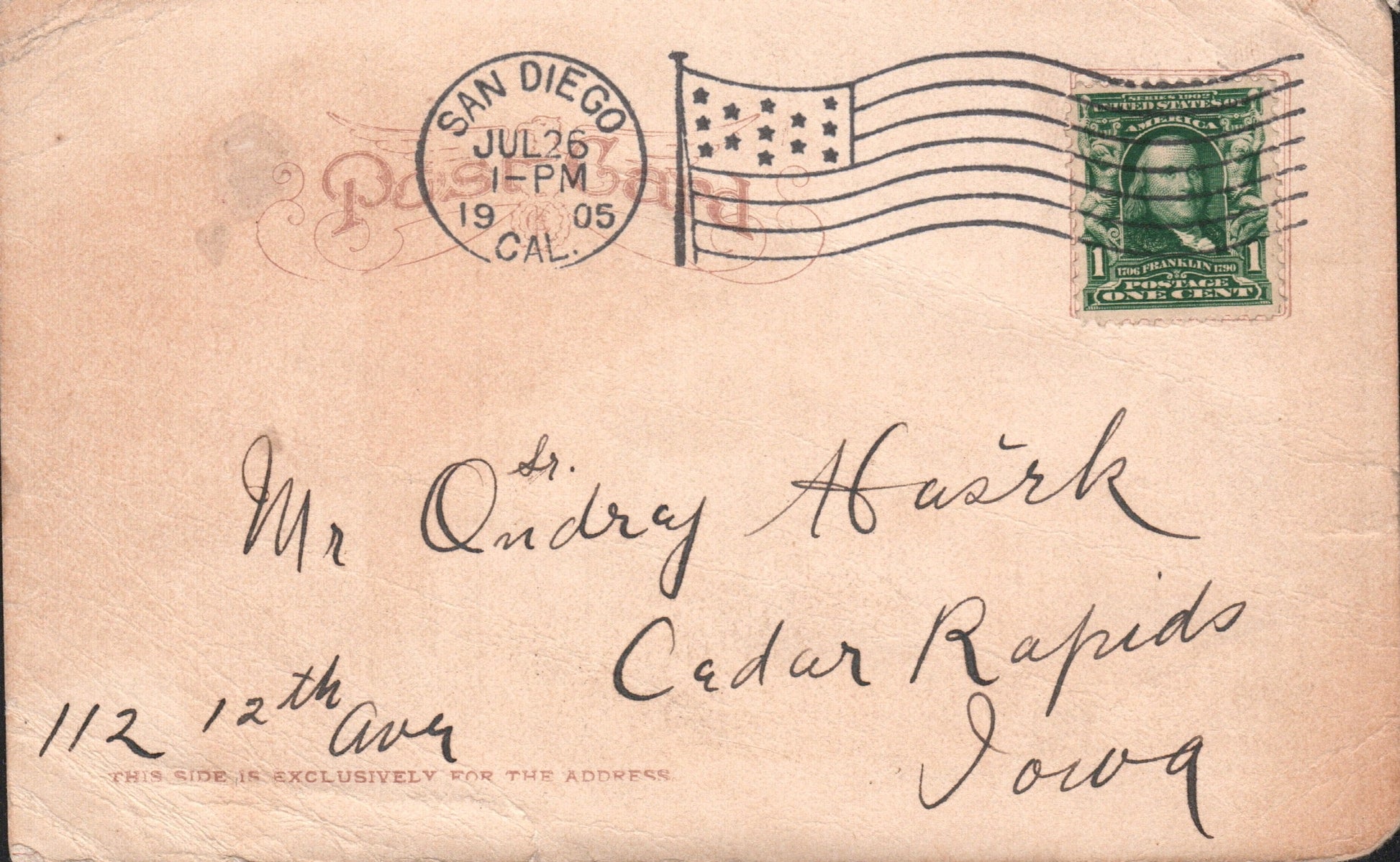 Ocean Beach Sta. (San Diego) 1930 date-out duplex on post card