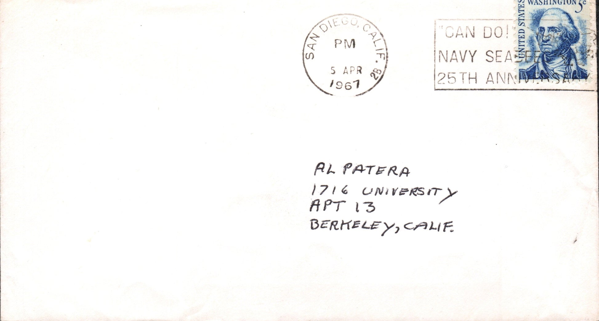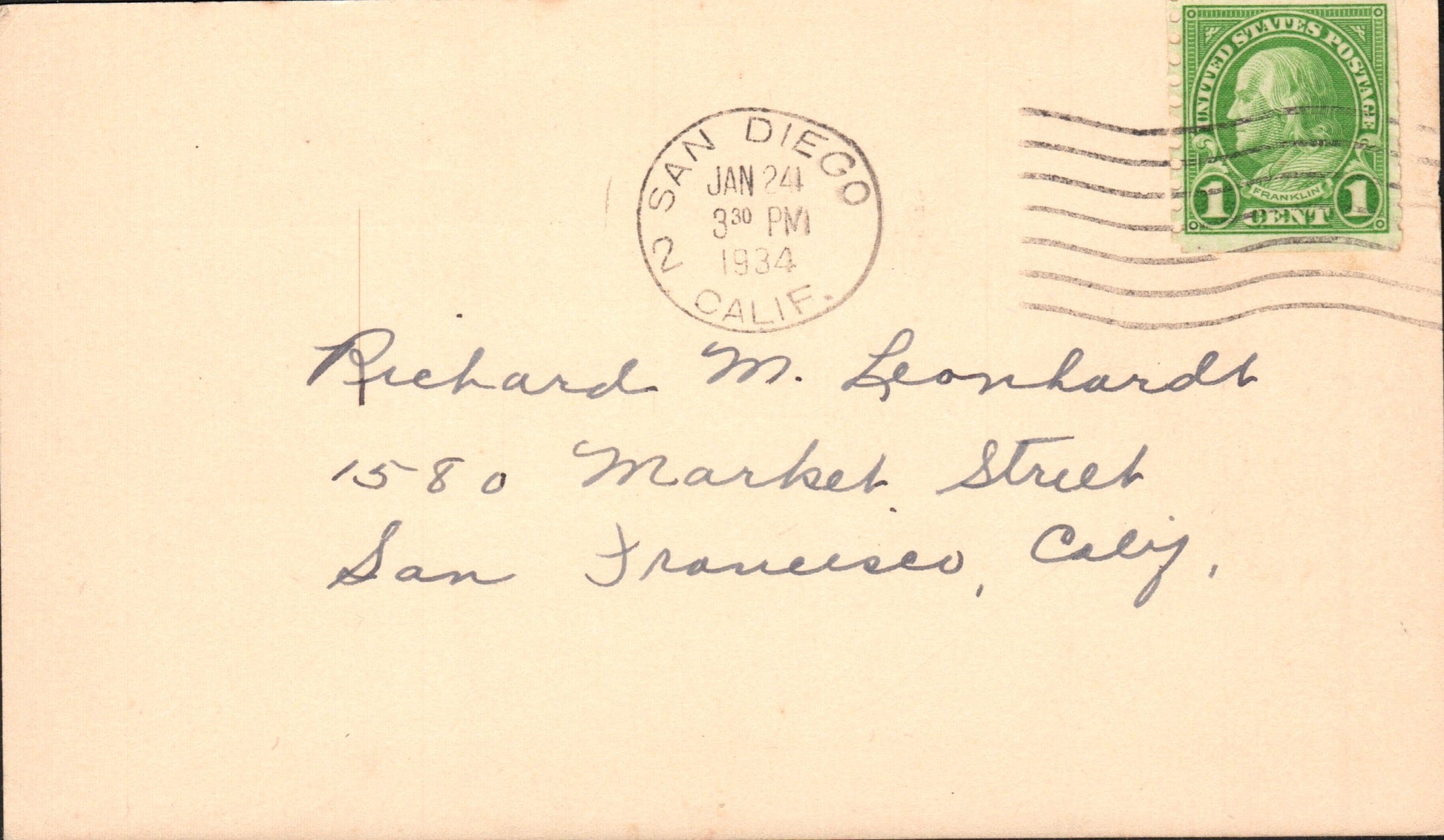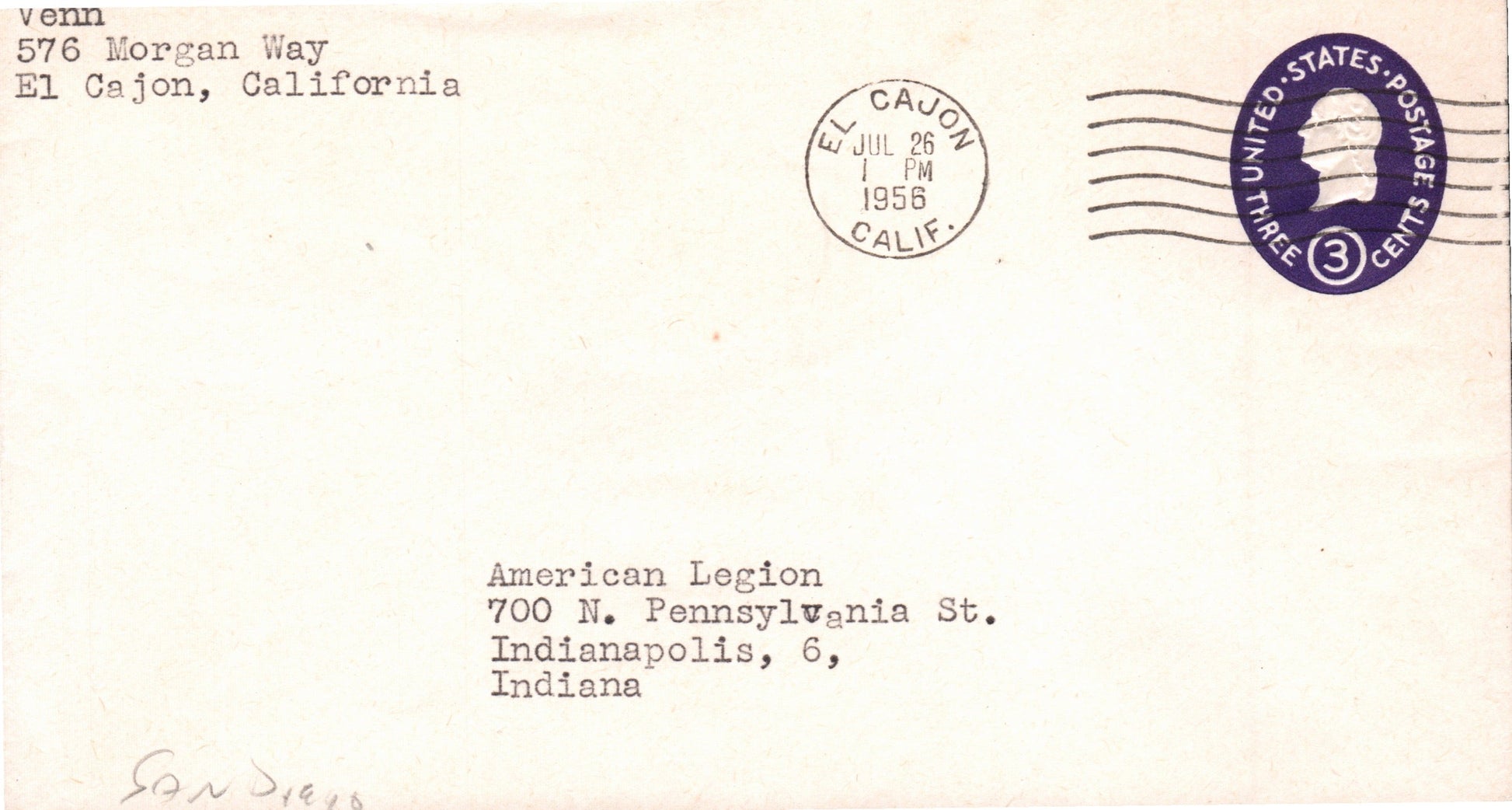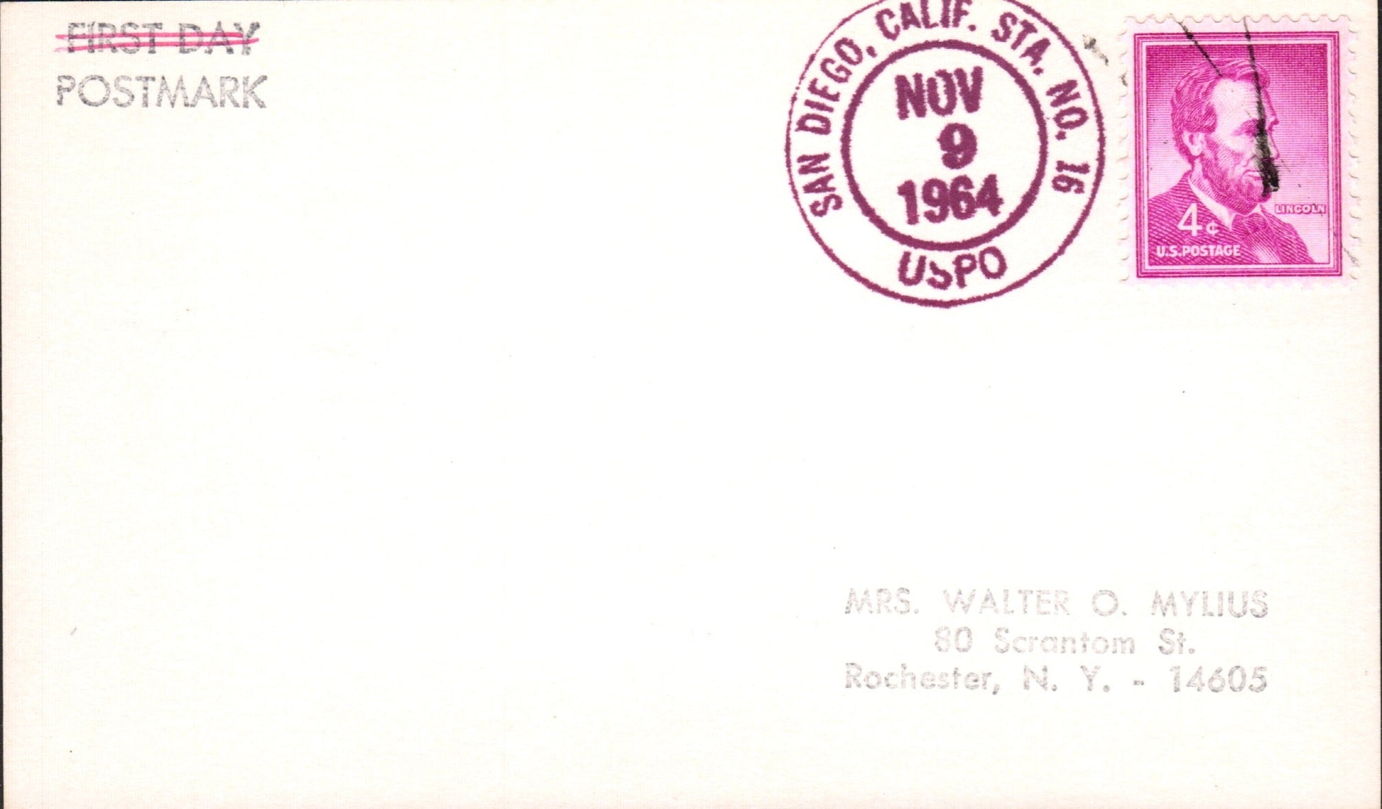 San Diego Sta. No. 16 1964 round dater on 3x5 card