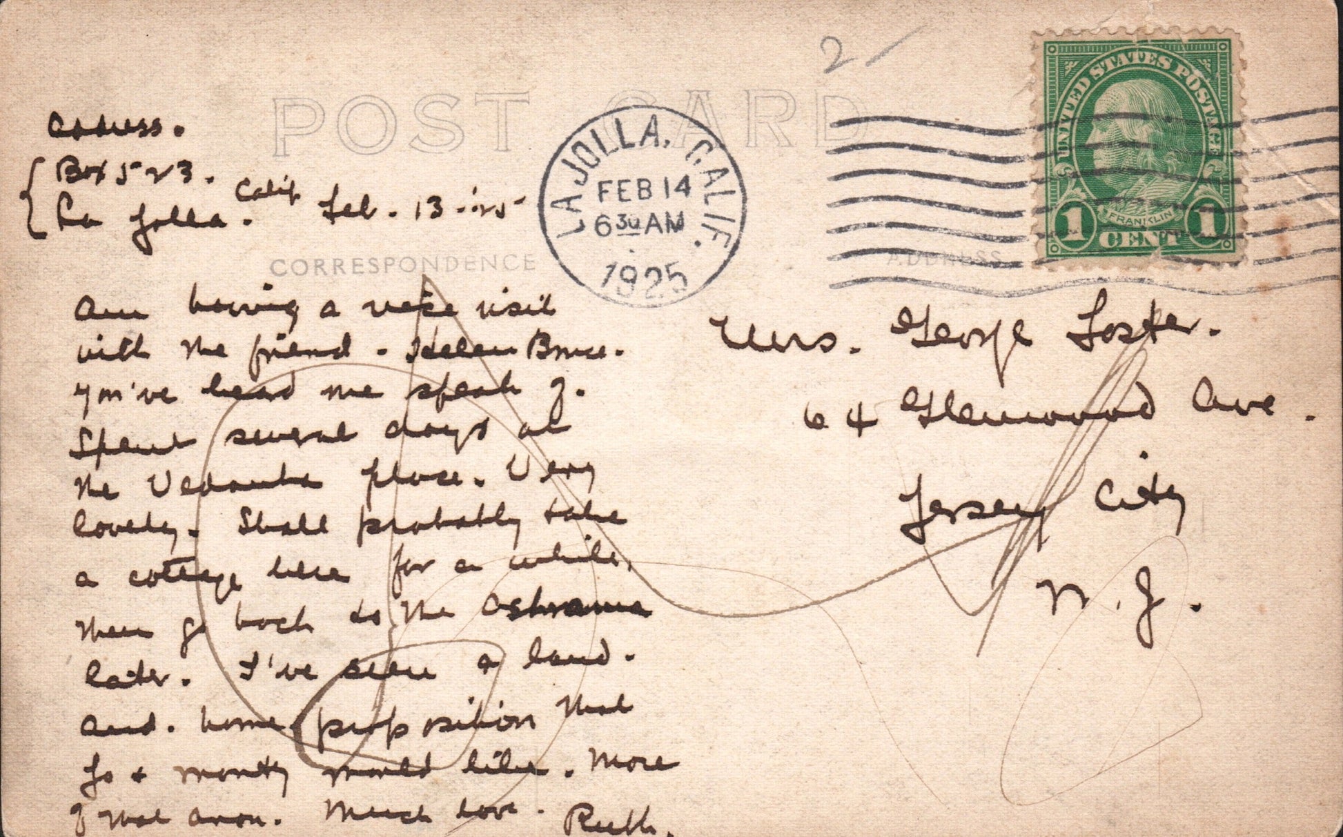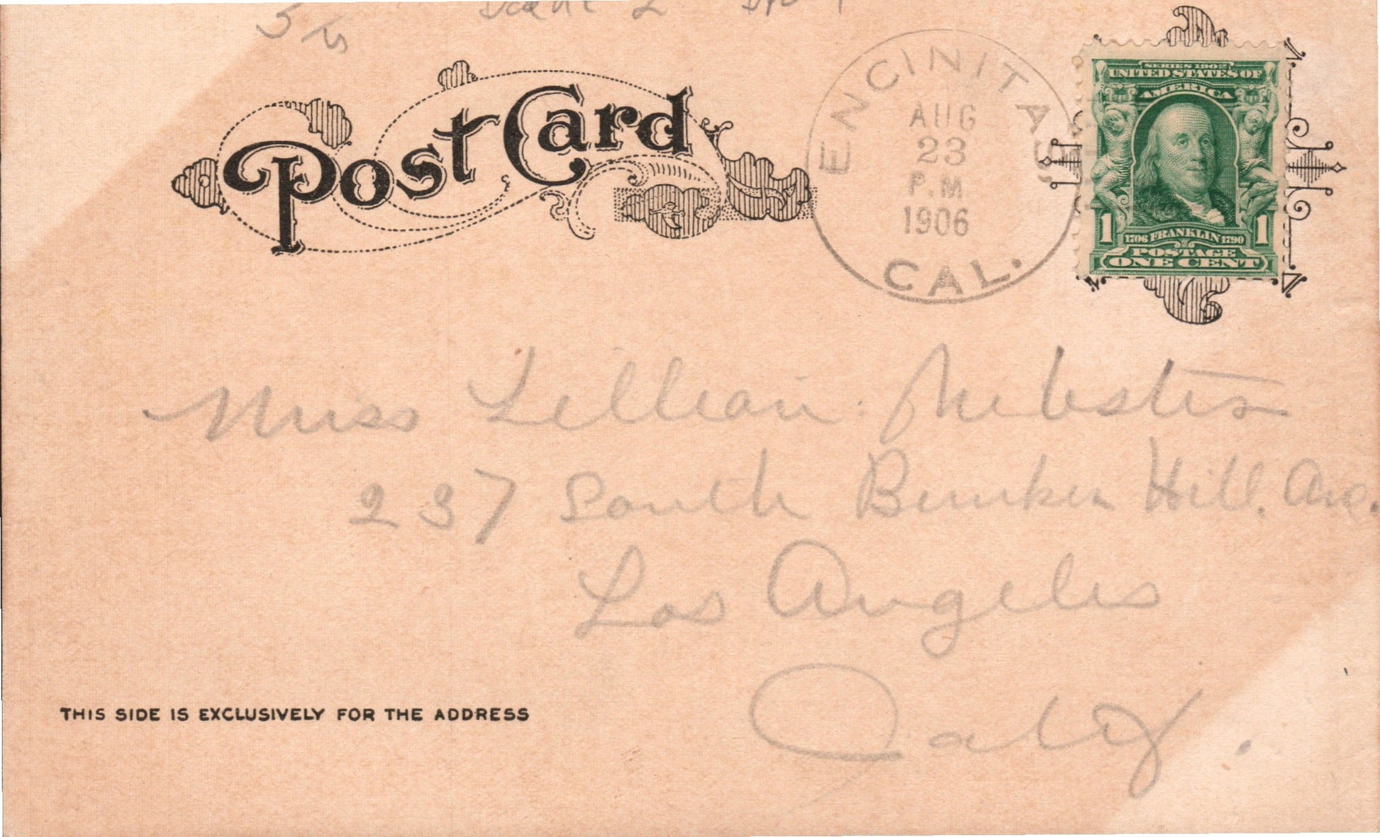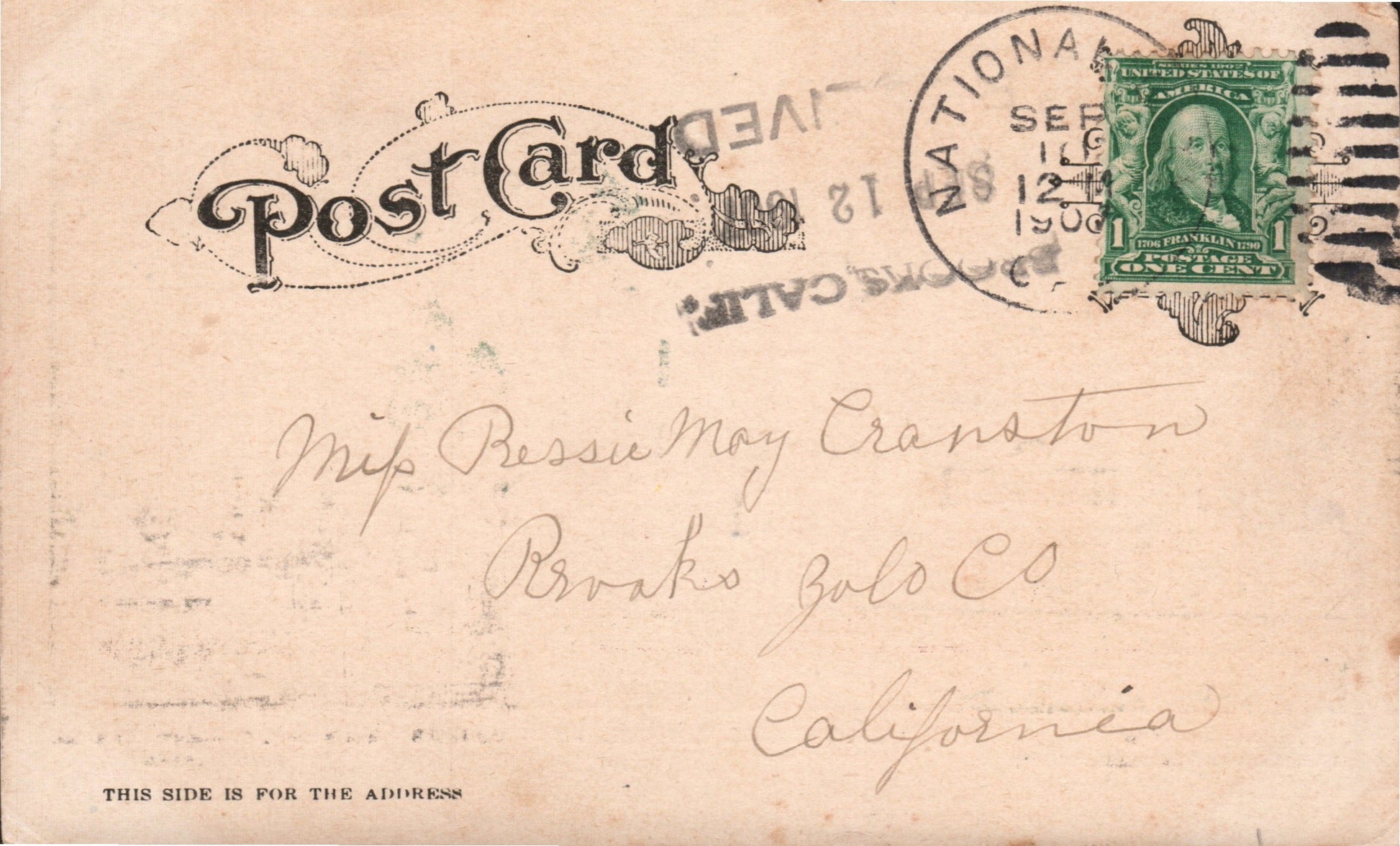 National City 1907 duplex on post card, also Brooks “Received”