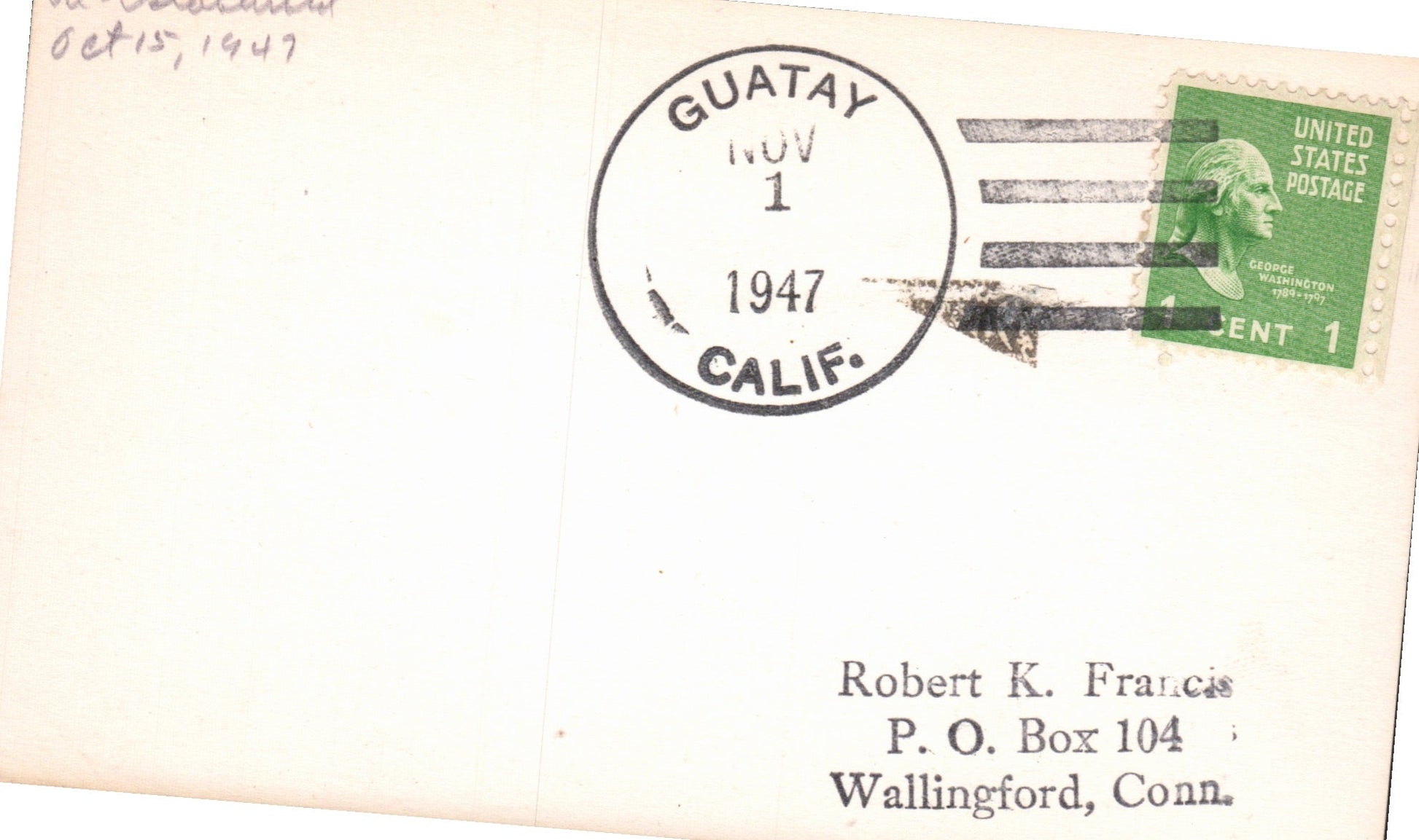Guatay 1947 4-bar on 3x5 card