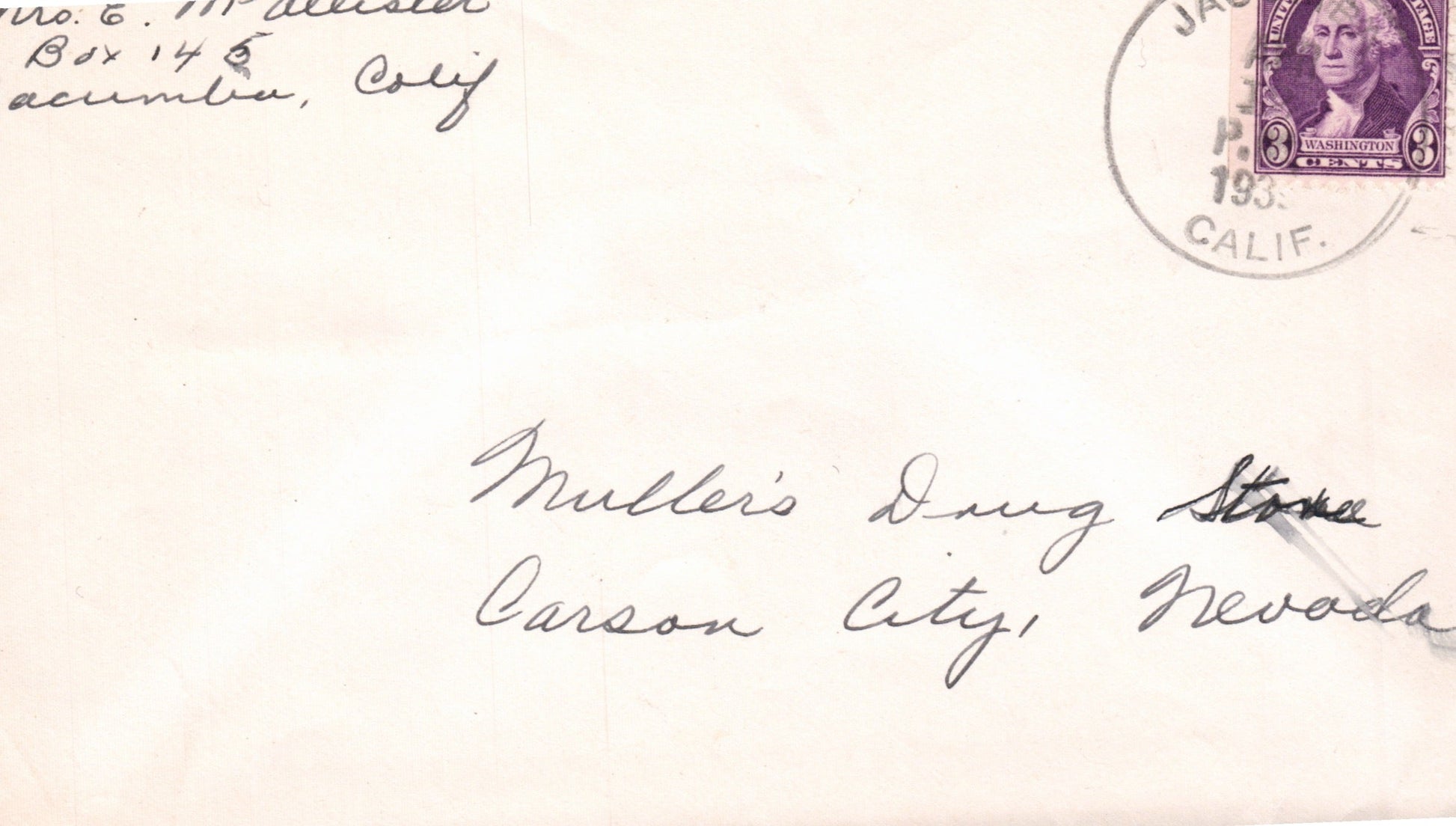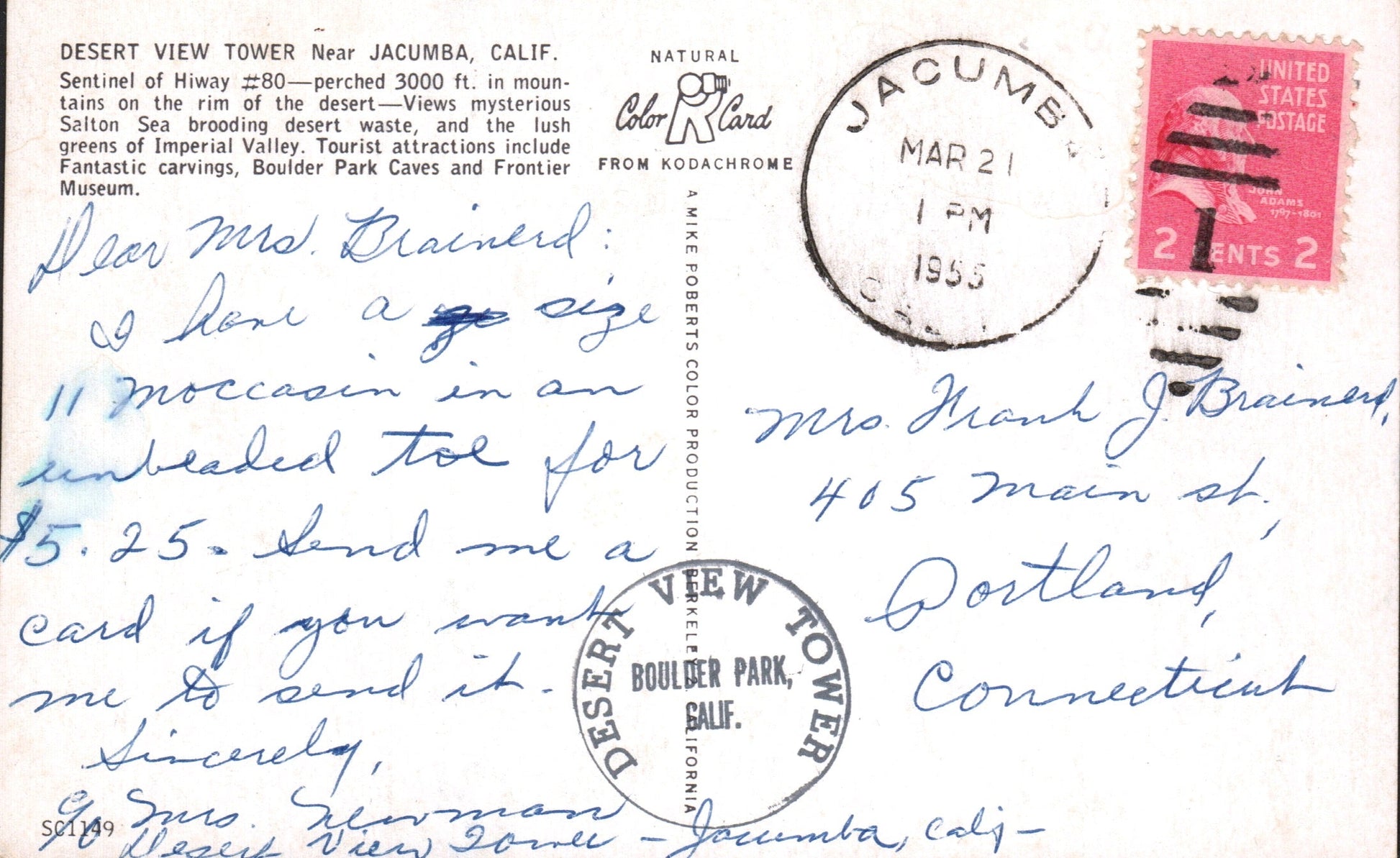 Jacumba 1933? 4-bar on cover; 1955 duplex on post card, also “Desert View Tower” mark