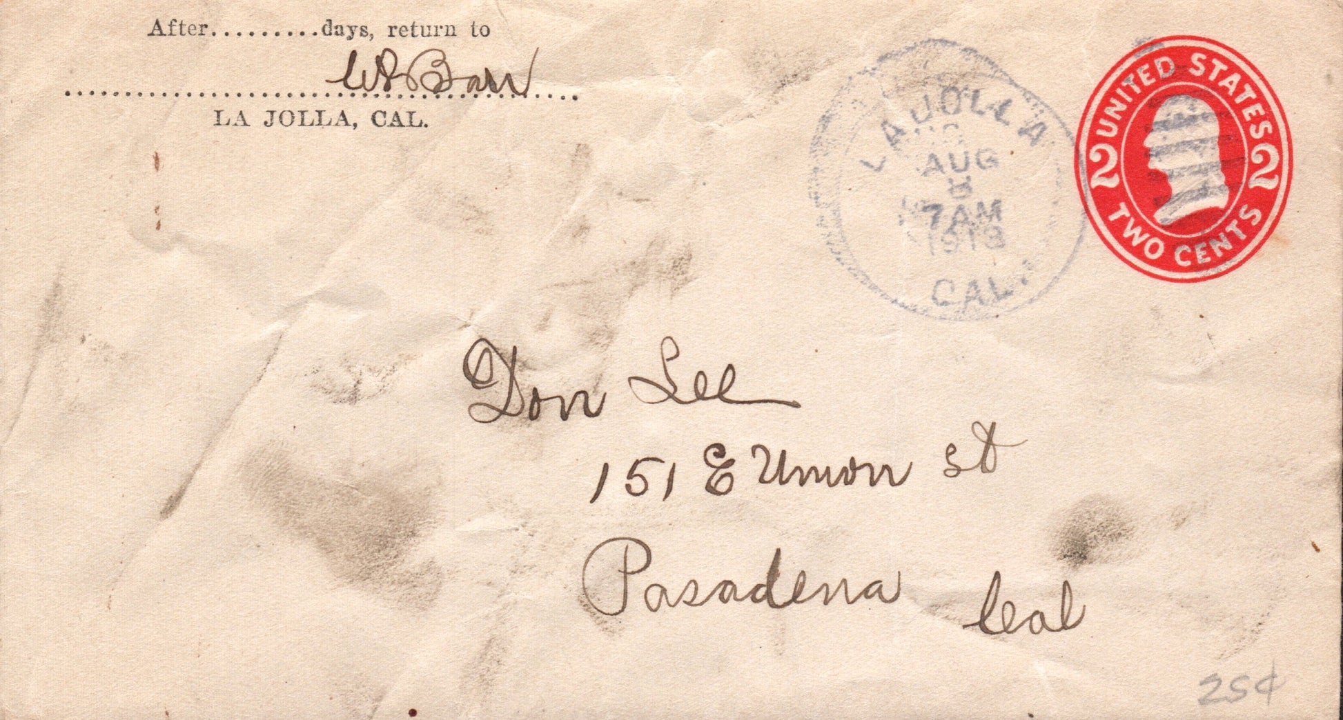 La Jolla 1903 duplex on cover; 1913 duplex on rumpled cover; 1925 machine cancel on post card; 1970 machine cancel on cover