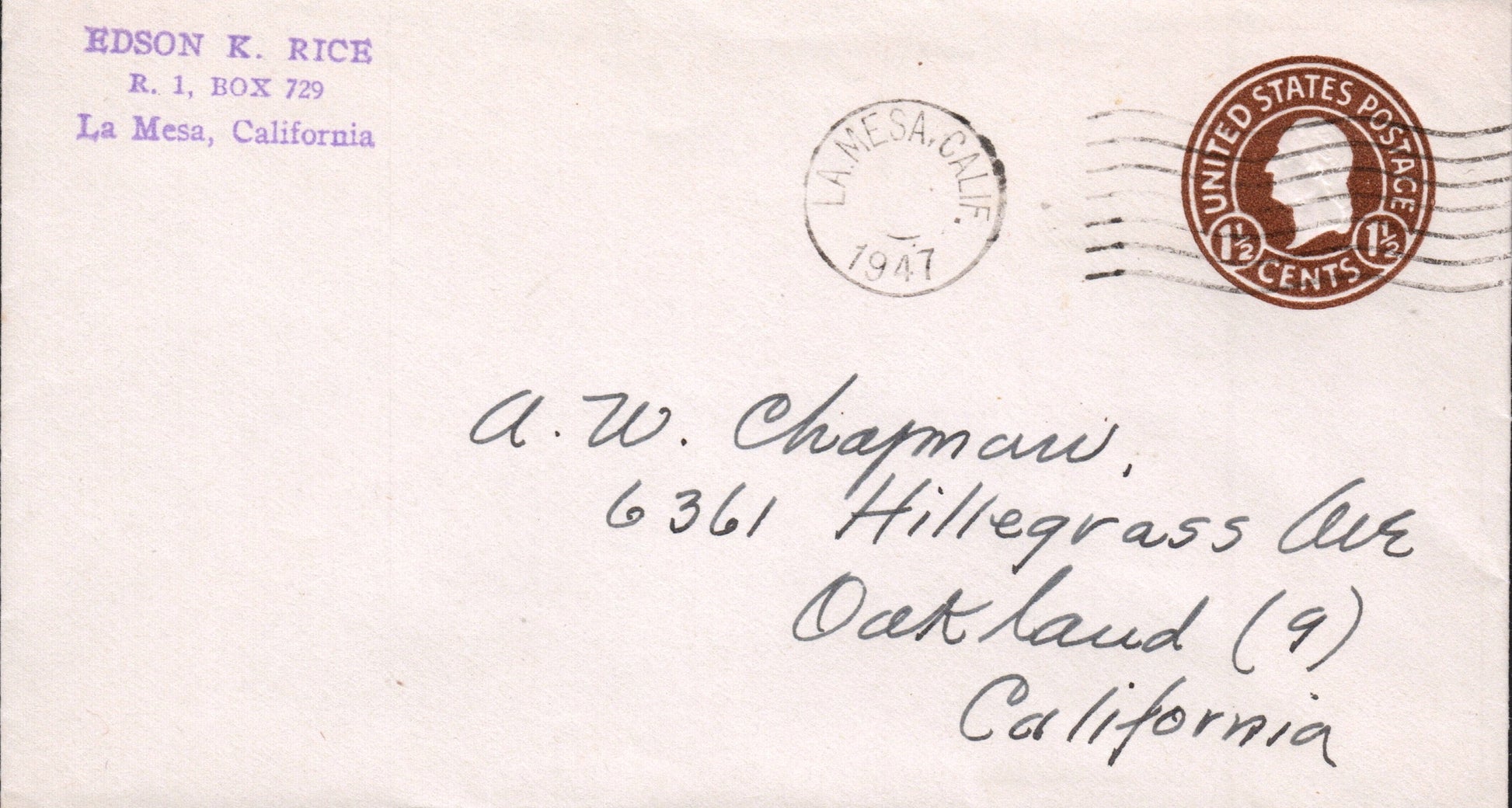 La Mesa 1947 machine cancel on cover; 1966 machine cancel on cover