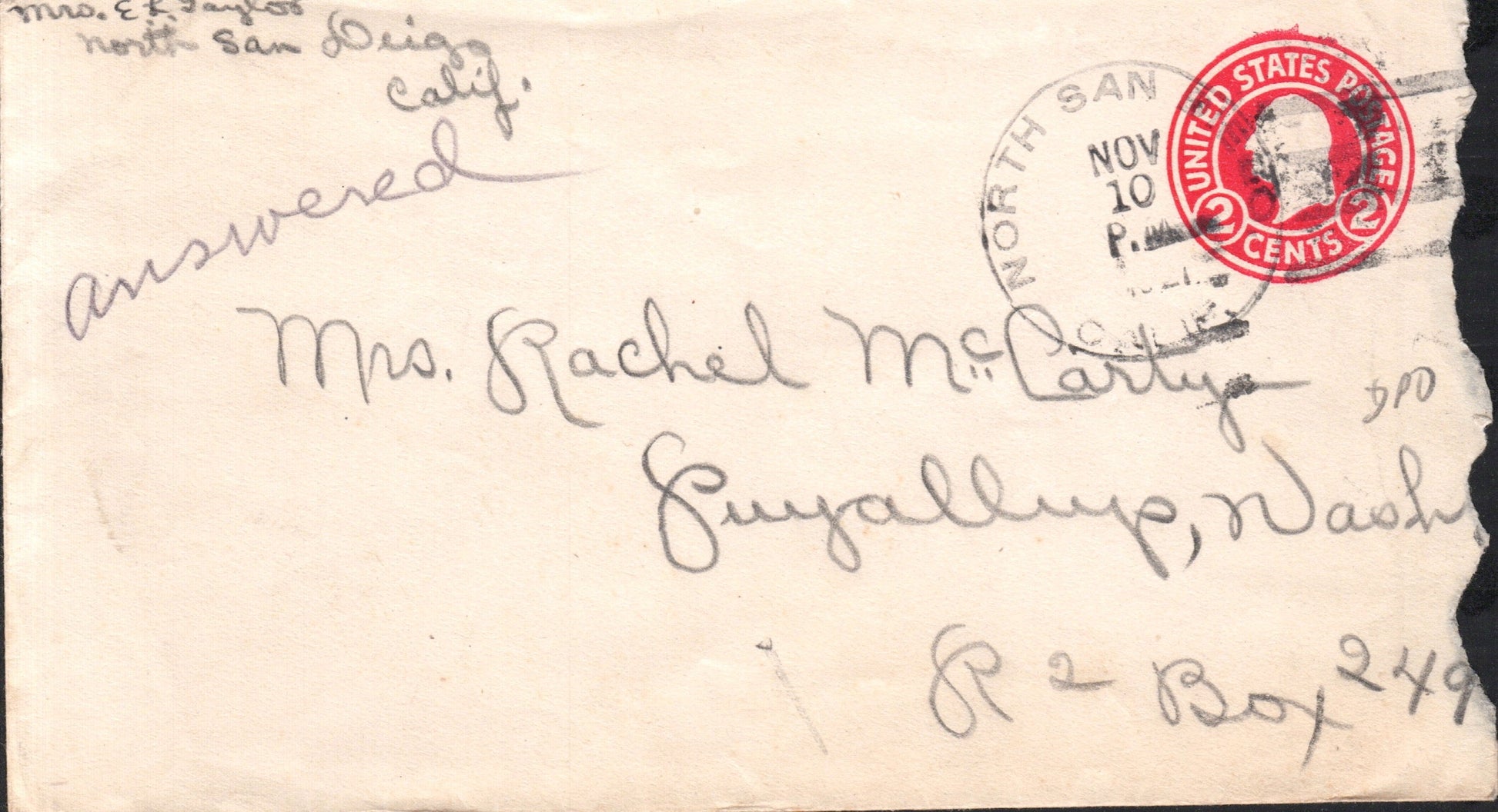 San Diego Sta. B 1920? date-out duplex on post card; 1936 machine cancel on cover
