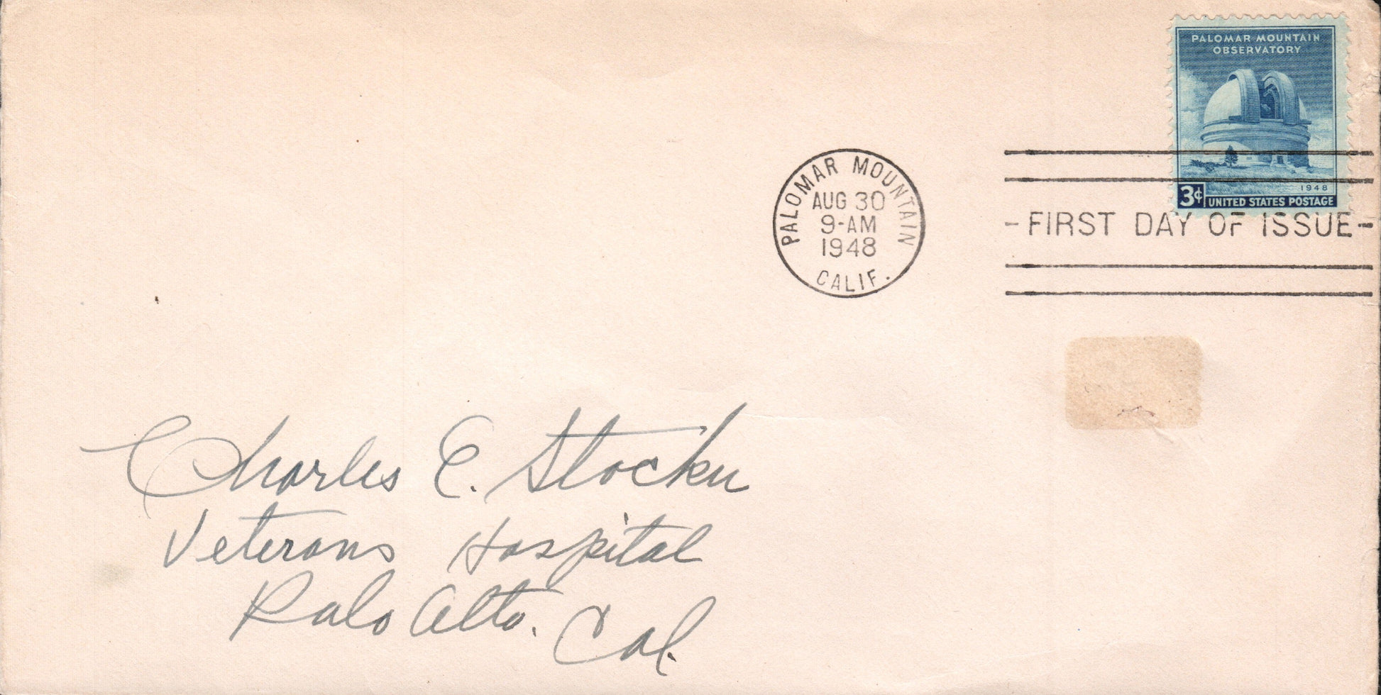 Palomar Mountain 1948 machine cancel on cover, FD of 3¢ Palomar Observatory stamp